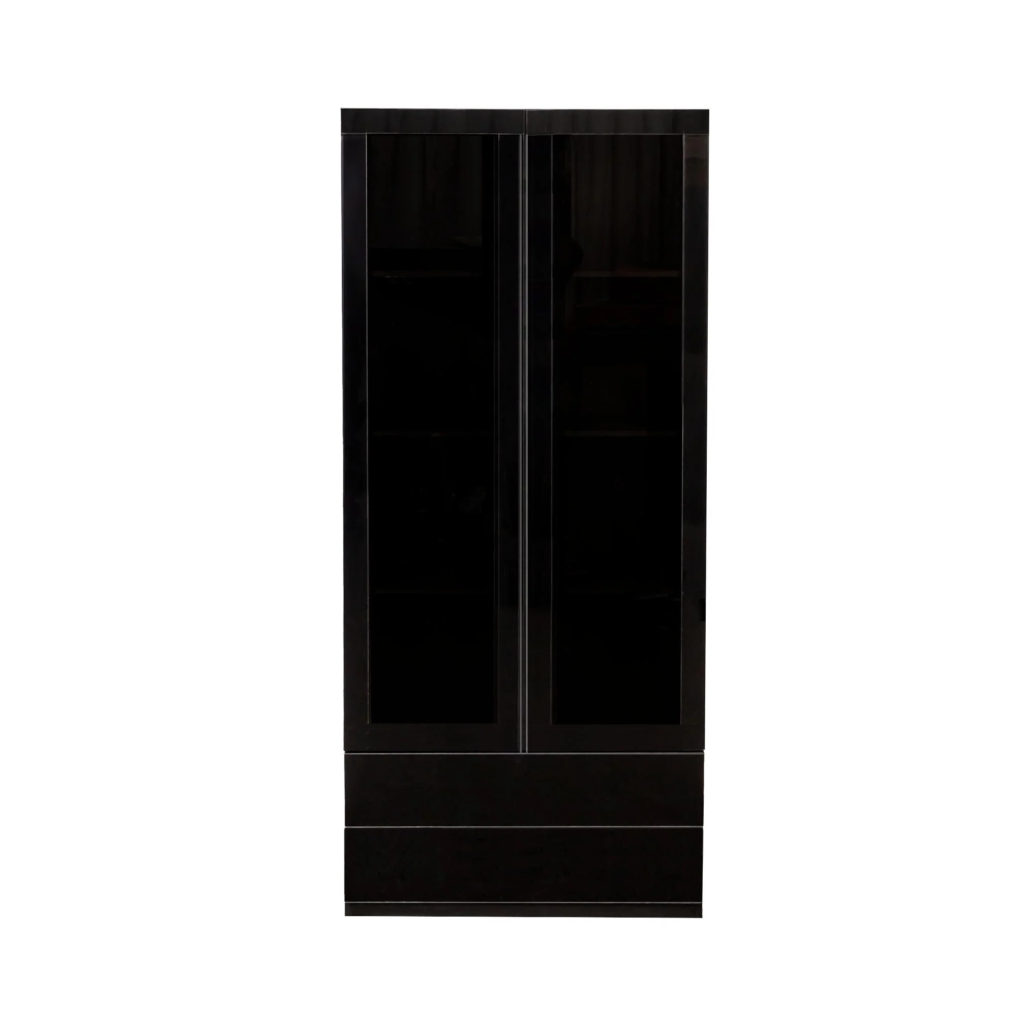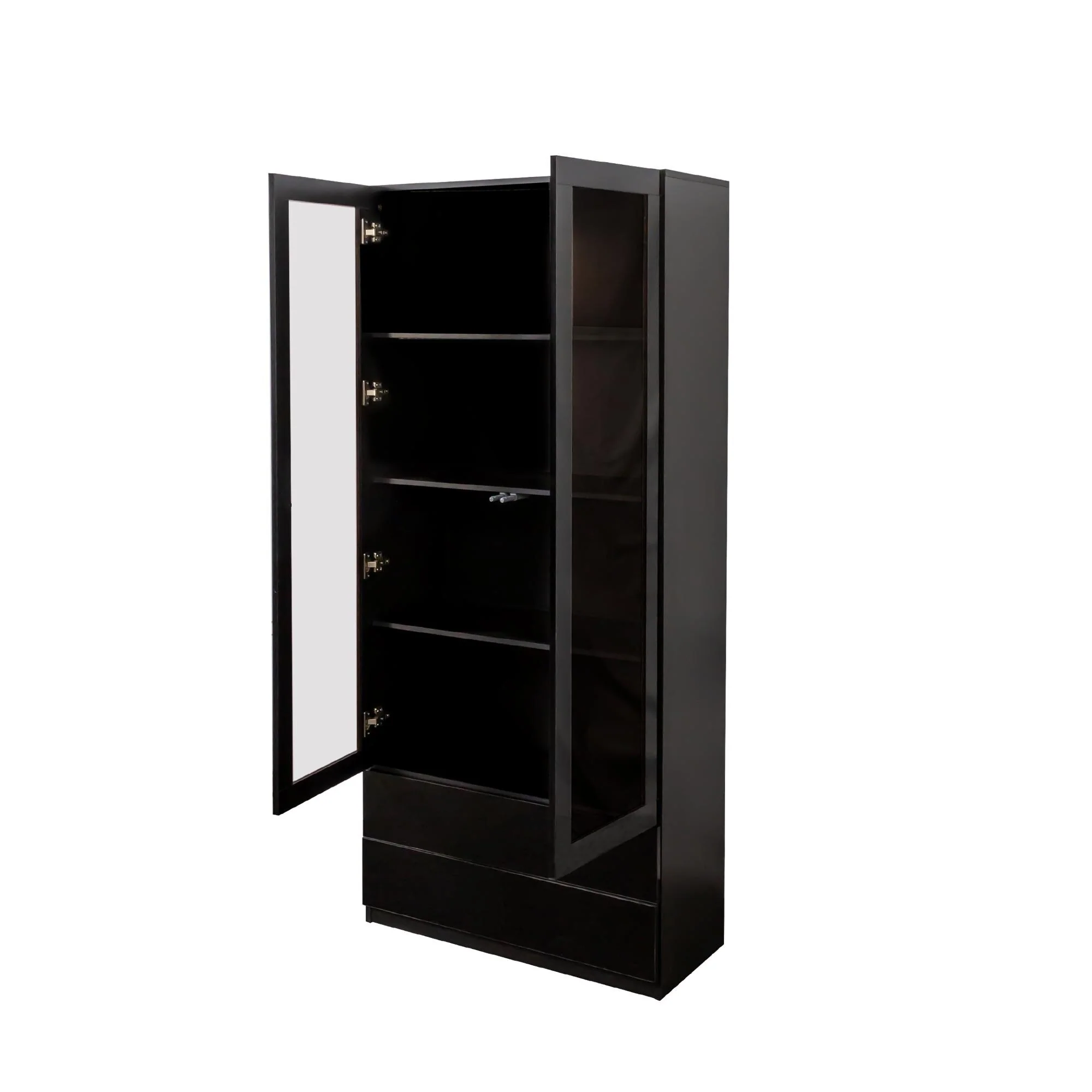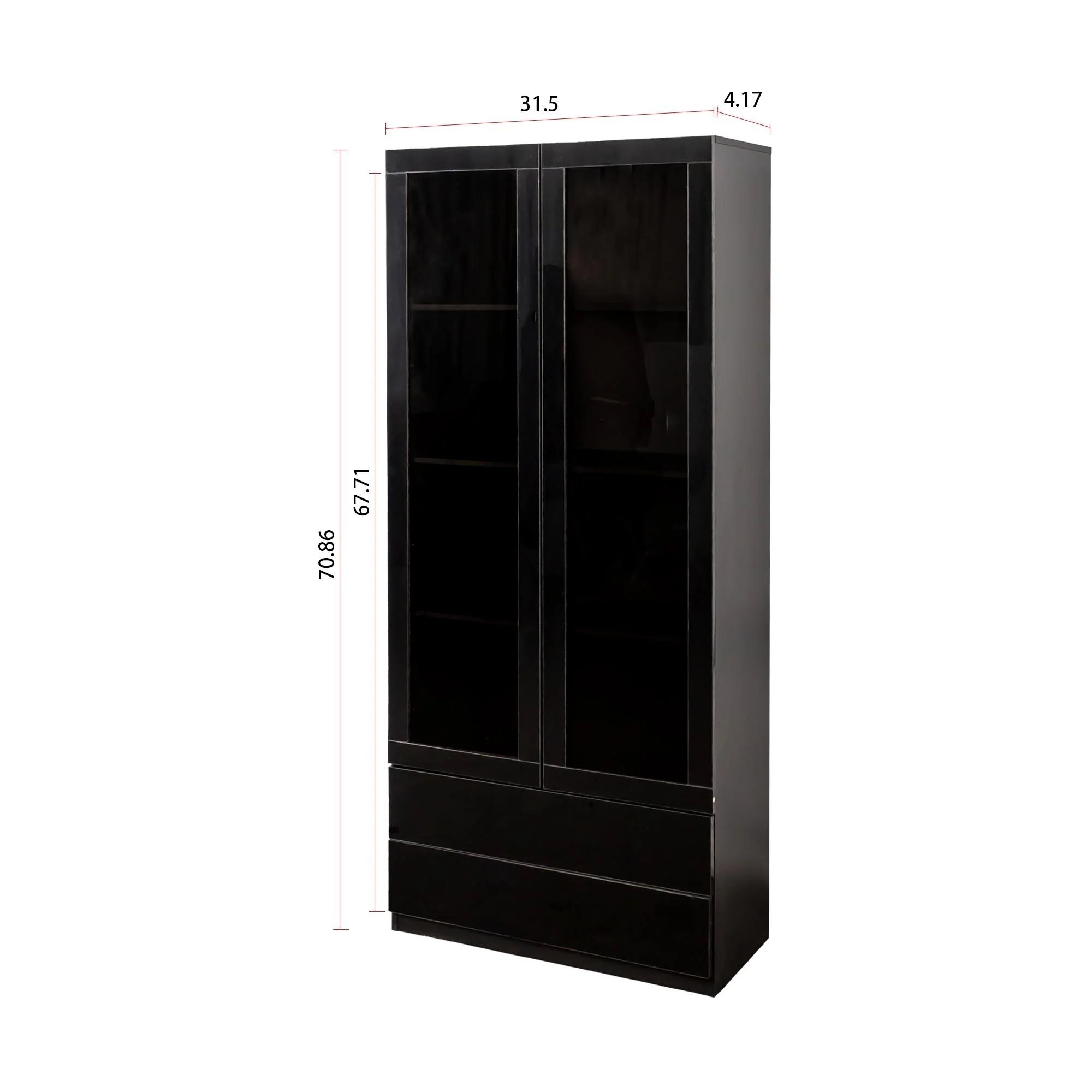 Display Cabinet with Glass Doors, Curio Storage Cabinet with 2-Drawer, Bookcase with LED Lights