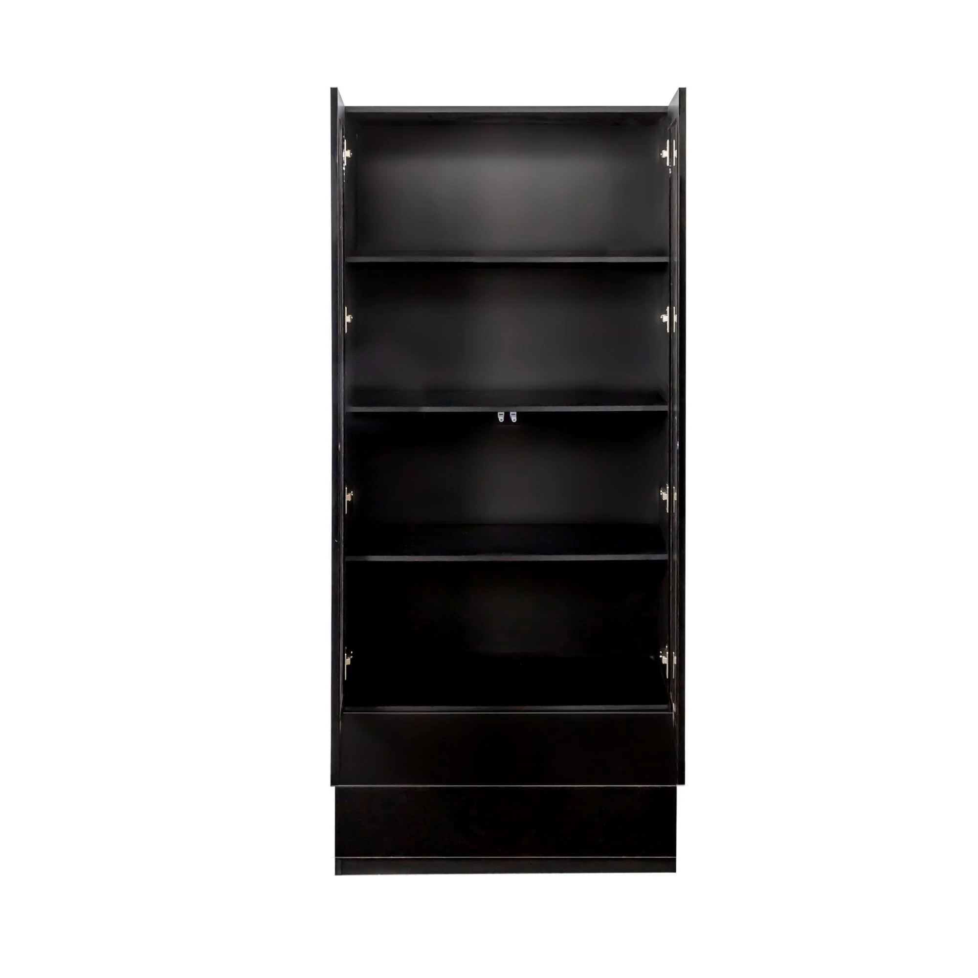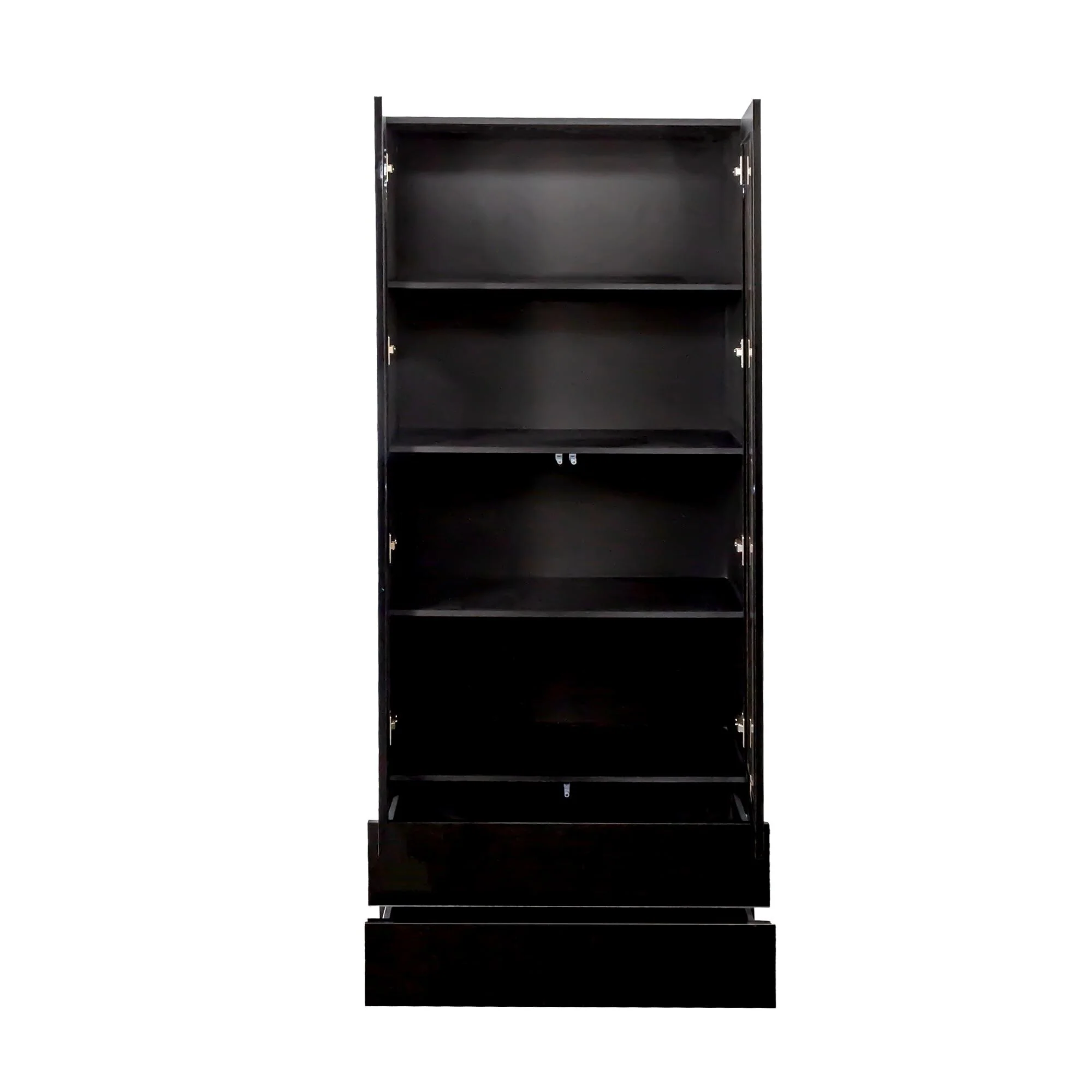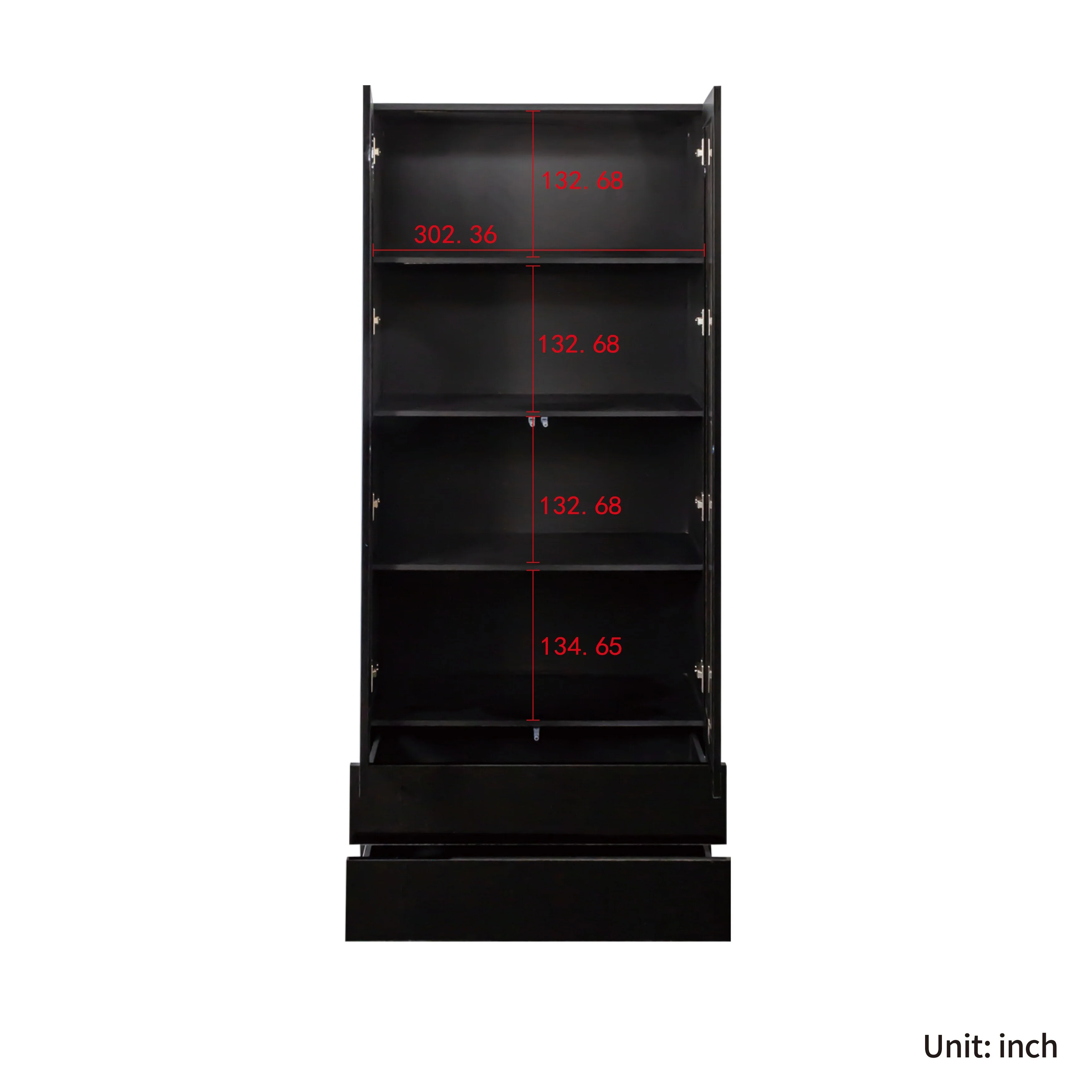 Display Cabinet with Glass Doors, Curio Storage Cabinet with 2-Drawer, Bookcase with LED Lights