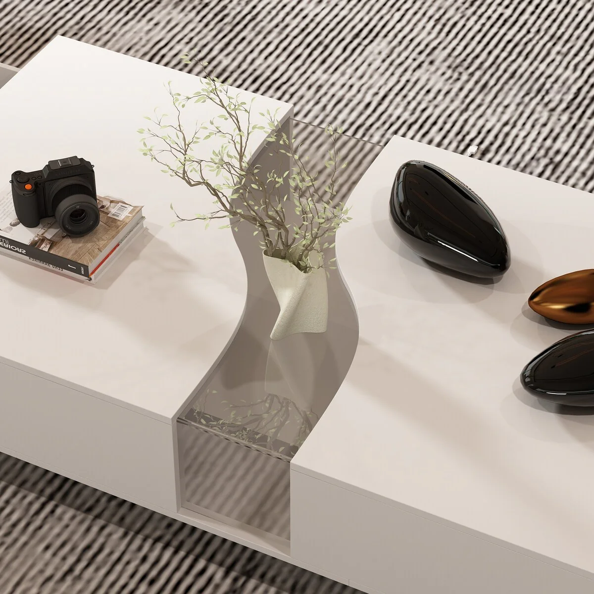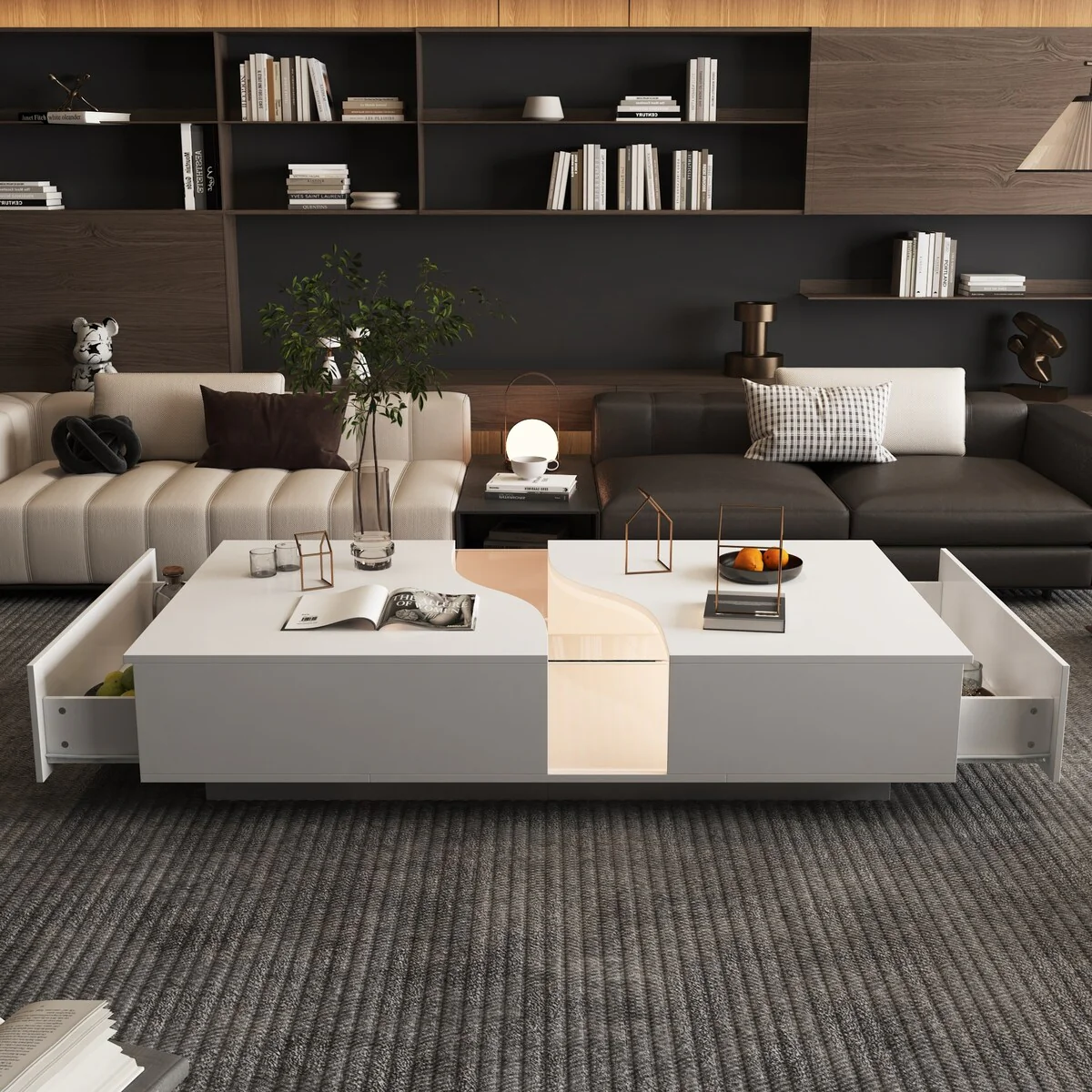 Luminous Chic: White Dual-Drawer Coffee Table with LED Display Top
