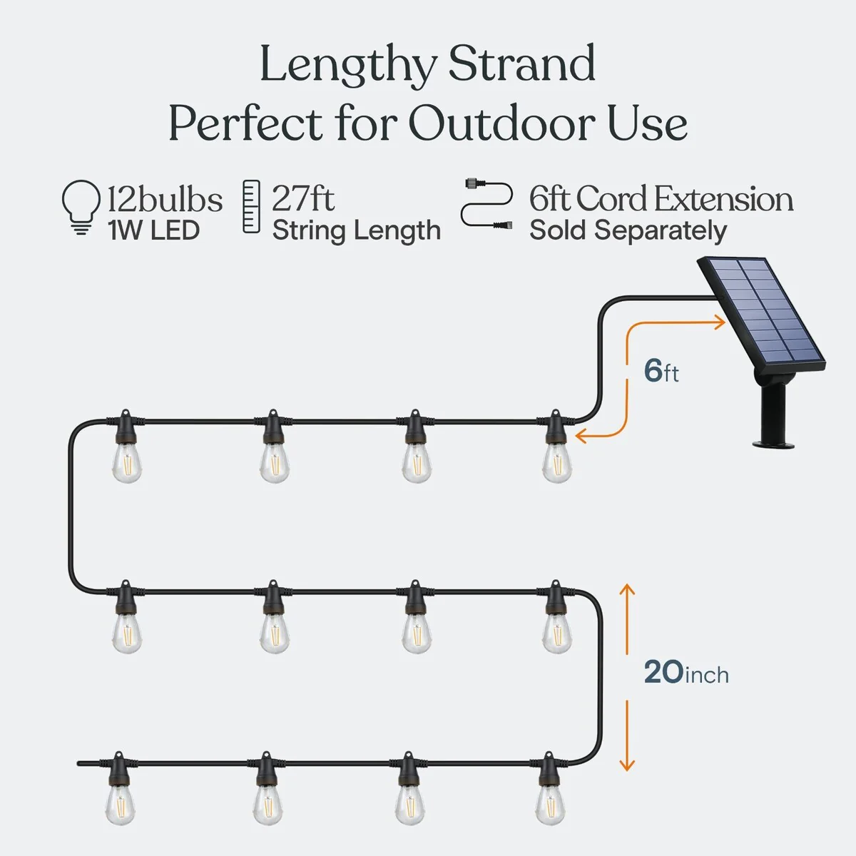 Brightech Ambience Pro 12-Light 27 ft. Outdoor Solar 1W 3000k LED S14 Remote Control Edison Bulb String-Light
