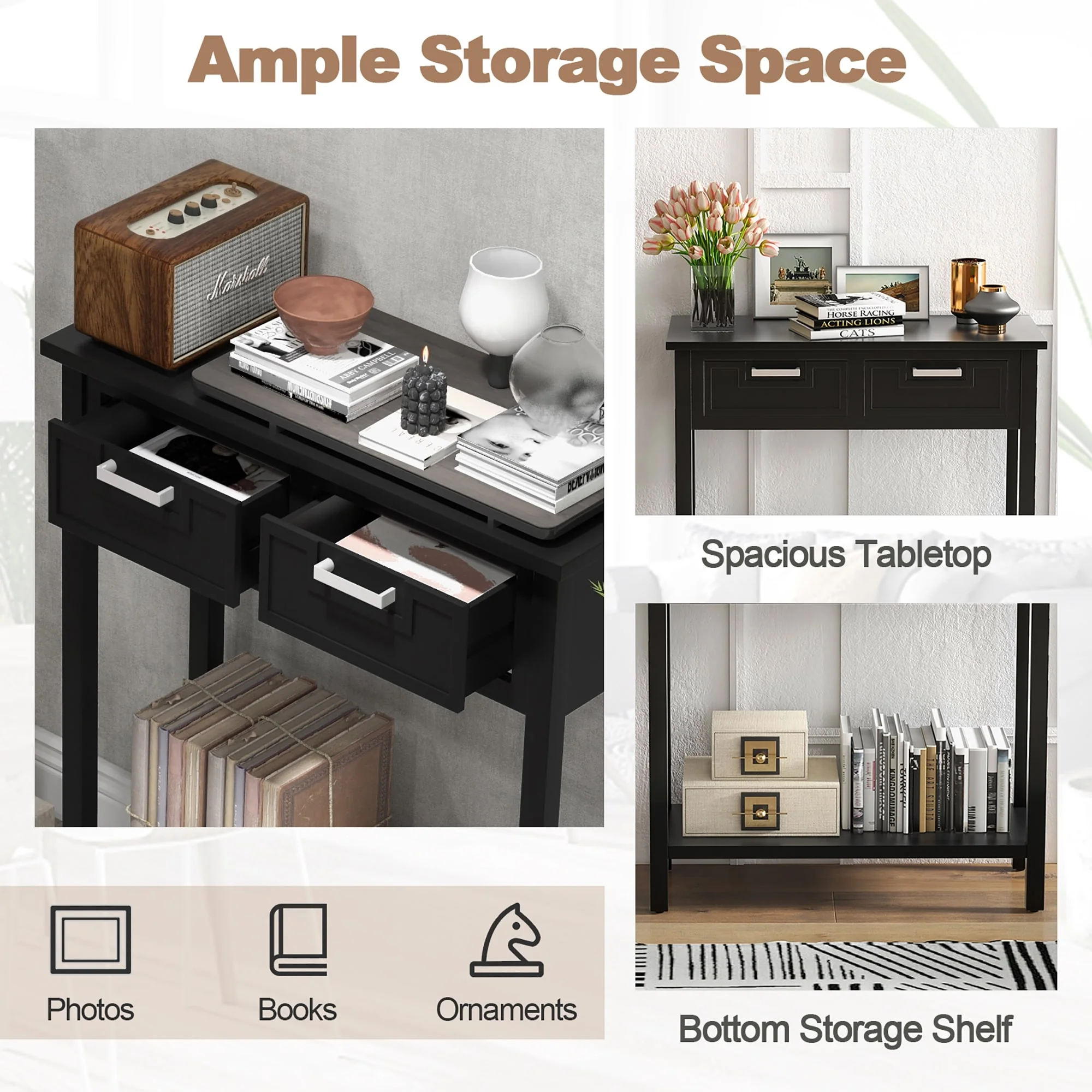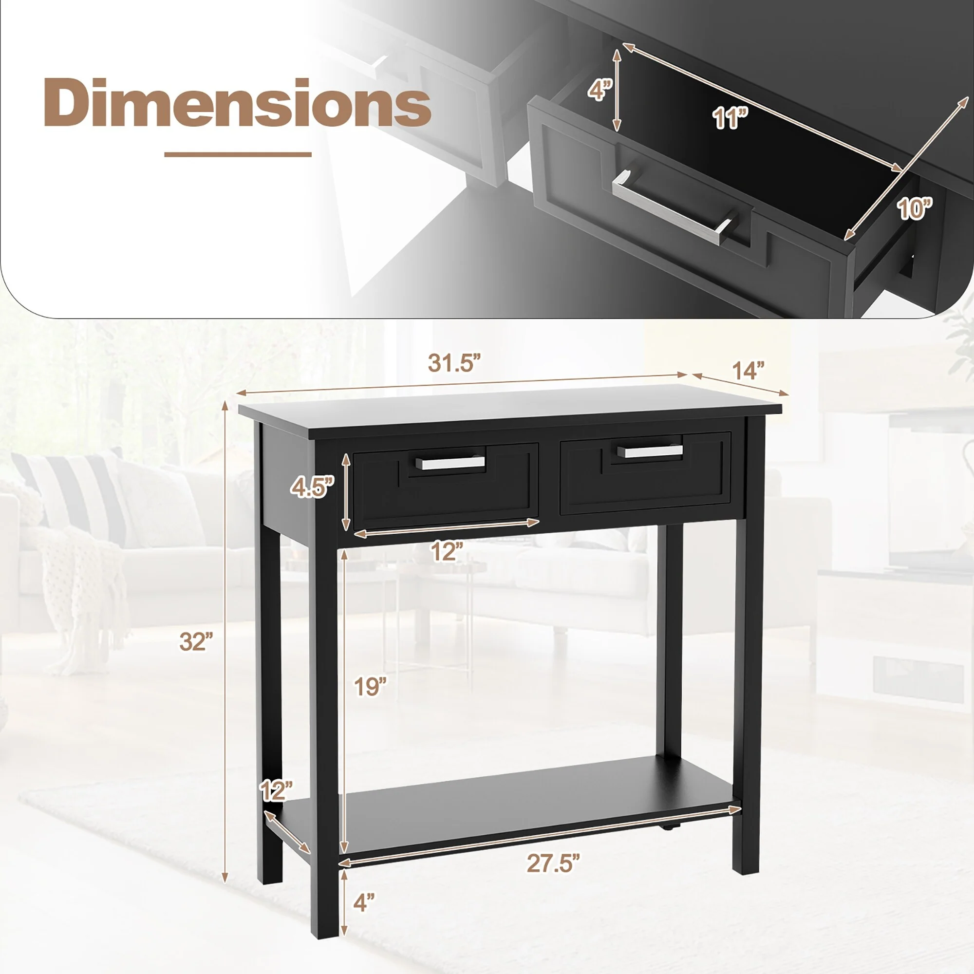 Gymax Narrow Console Table with Drawers Retro Accent Sofa Table w/ - See Details