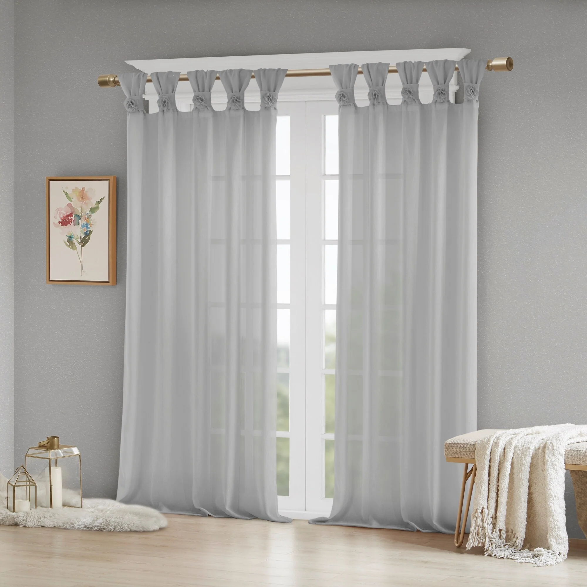 Madison Park Florah Floral Embellished Cuff Tab Top Solid Single Curtain Panel