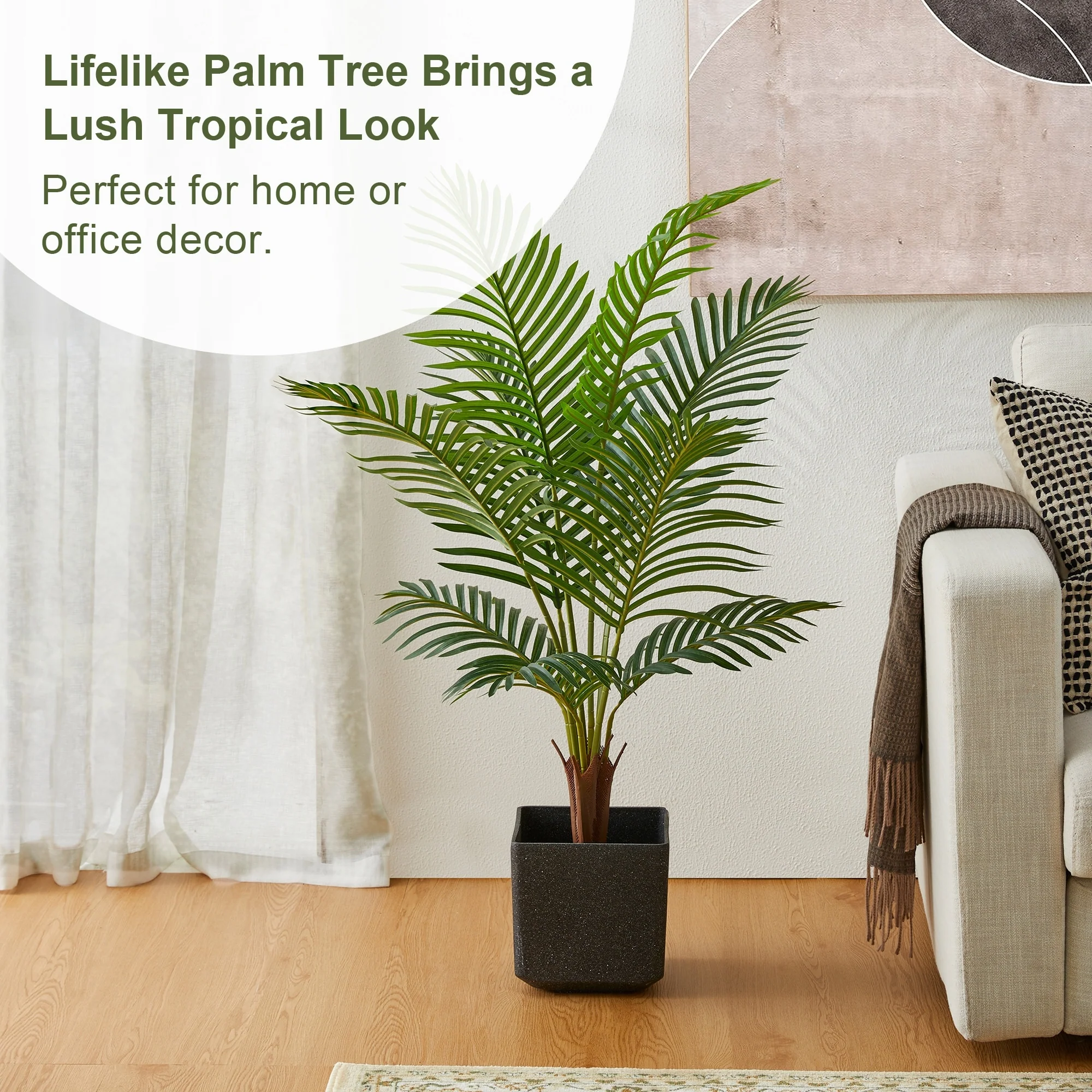 Glitzhome 43"H Real Touch Areca Palm Artificial Fronds Tree in Pot - 19.75"D x 43.25"H