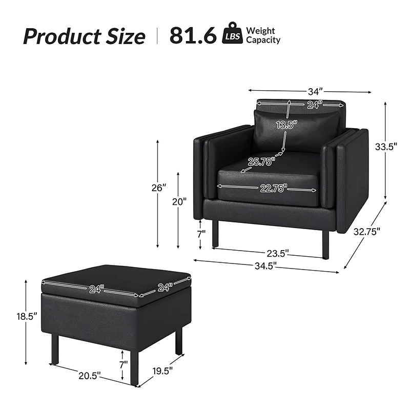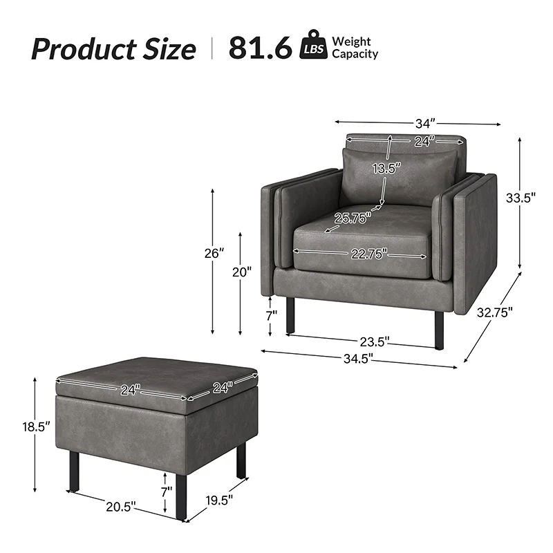 Hunfried 35" Wide Chair with Lift - Top Storage Ottoman