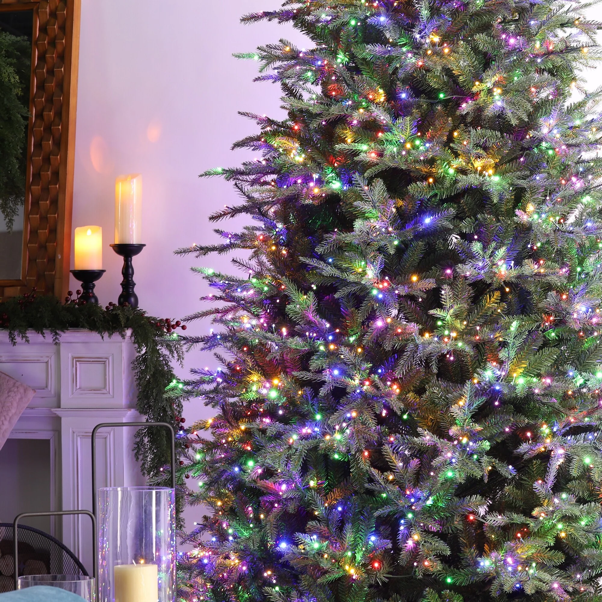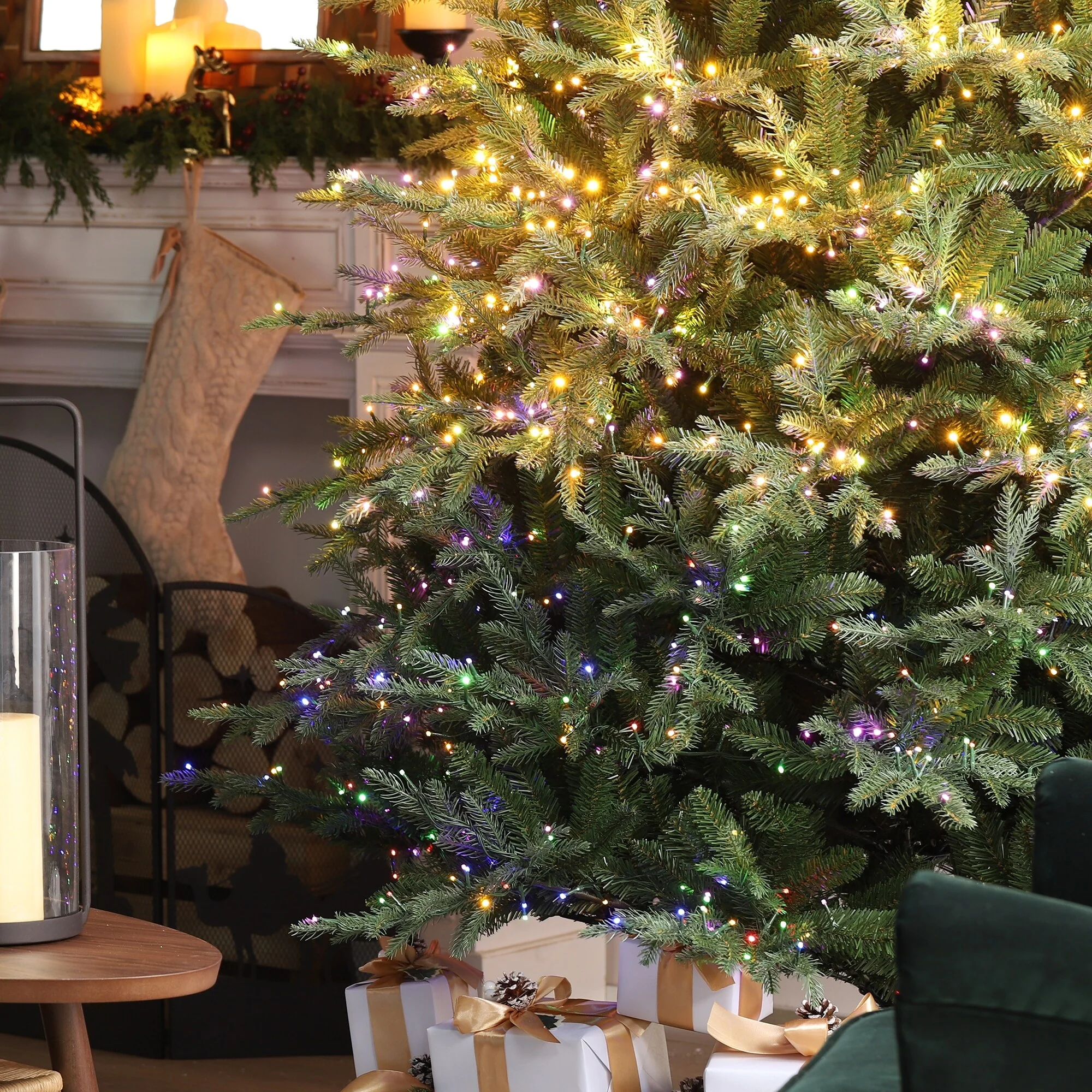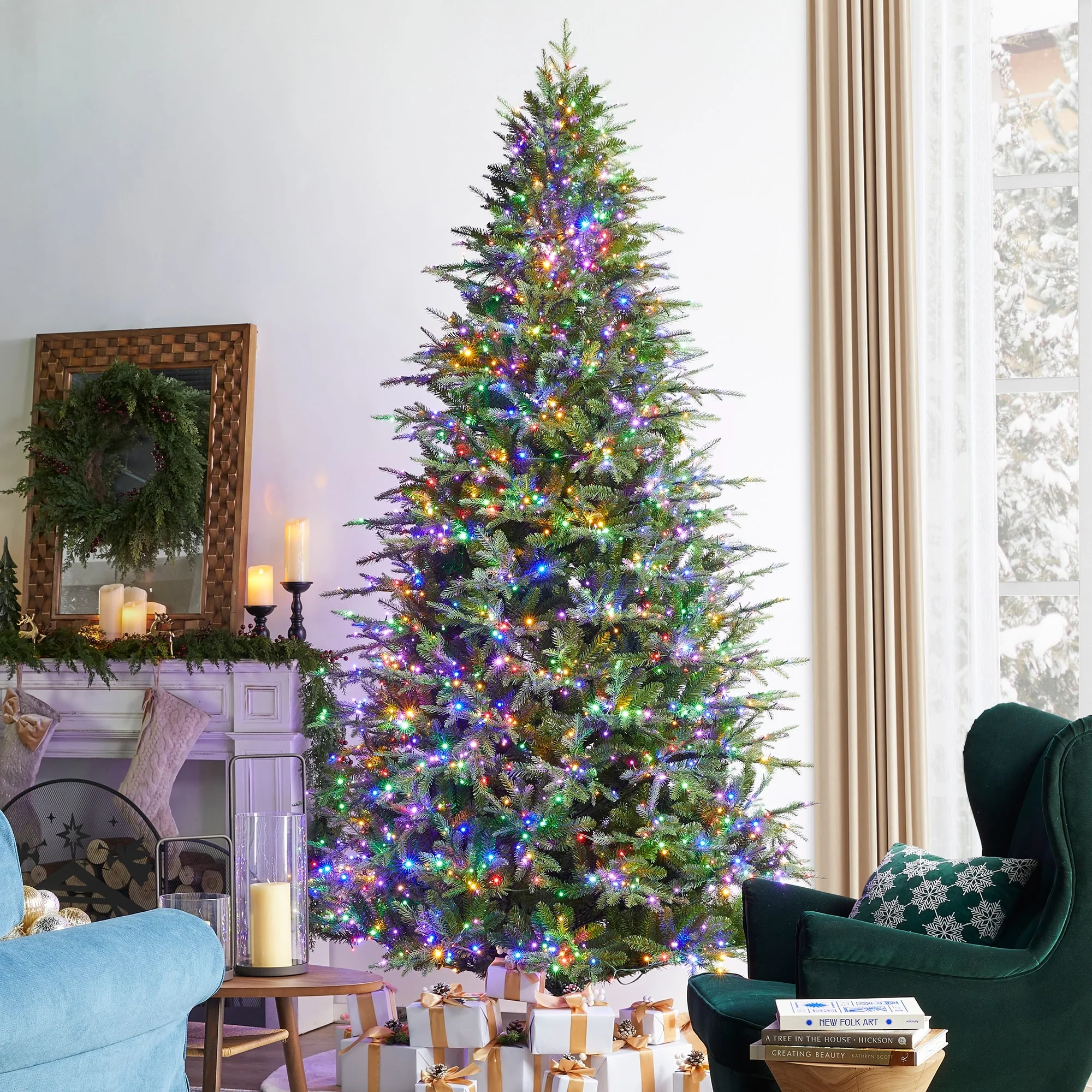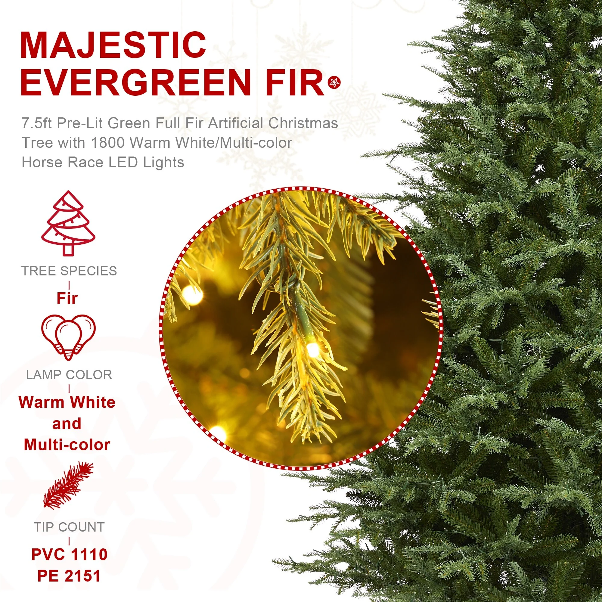 Glitzhome 7.5ft/9ft/11ft Pre-Lit Green Full Fir Artificial Christmas Tree with 1800/2450/3200 LEDs Simple Setup