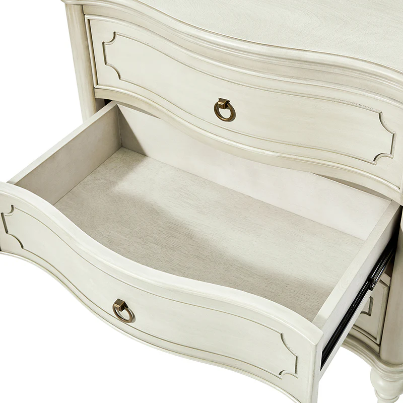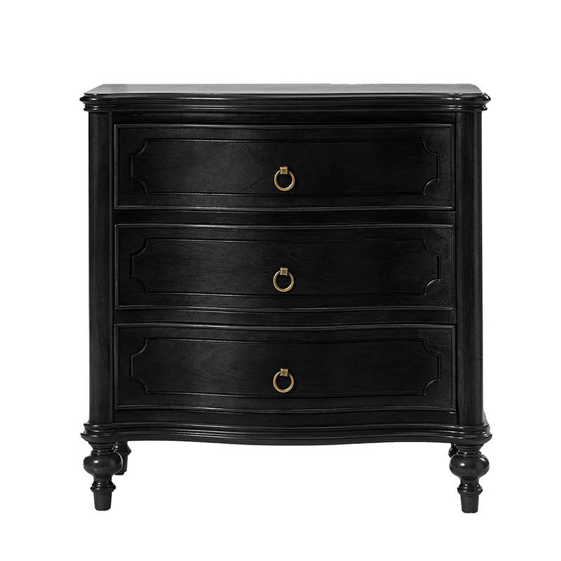 Bernhard 3-Drawer Traditional Style Nightstand Chest with Solid Wood Legs and Built-In Outlets