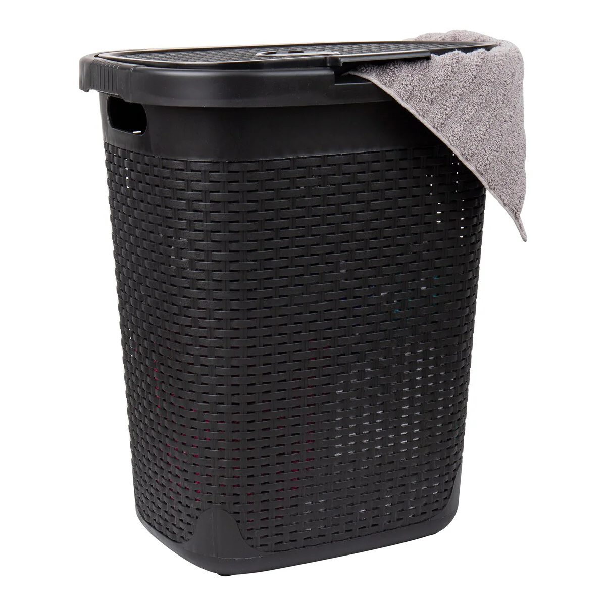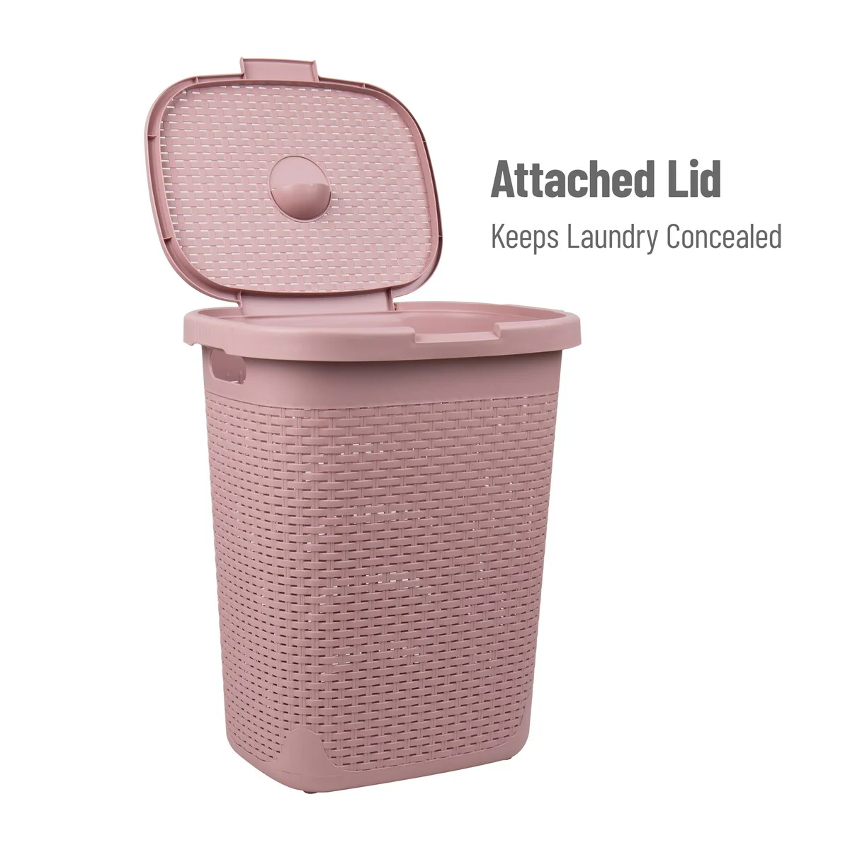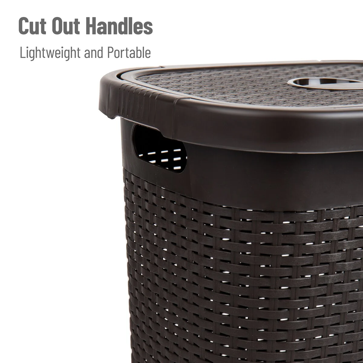 Mind Reader 50L Slim Laundry Hamper, Clothes Basket, Lid, Wicker Design, Plastic, 17.65"L x 13.75"W x 21"H