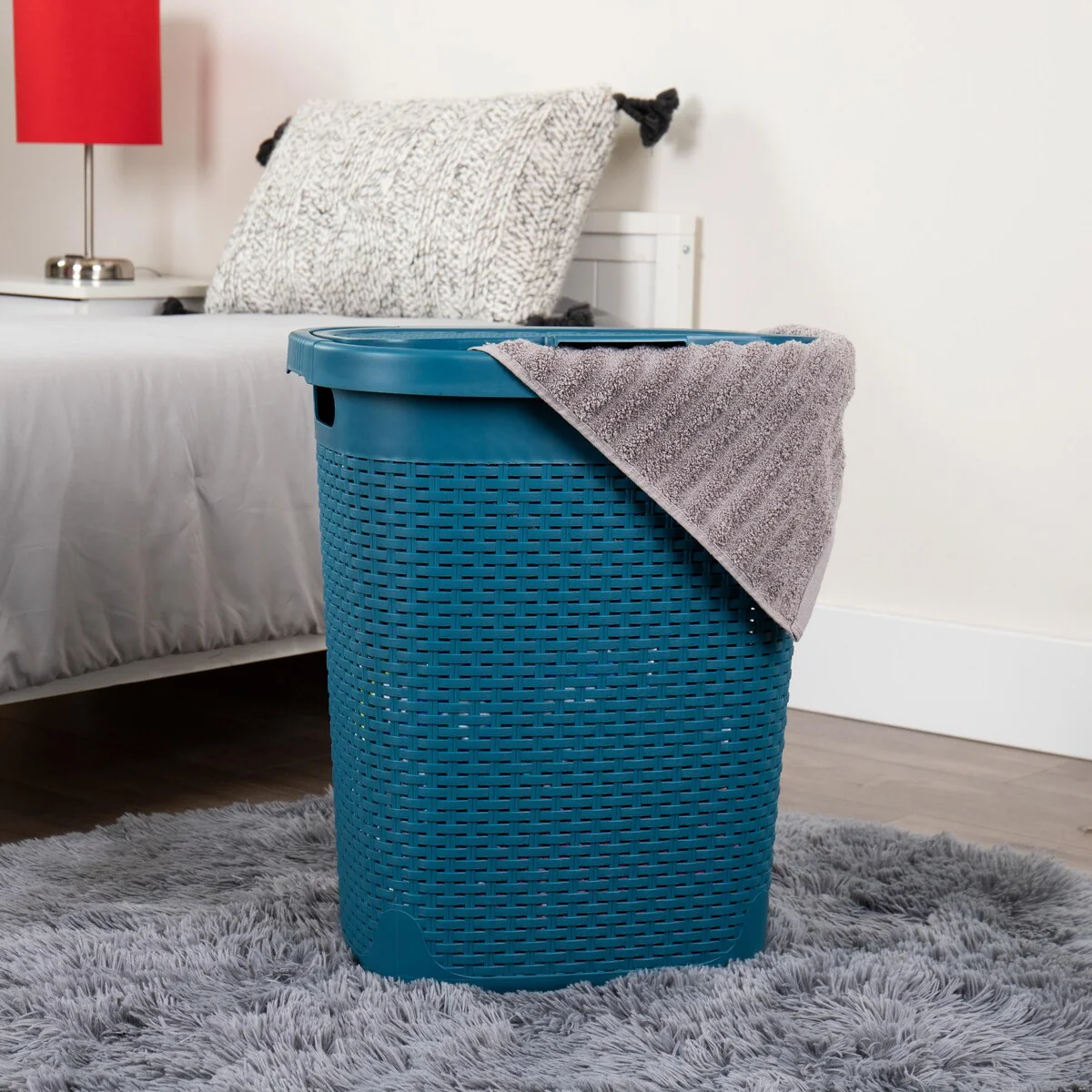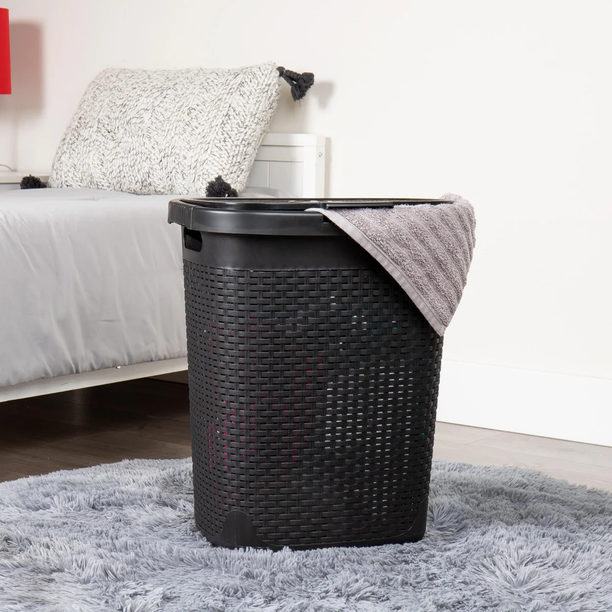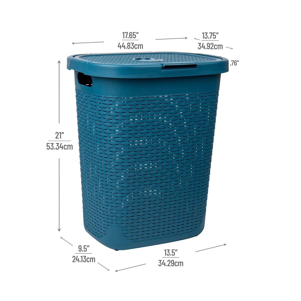 Mind Reader 50L Slim Laundry Hamper, Clothes Basket, Lid, Wicker Design, Plastic, 17.65"L x 13.75"W x 21"H