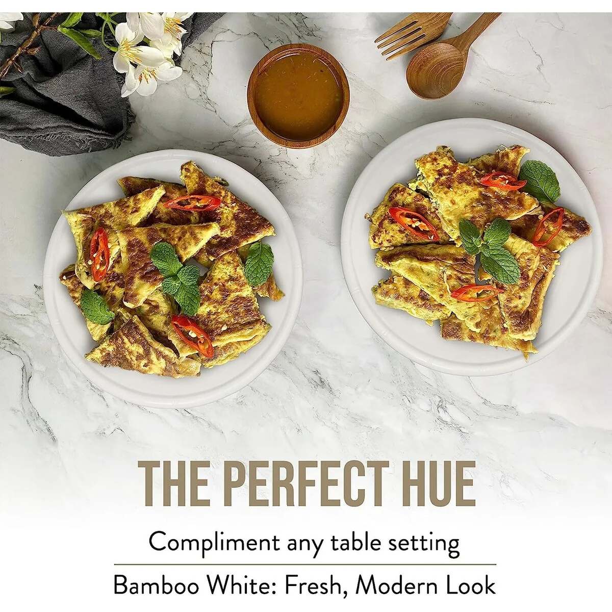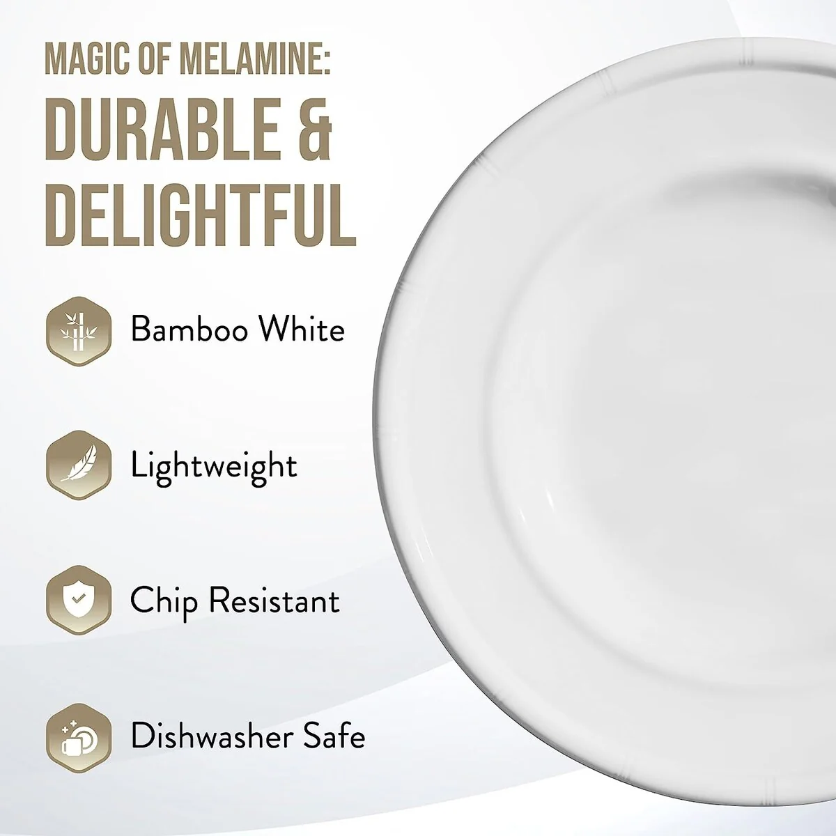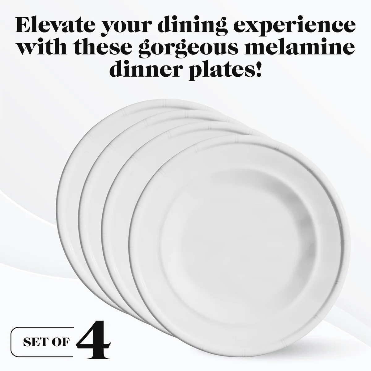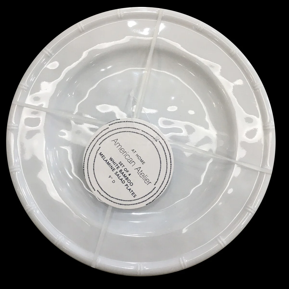 American Atelier White Bamboo Edge Design Melamine Plates Set of 4