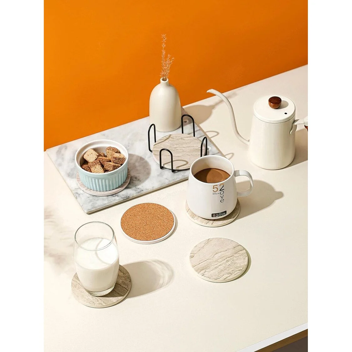 LIFVER Coasters for Coffee Table, 4 Inches, Sandstone Style