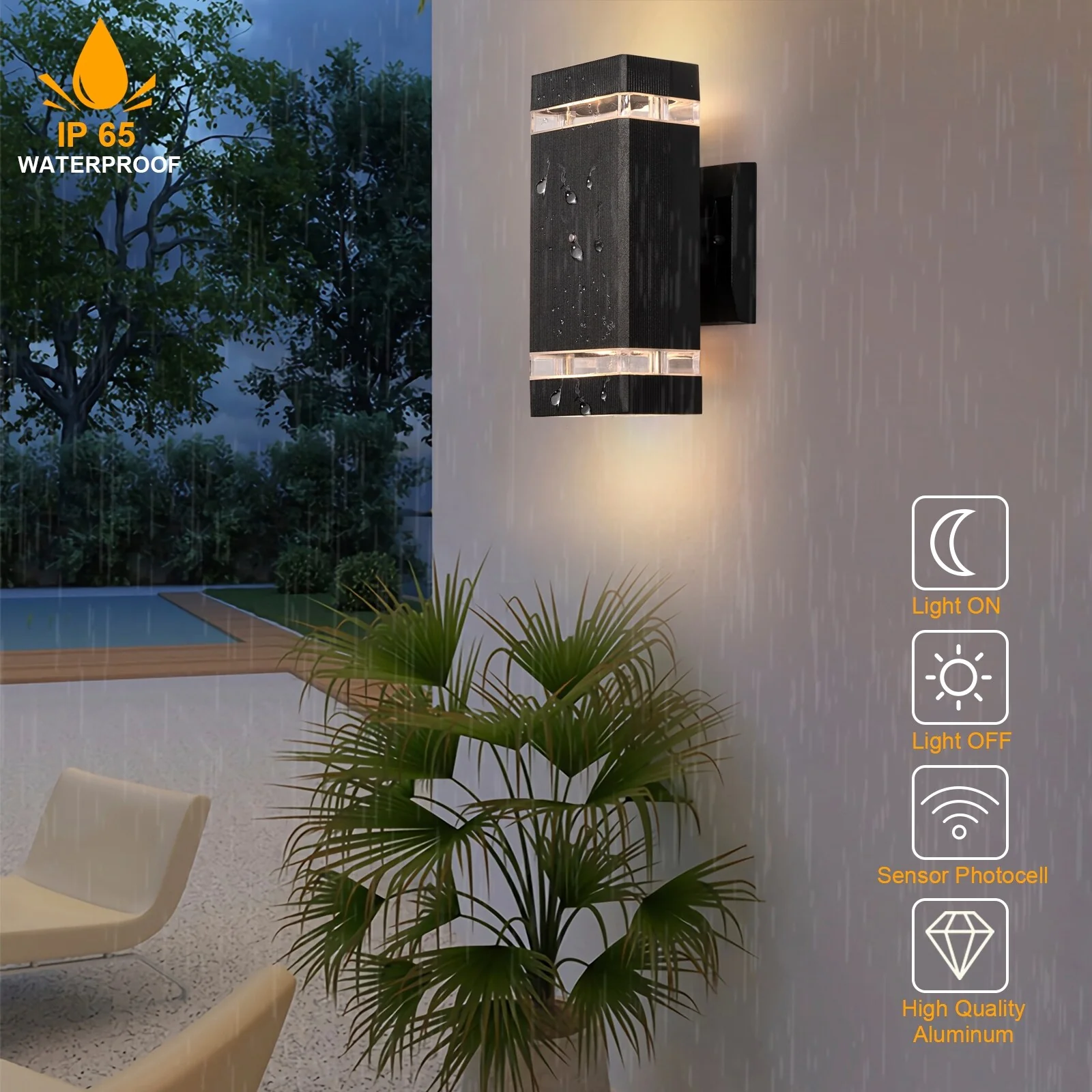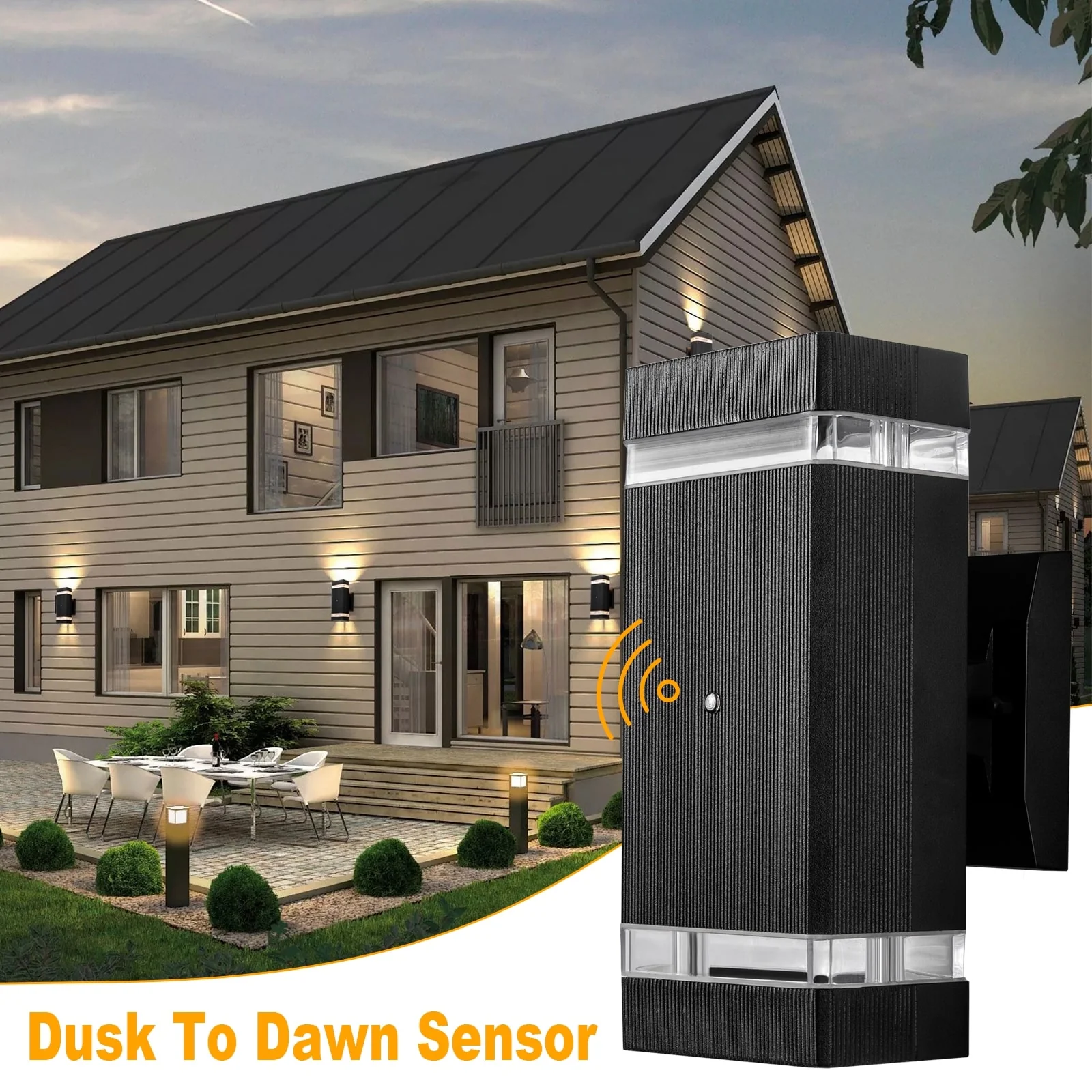 Modern LED Up Down Outdoor Wall Light with Dusk to Dawn Sensor