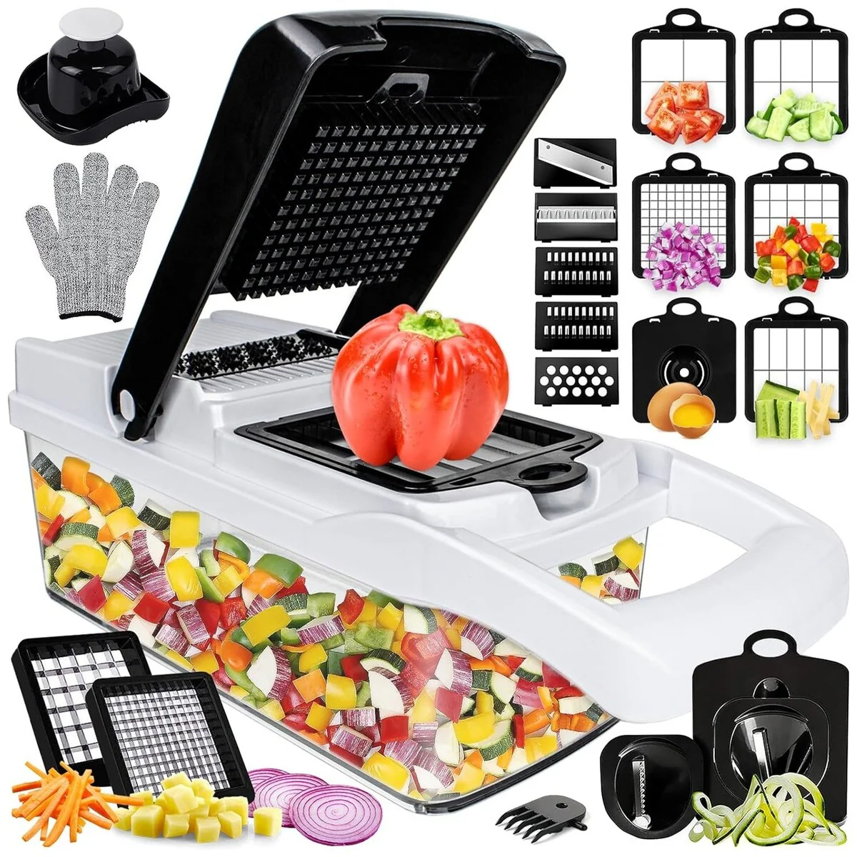 Vegetable Chopper Multifunction Onion Chopper Dicer, Spiralizer for Veggie Cutter, Slicer, Food Chopper with Container
