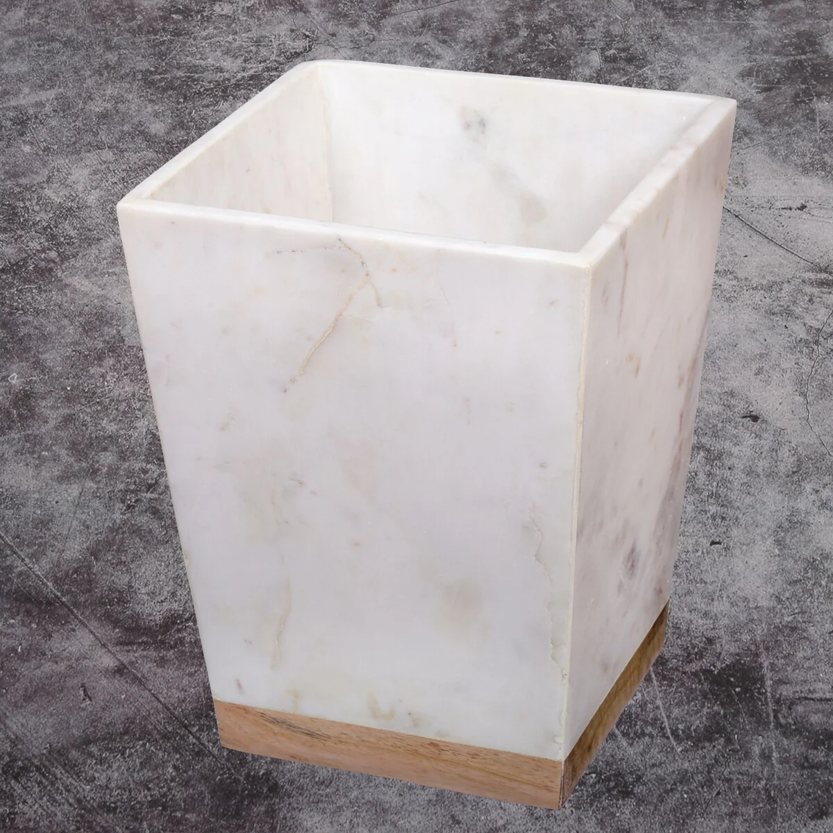 Creative Home Off-White Marble and Mango Wood Wastebasket, Waste Basket, Garbage Container, Trash Can Recycle Bin