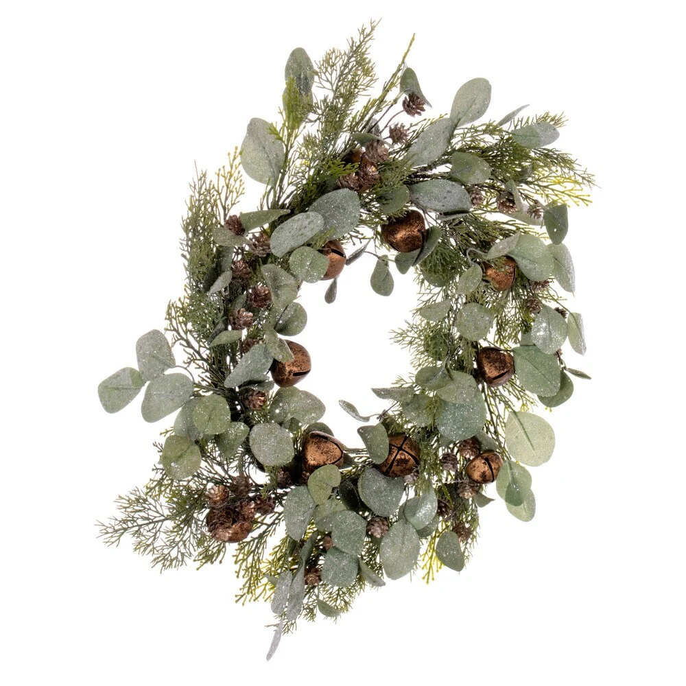 Vickerman 22" Artificial Winter Cedar, Pinecone, Eucalyptus, and Brown Jingle Bell Wreath