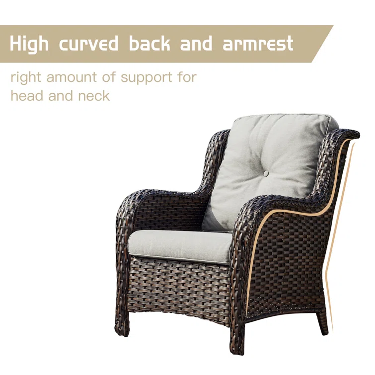 4-Piece Conversation Patio Set, Bohemian Wooden Outdoor Loveseat And Chairs With Cushions