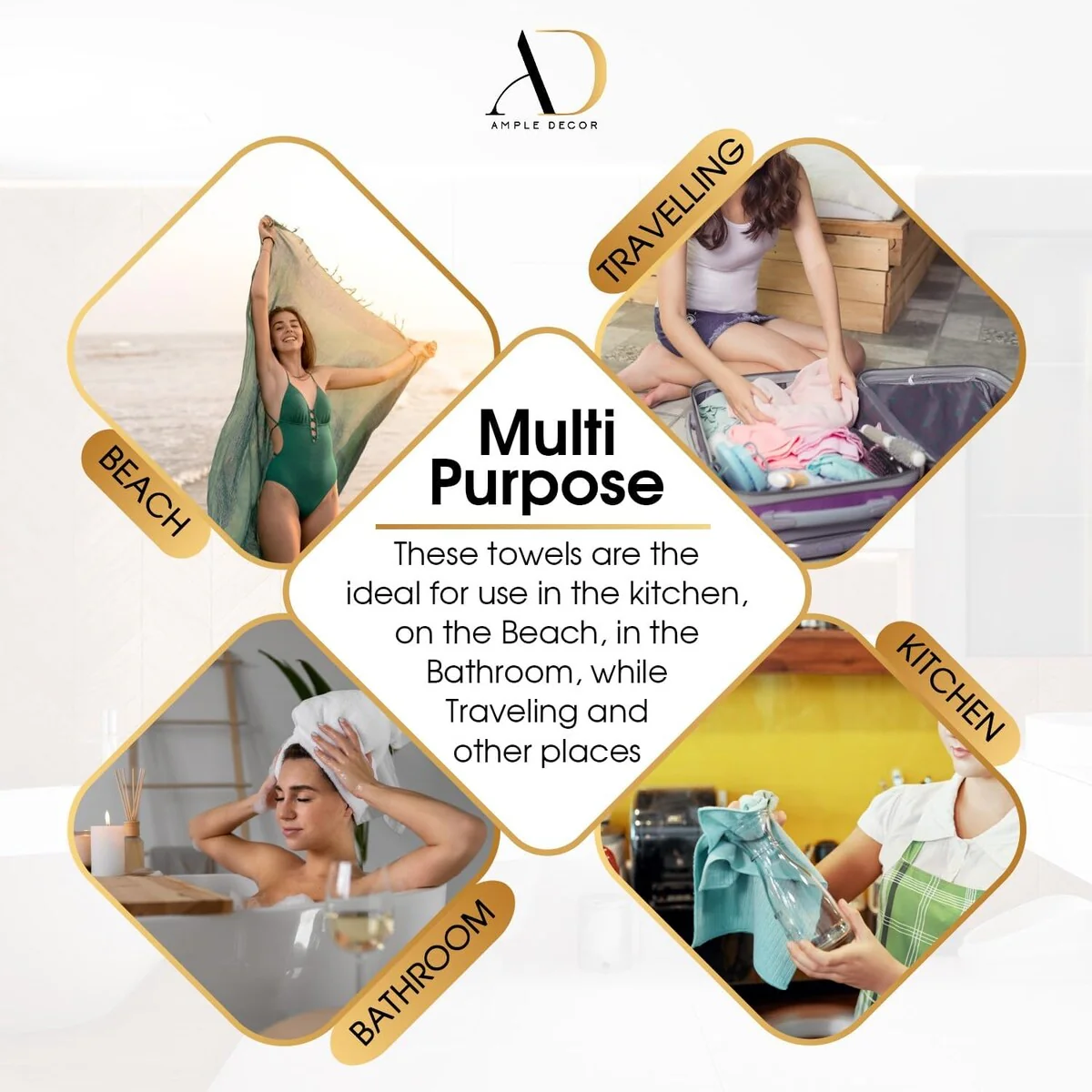Hand Towels for Kitchen Quick Drying 16 x 28 Inch by Ample Decor - 2 Pcs