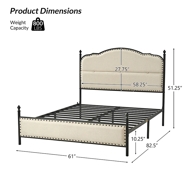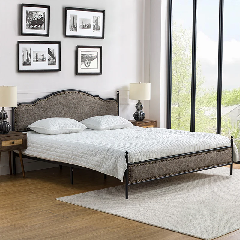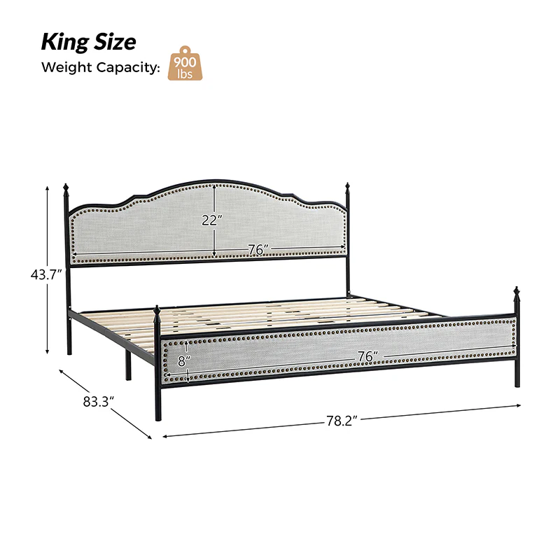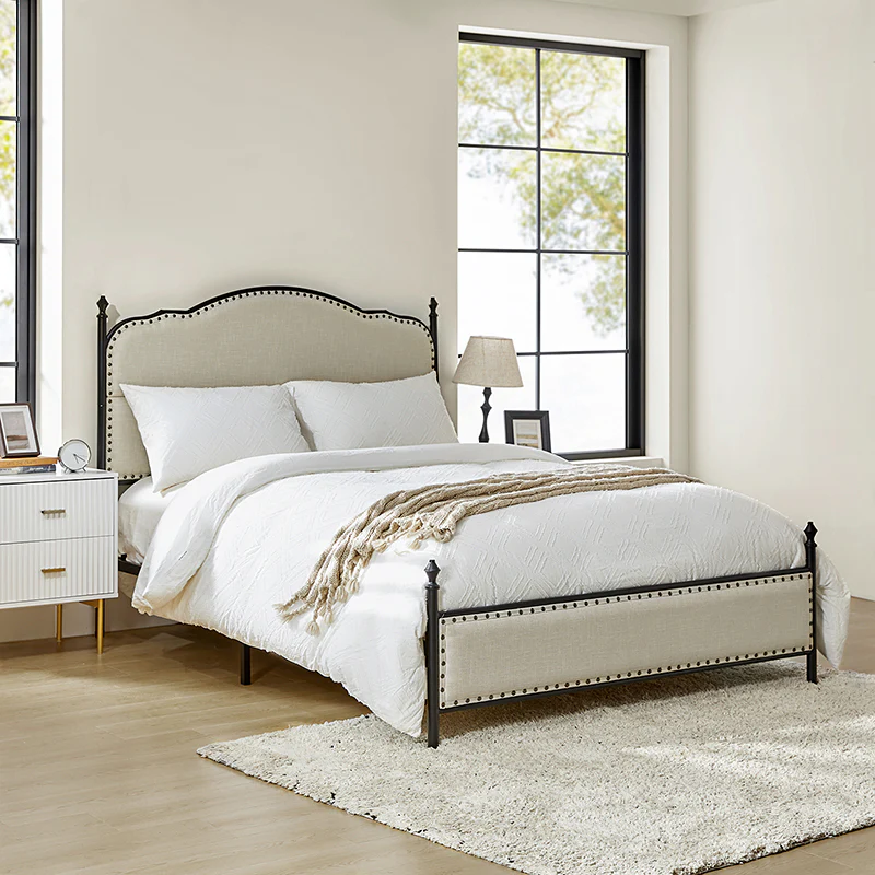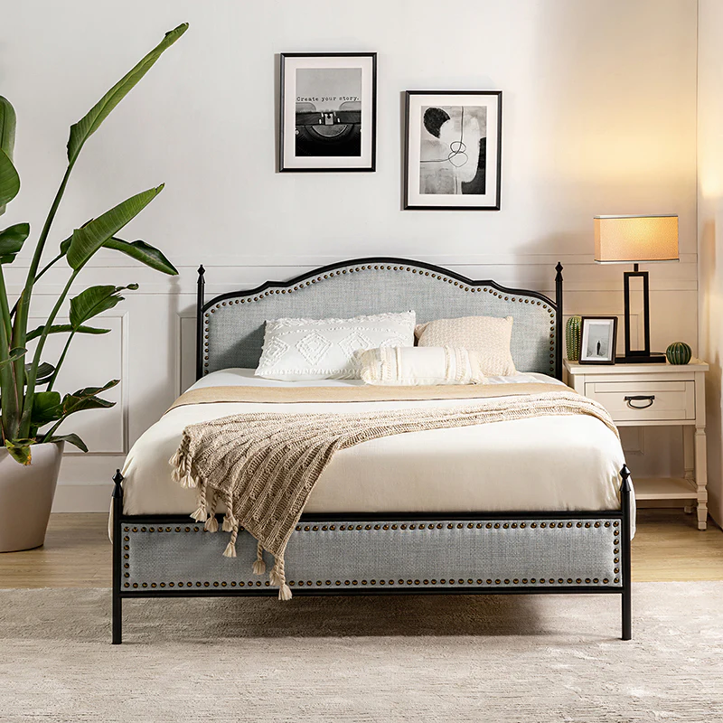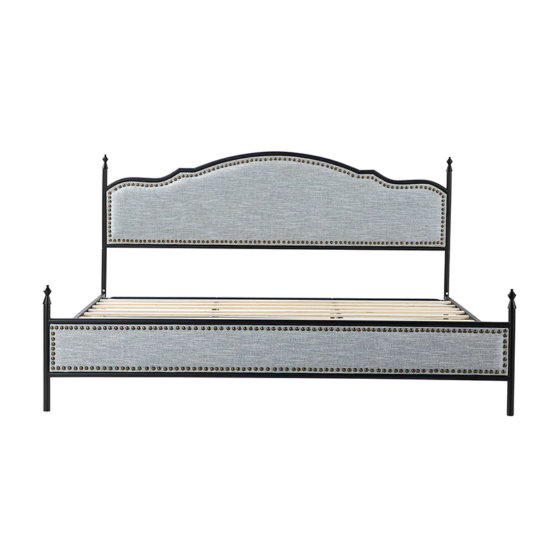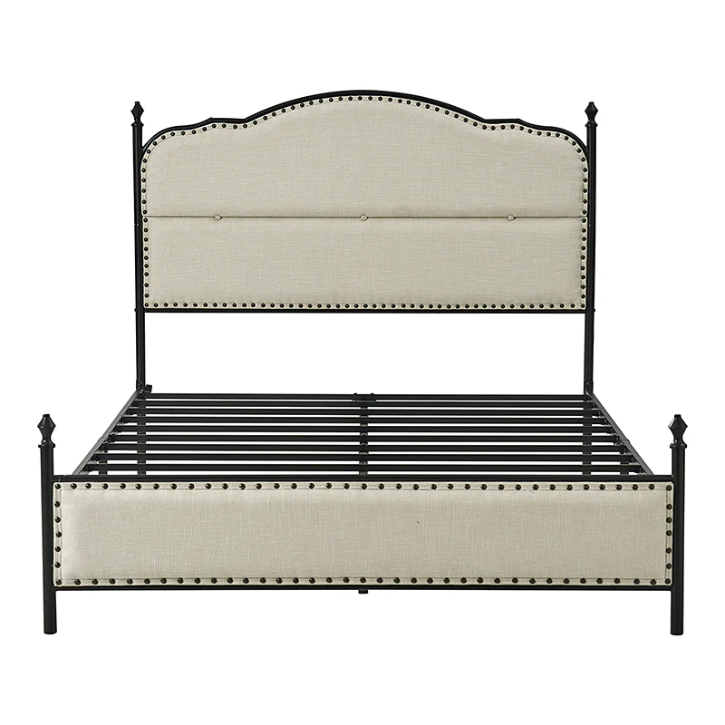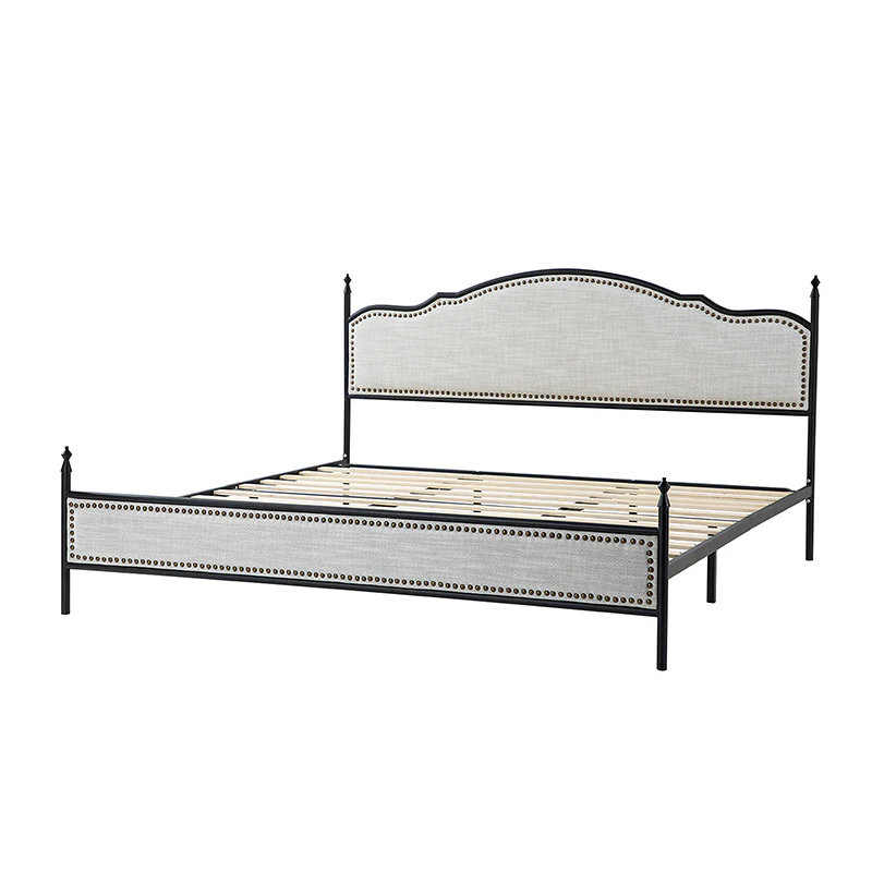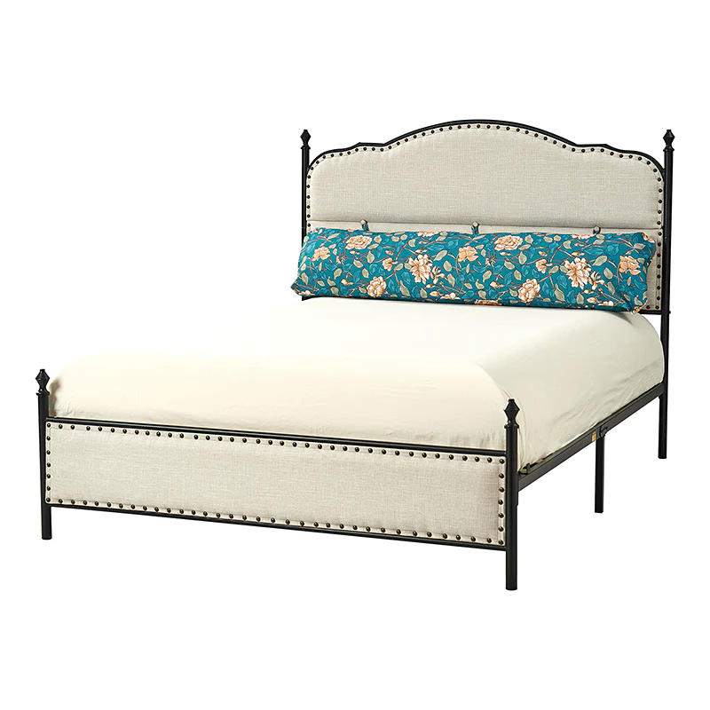 Ofelia 61" Transitional Upholstered Platform Metal Bed with Various Patterned Long Cushions