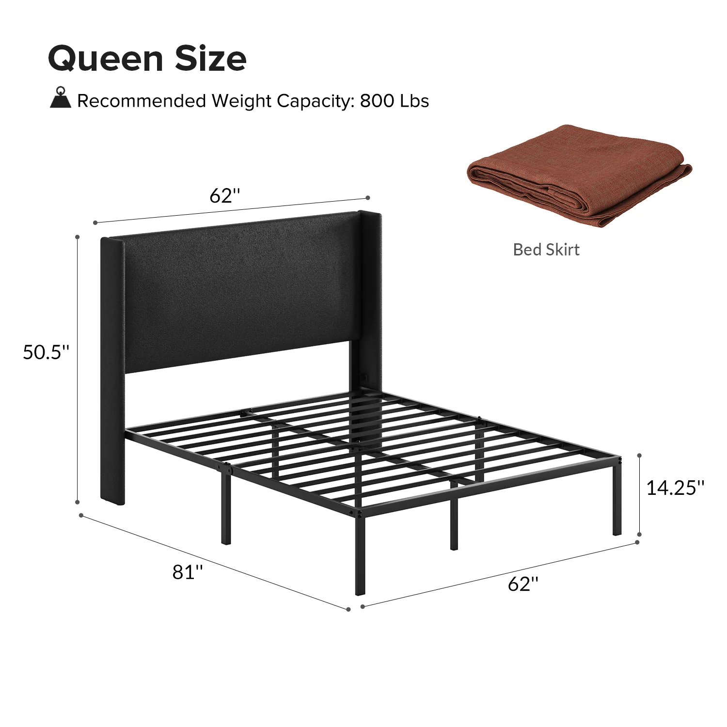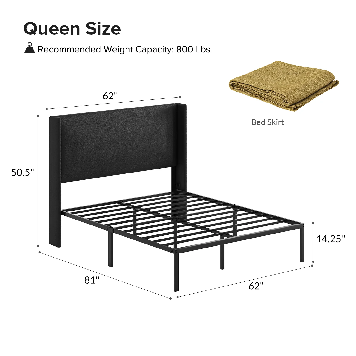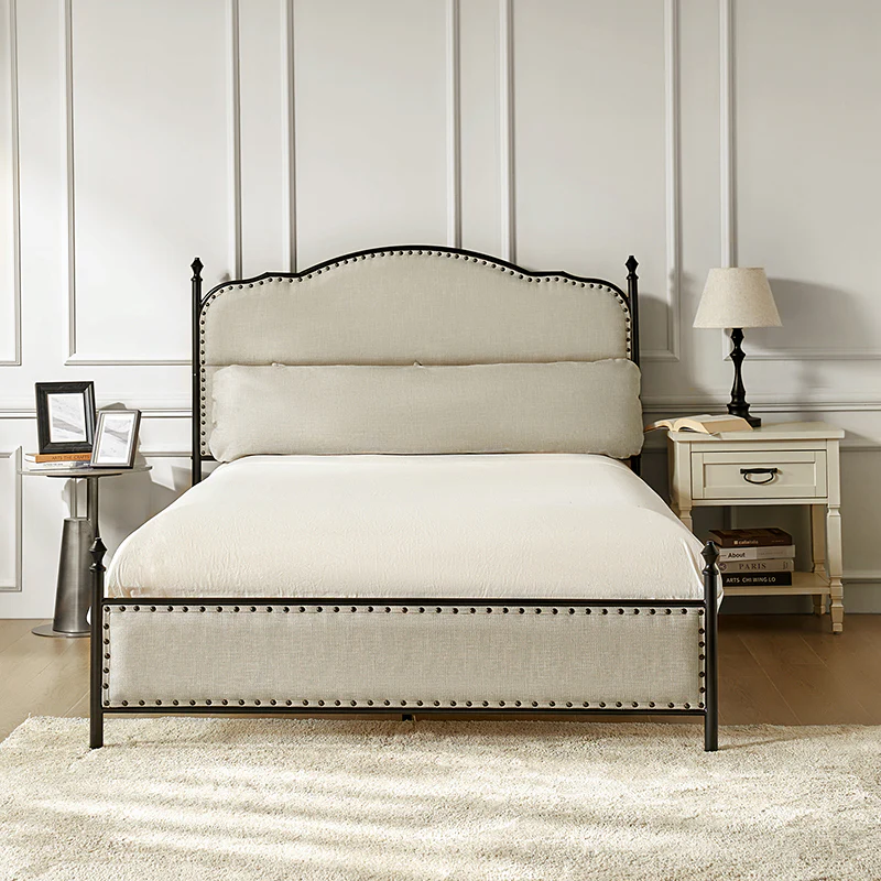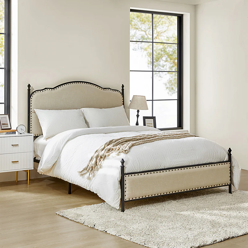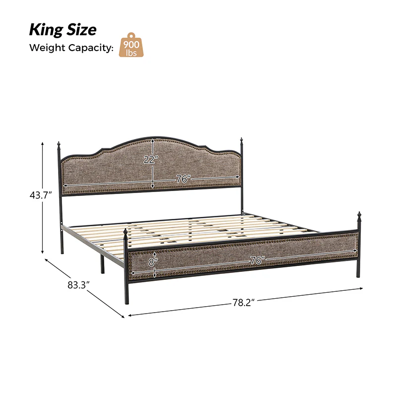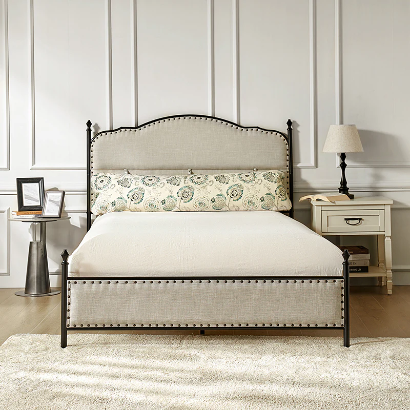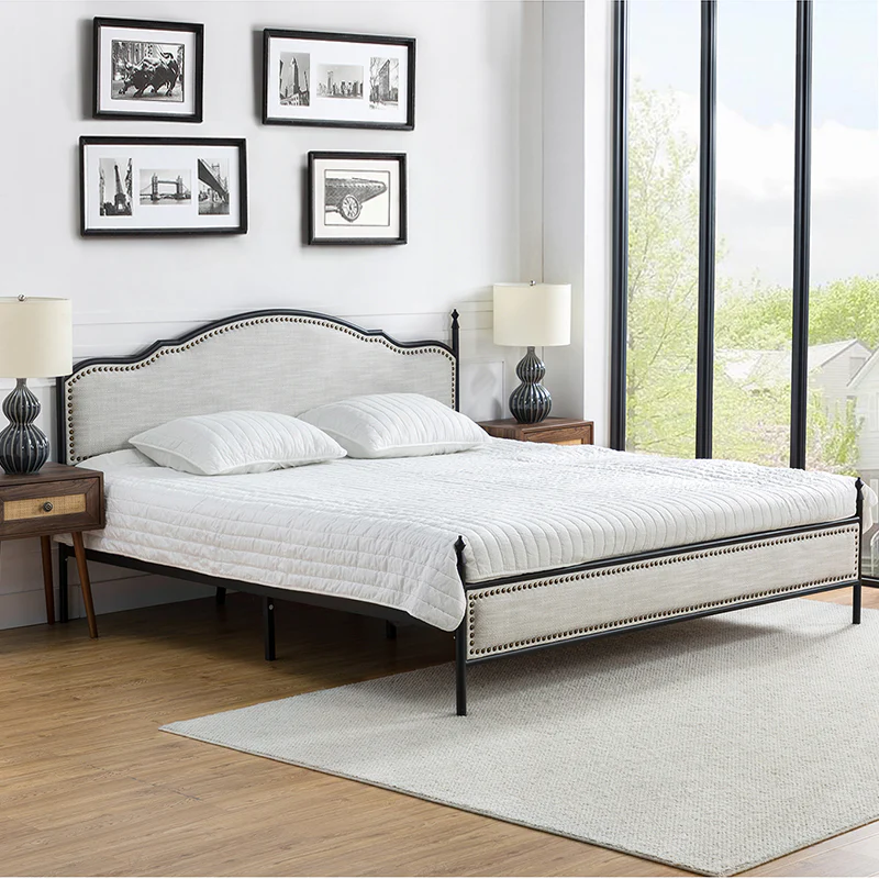 Ofelia 61" Transitional Upholstered Platform Metal Bed with Various Patterned Long Cushions