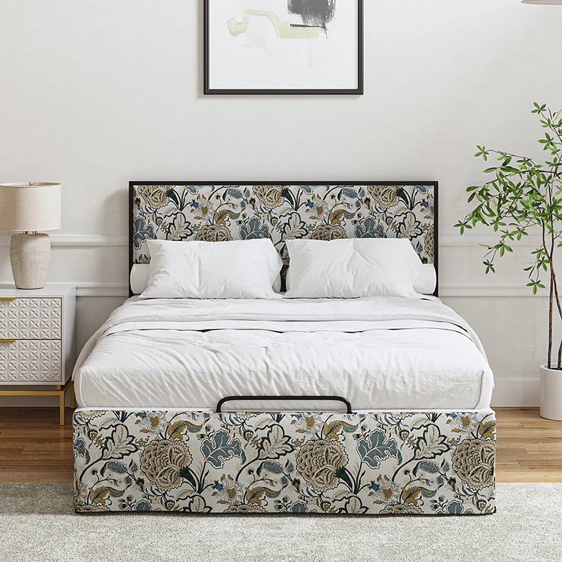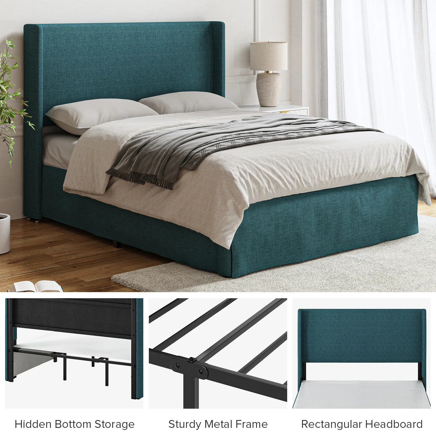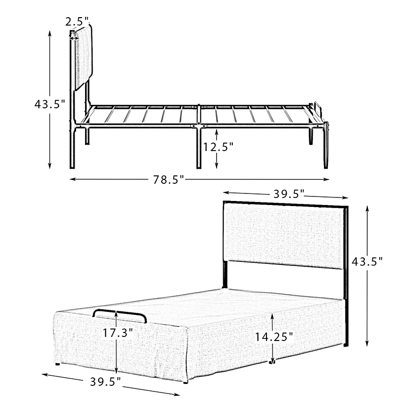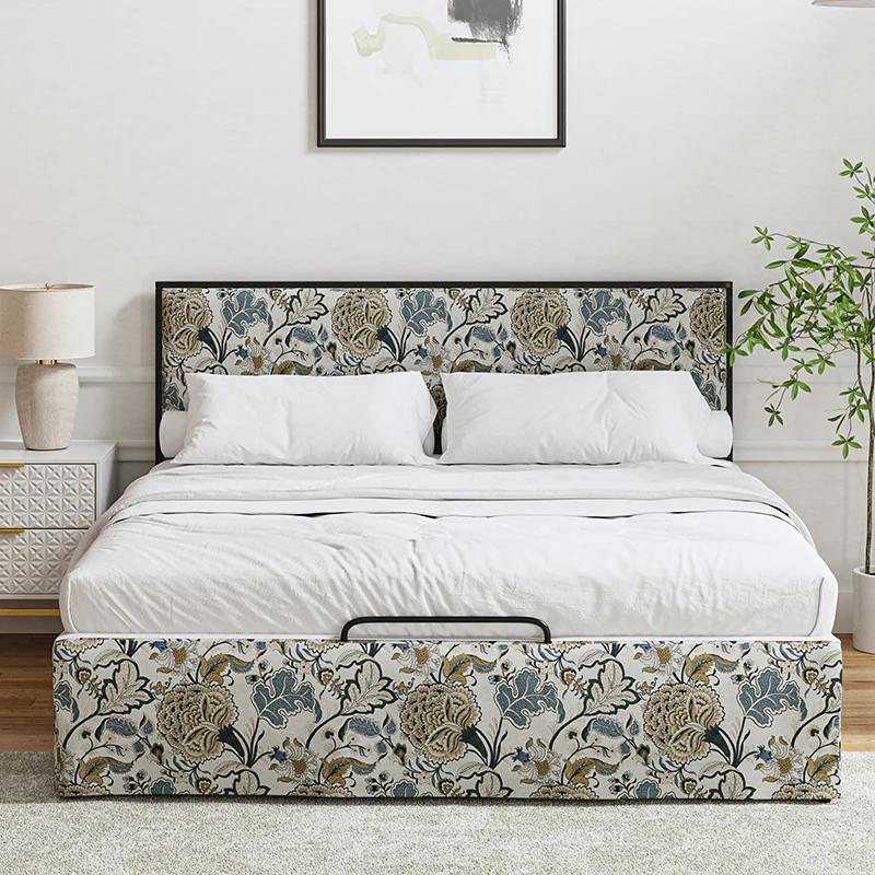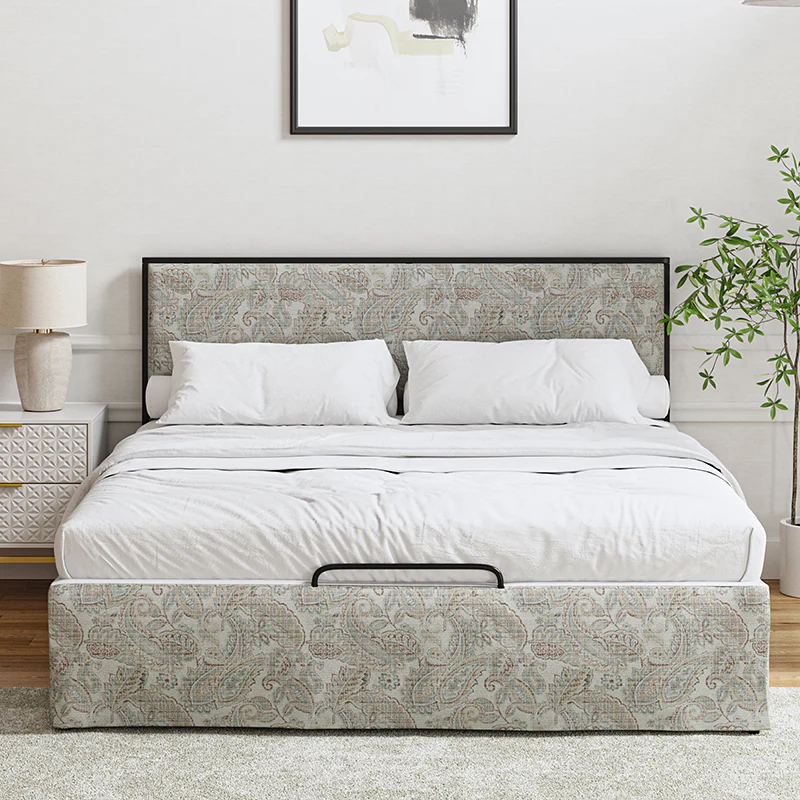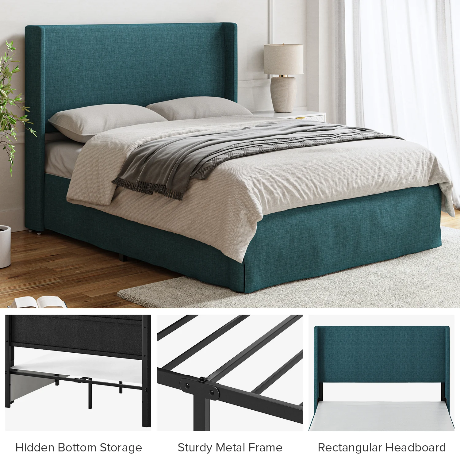 Ofelia 61" Transitional Upholstered Platform Metal Bed with Various Patterned Long Cushions