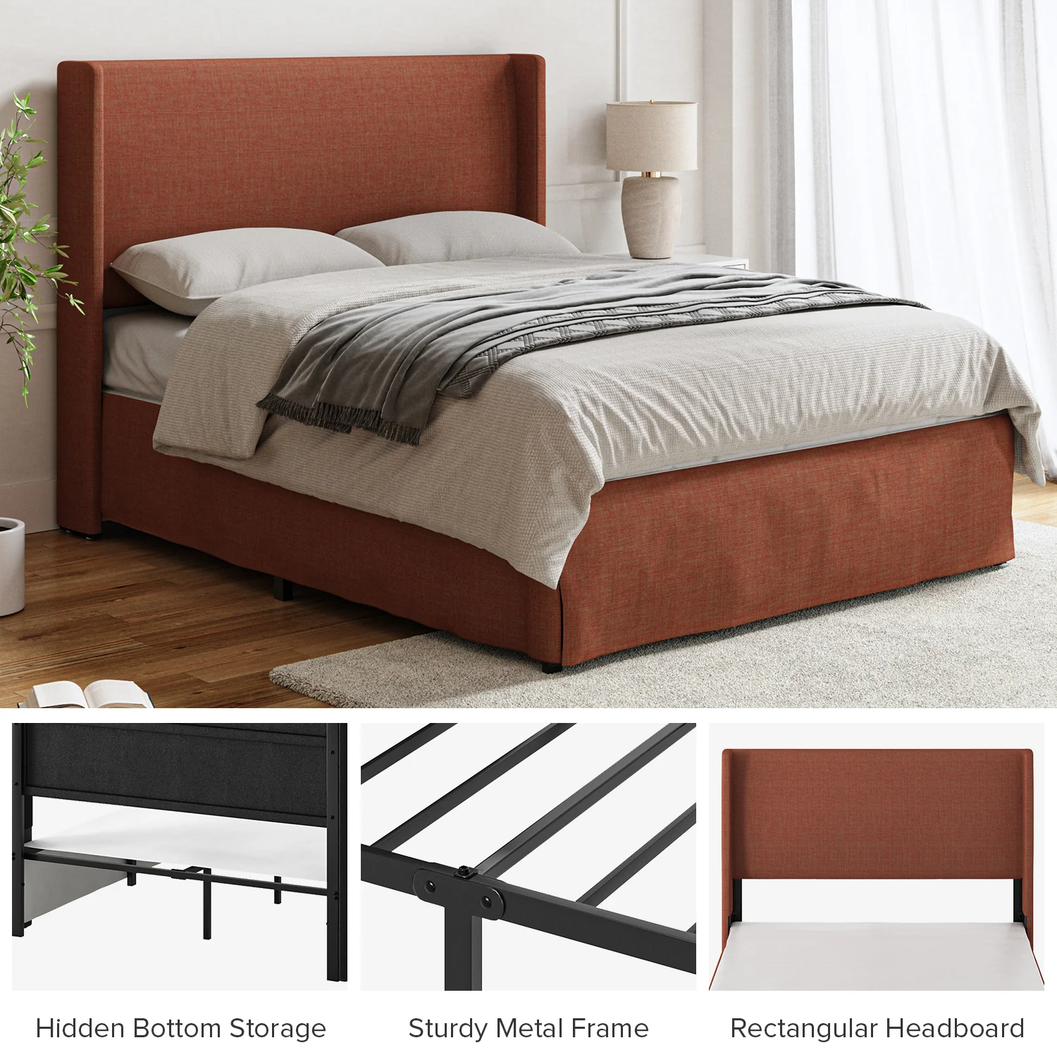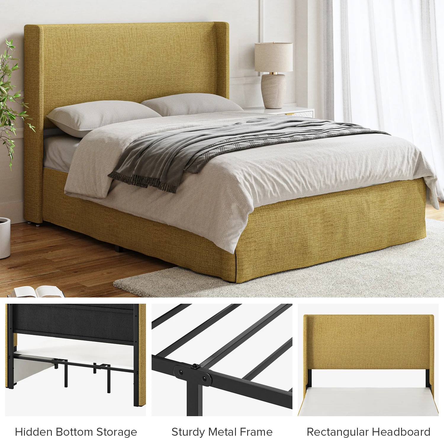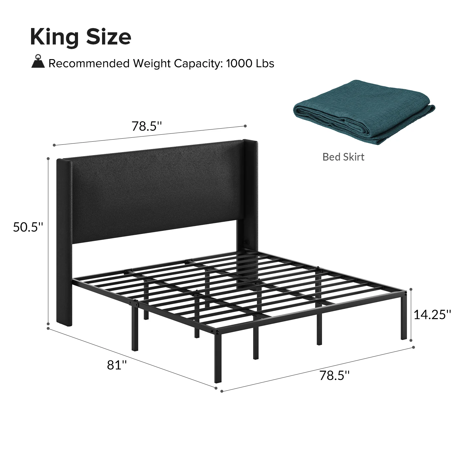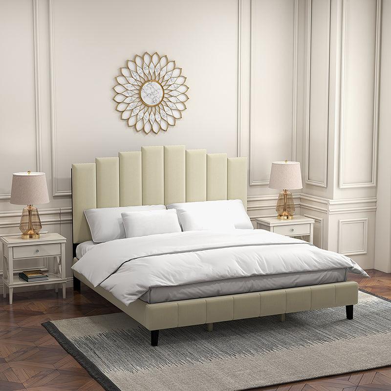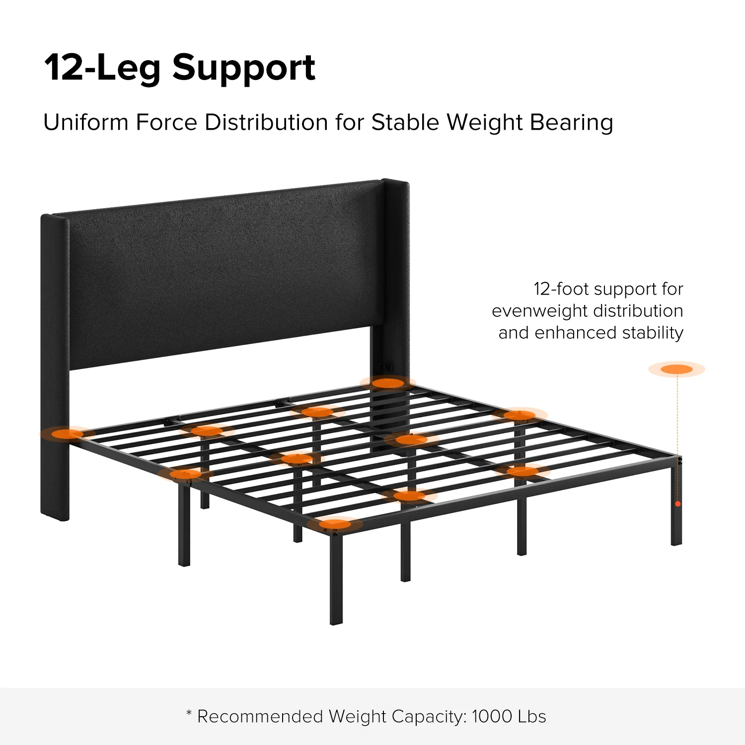 Ofelia 61" Transitional Upholstered Platform Metal Bed with Various Patterned Long Cushions