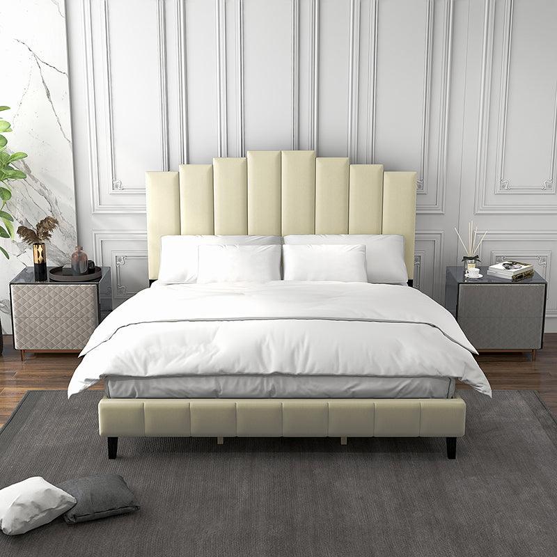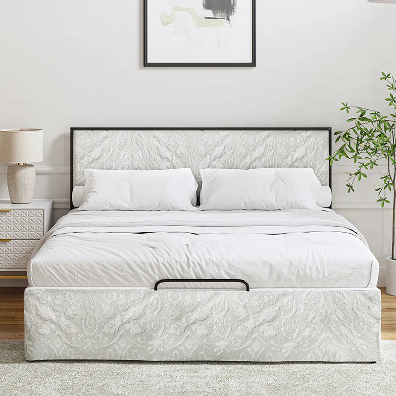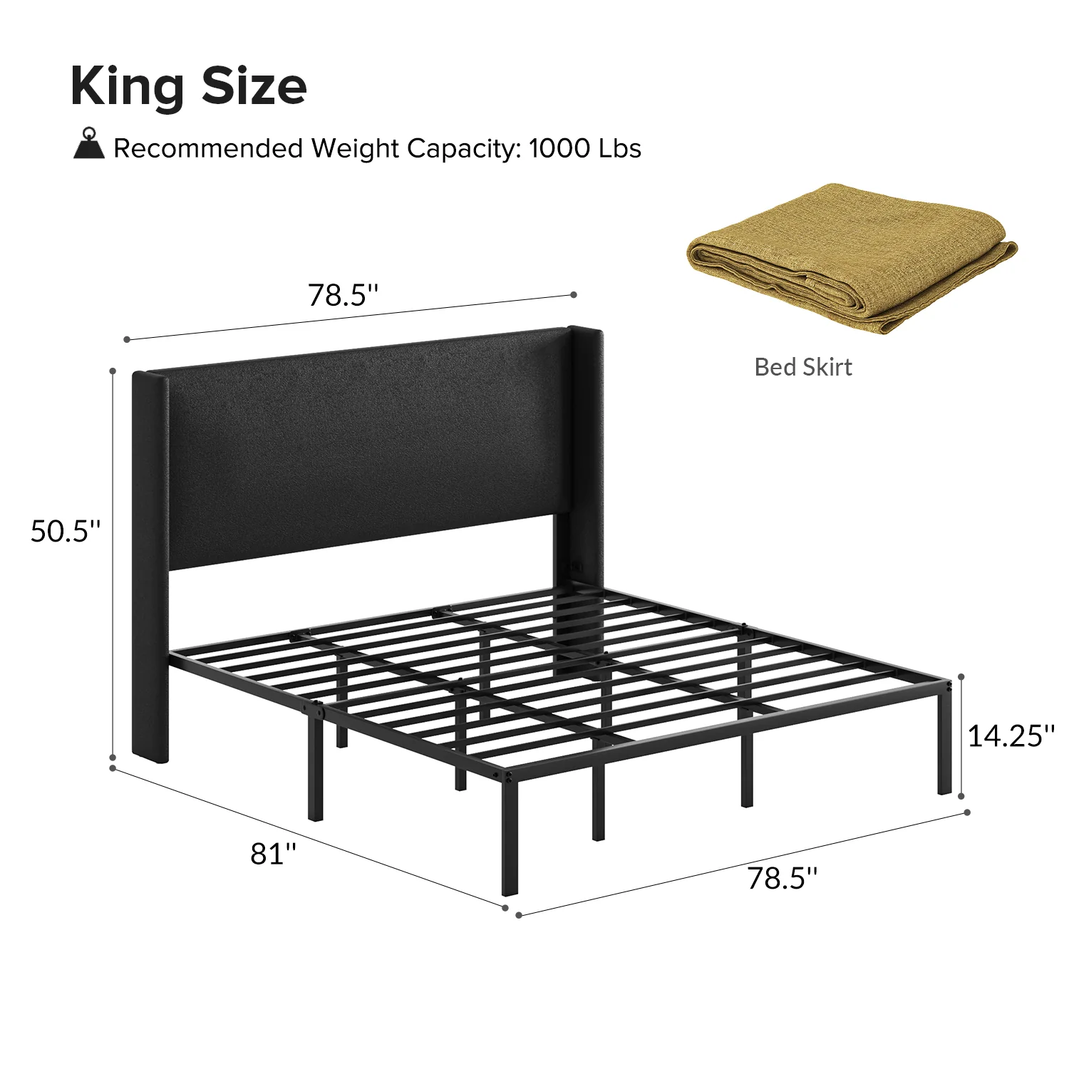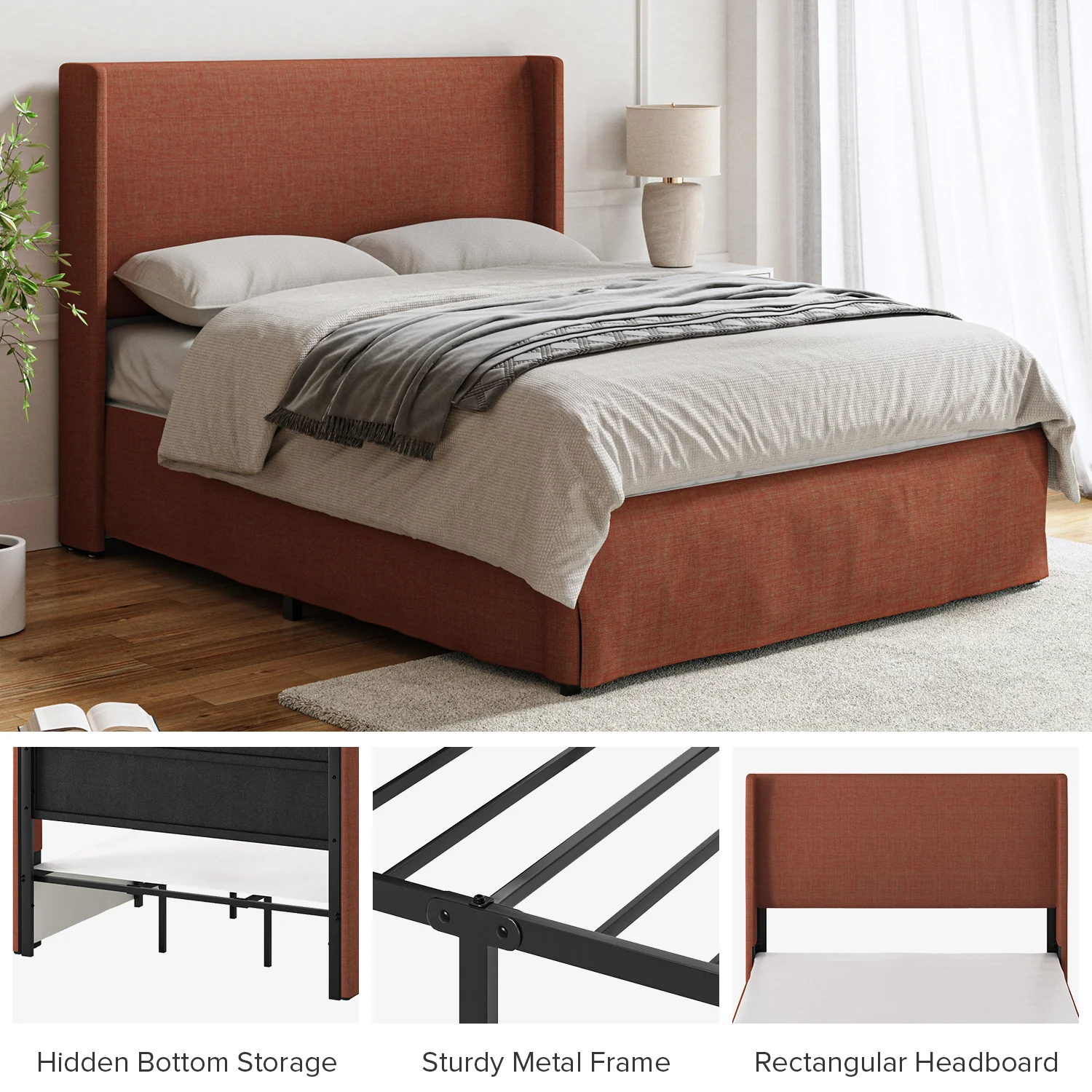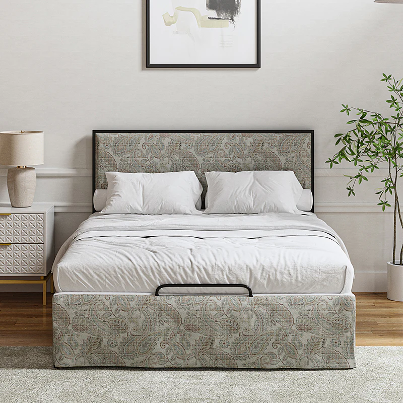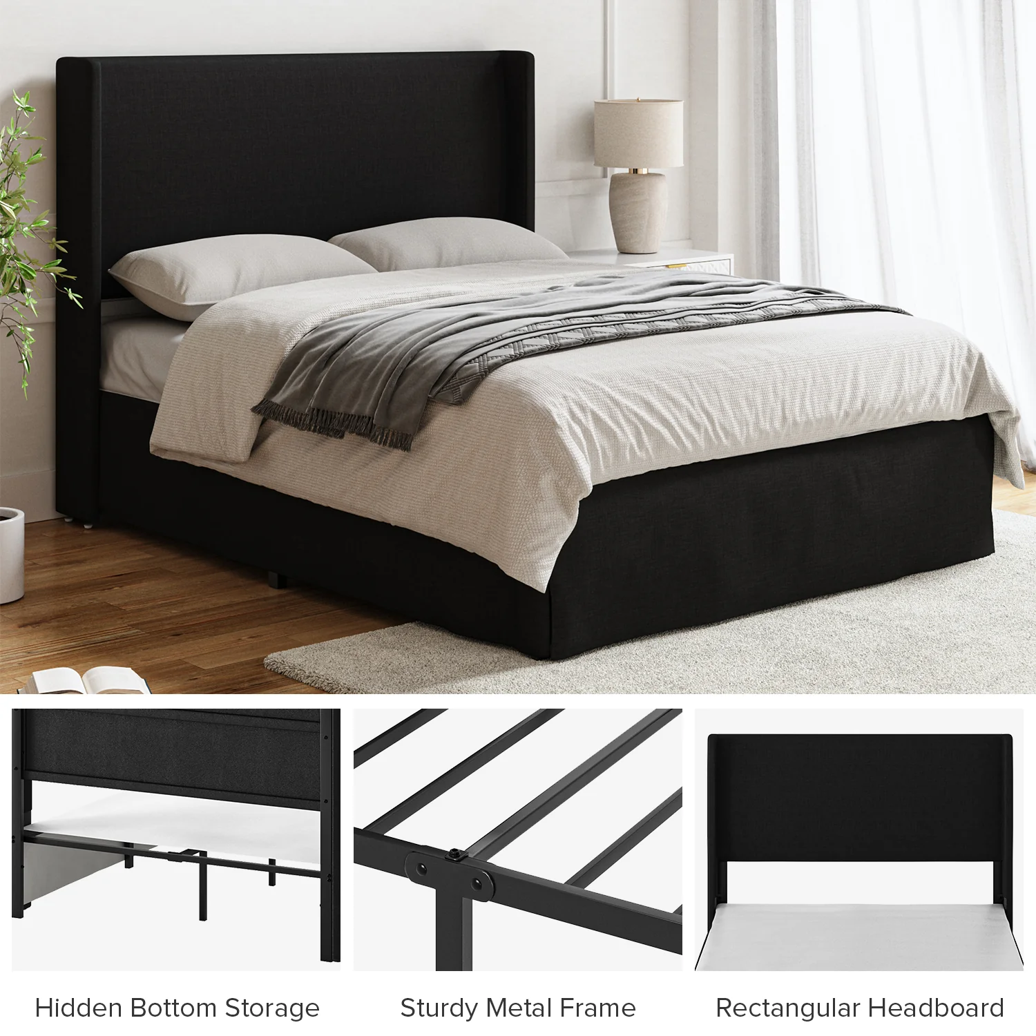 Ofelia 61" Transitional Upholstered Platform Metal Bed with Various Patterned Long Cushions