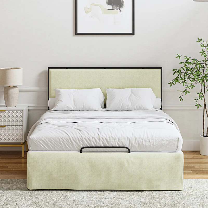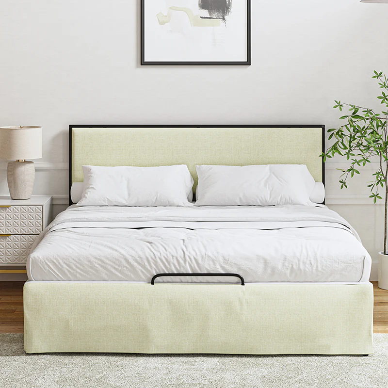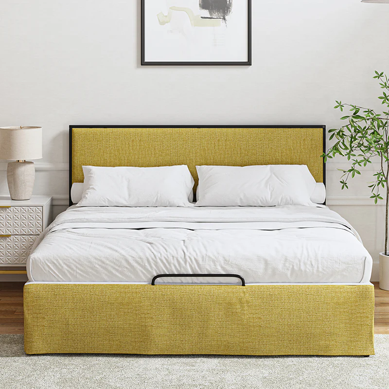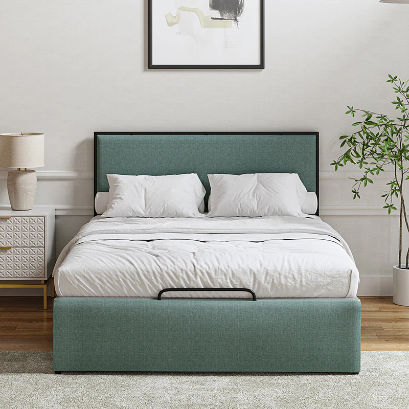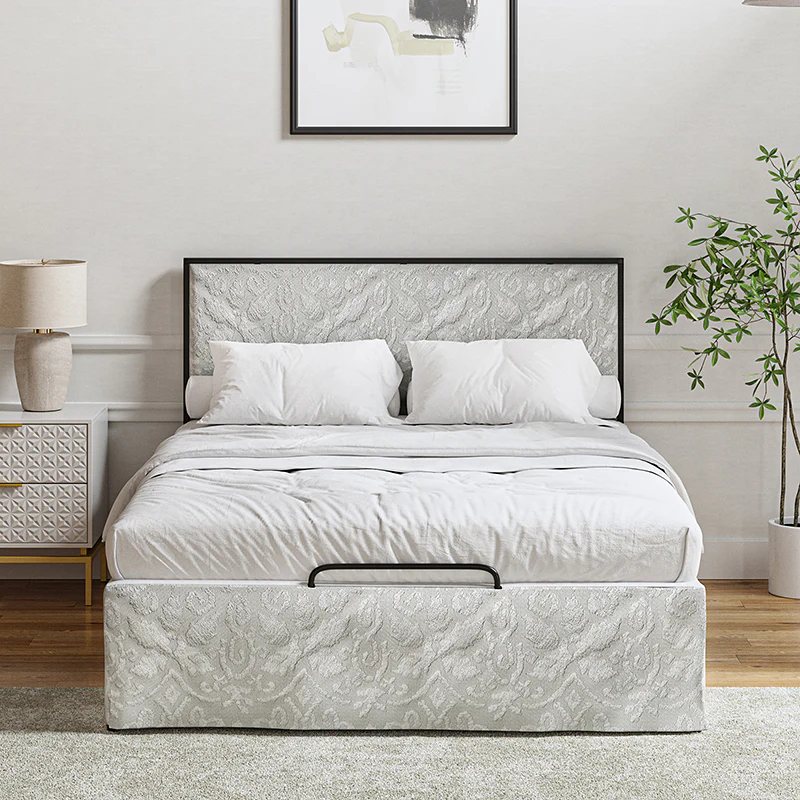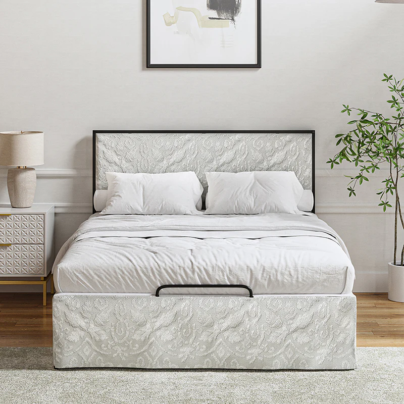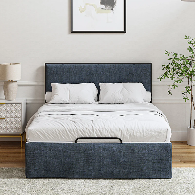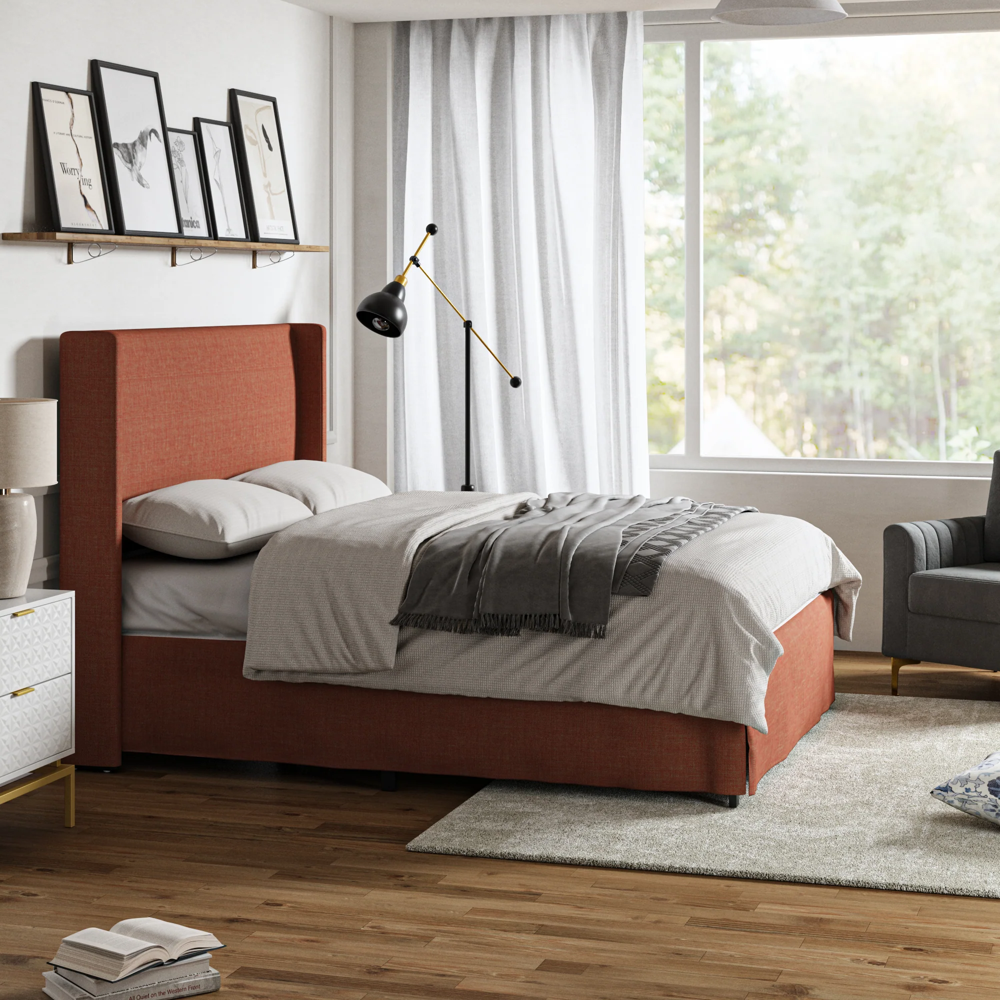Ofelia 61" Transitional Upholstered Platform Metal Bed with Various Patterned Long Cushions