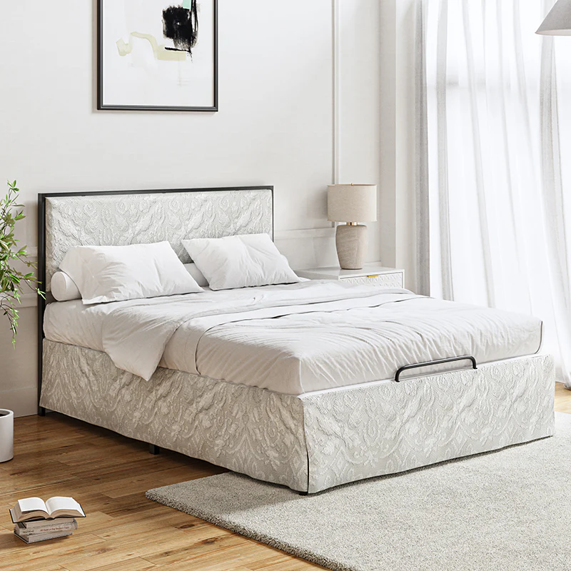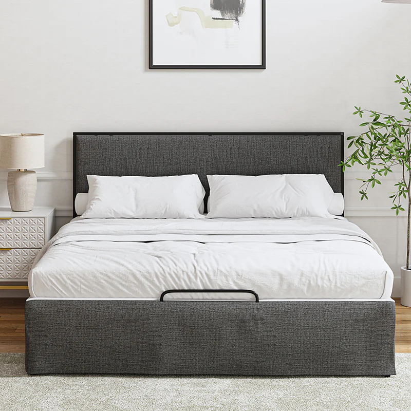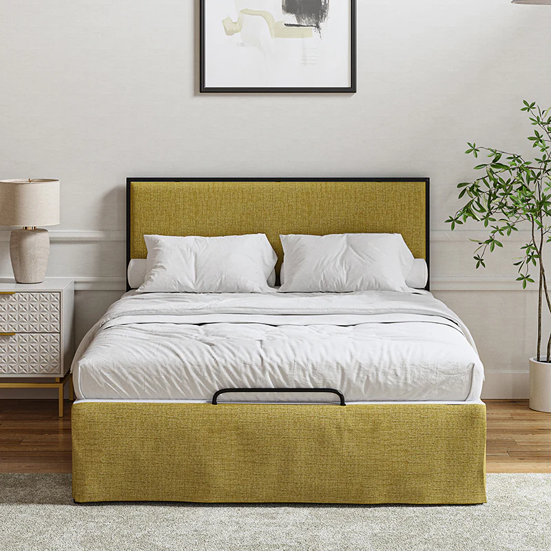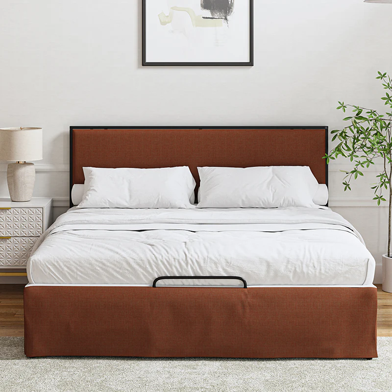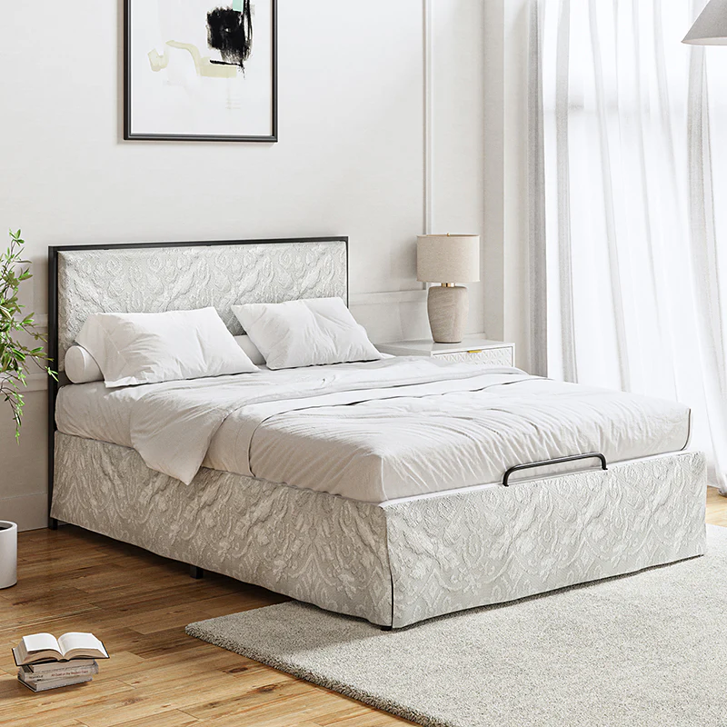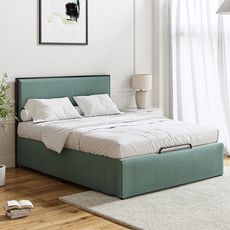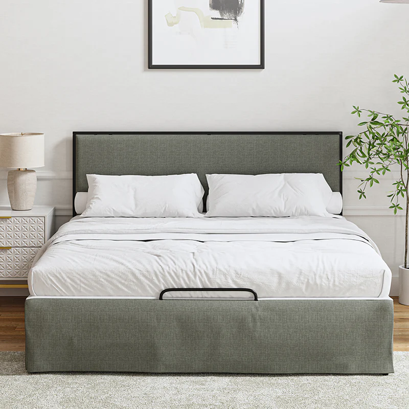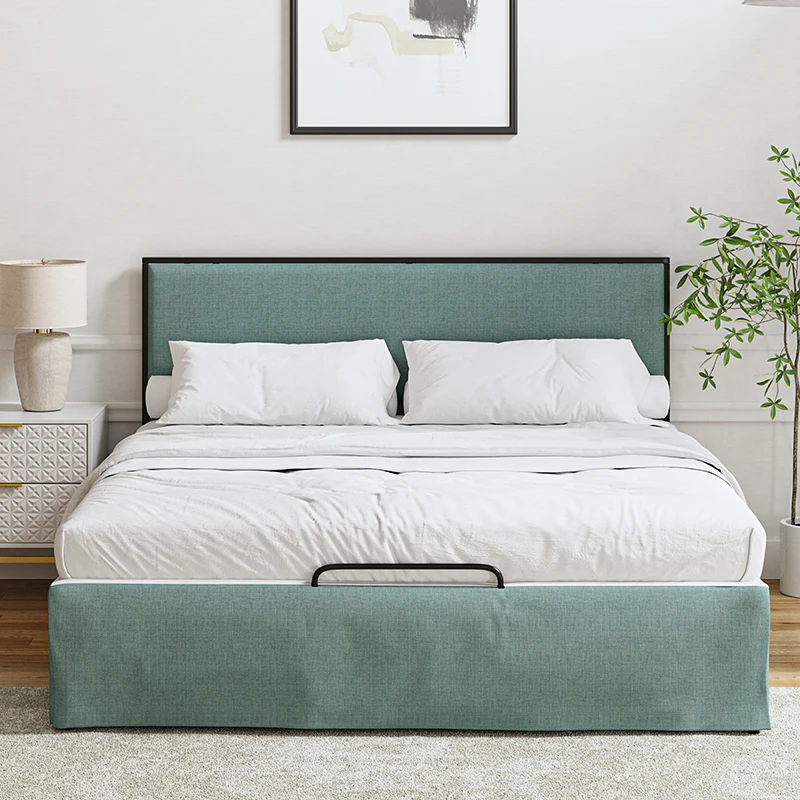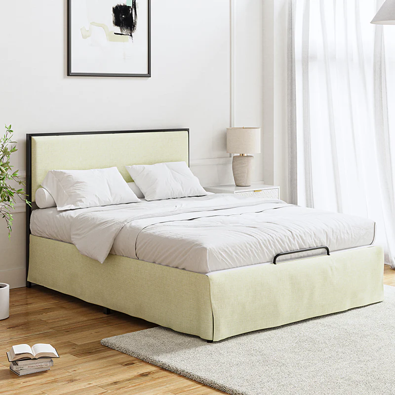 Ofelia 61" Transitional Upholstered Platform Metal Bed with Various Patterned Long Cushions