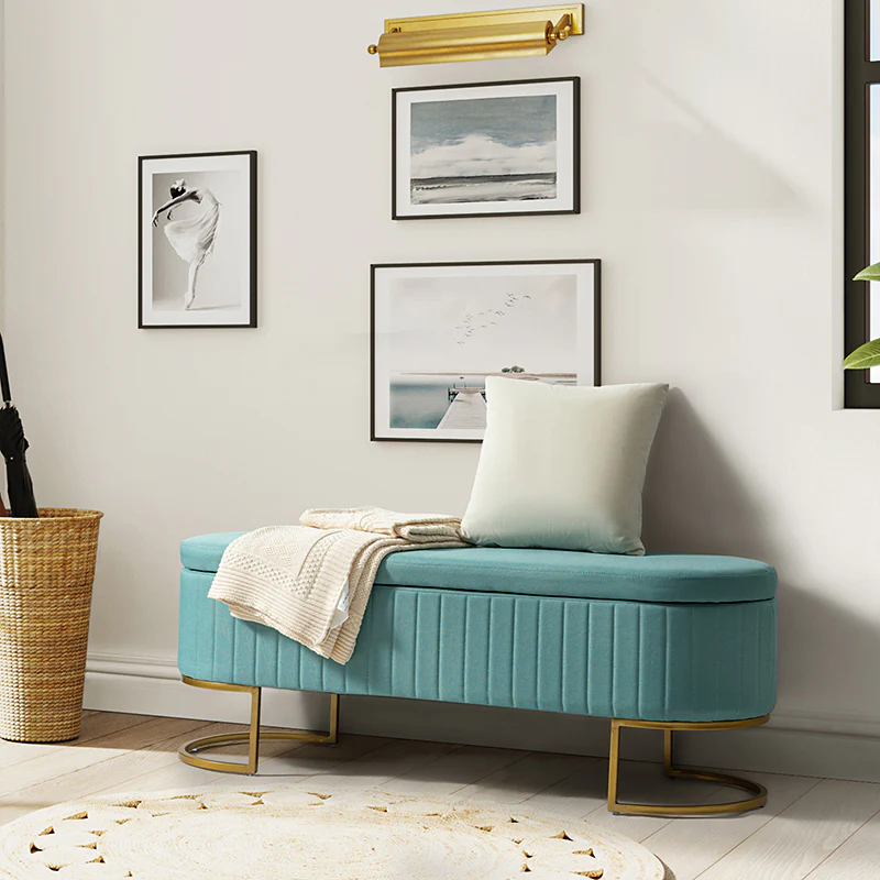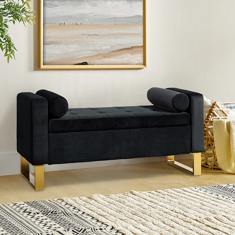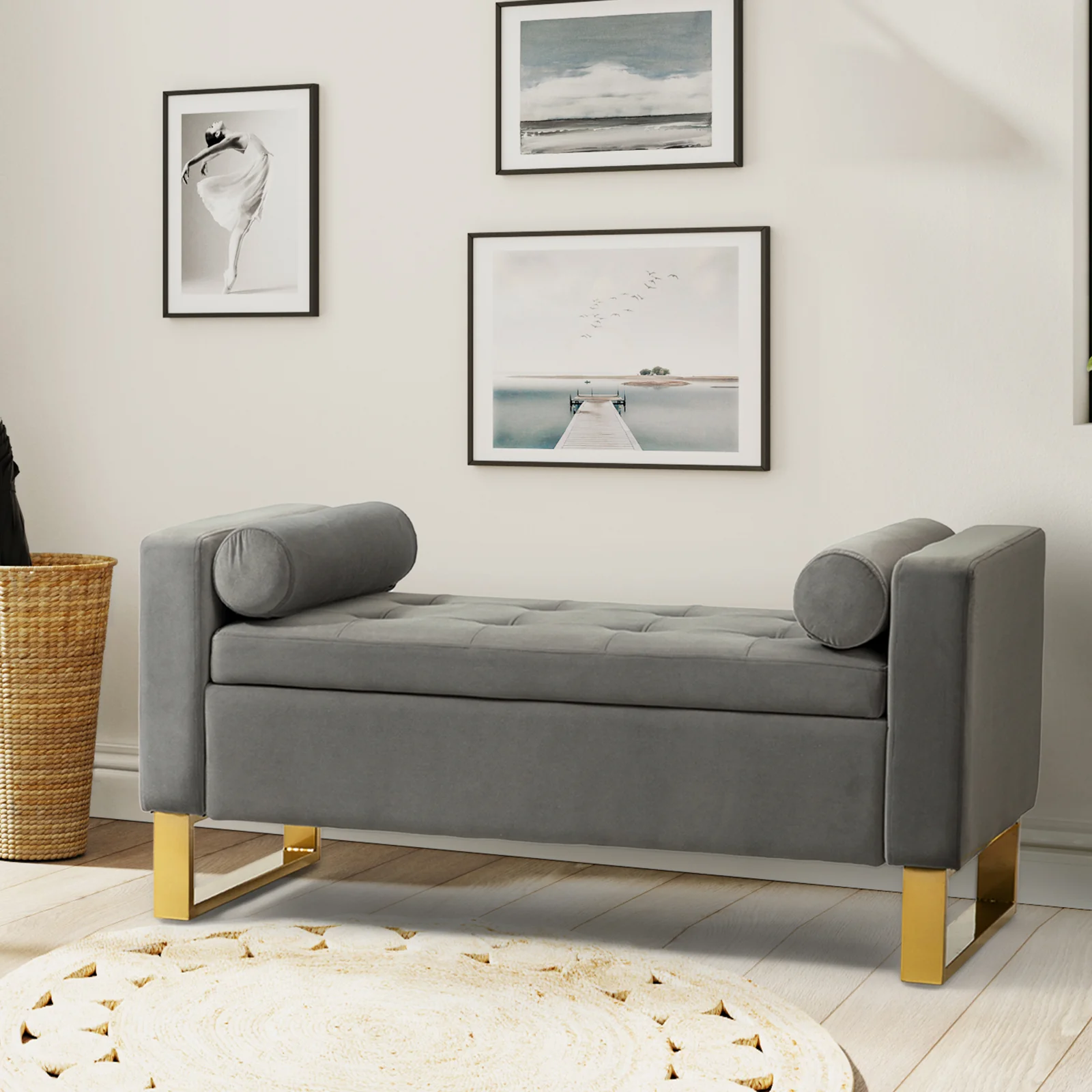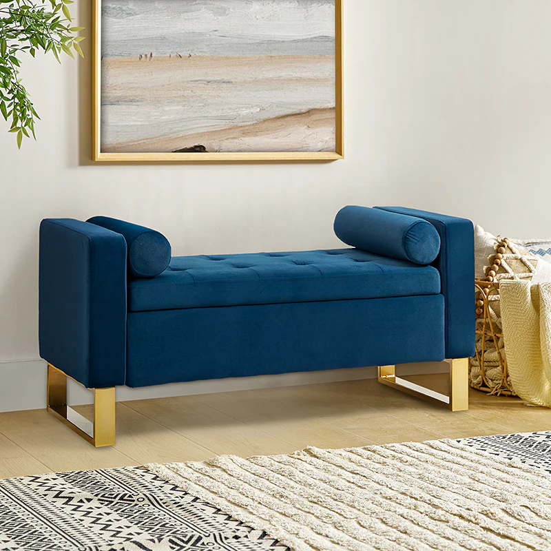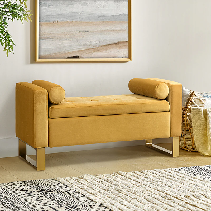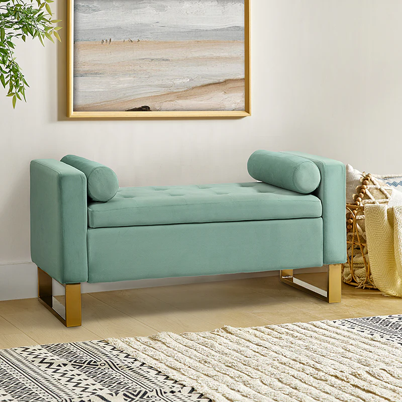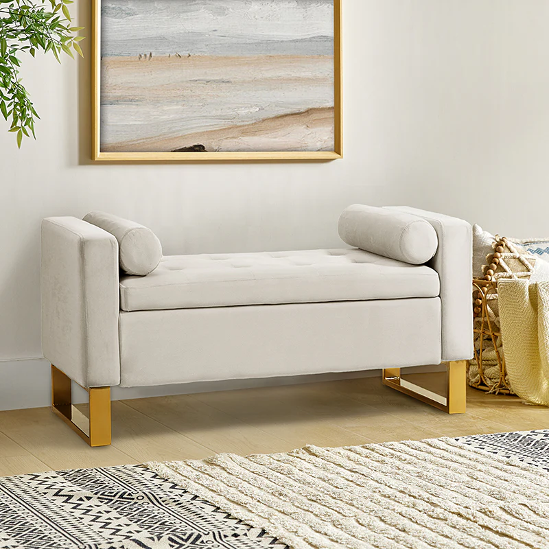 Gerardo Storage Bench with Elephant Ear-Shaped Pillows