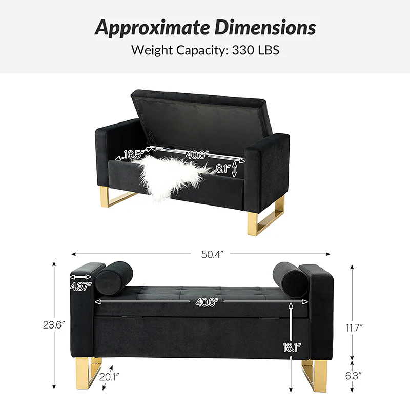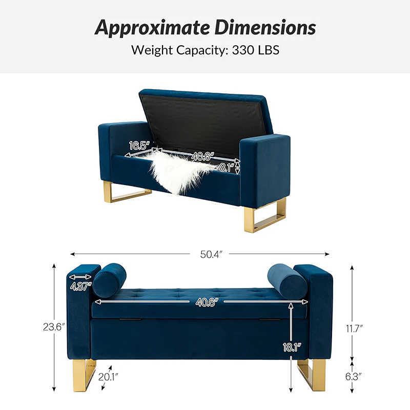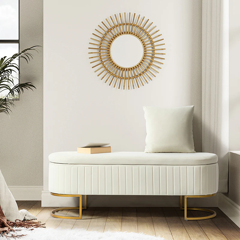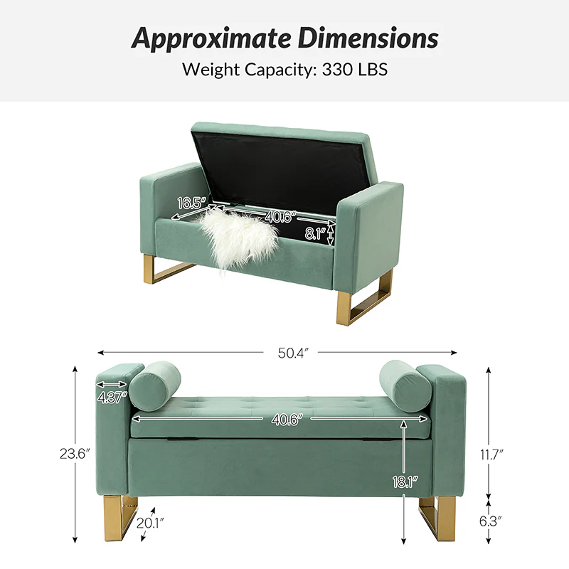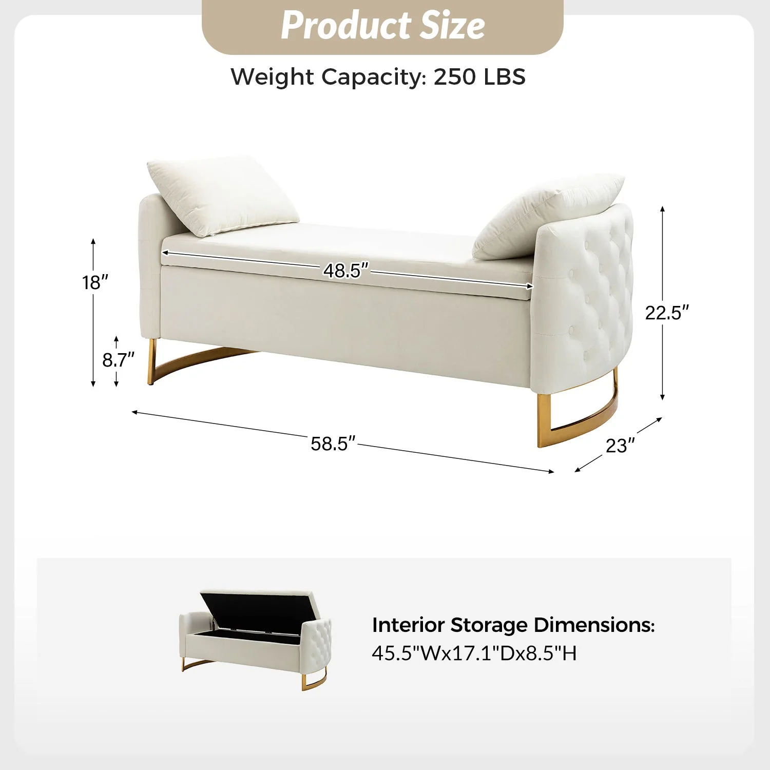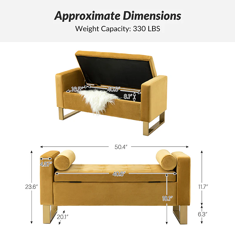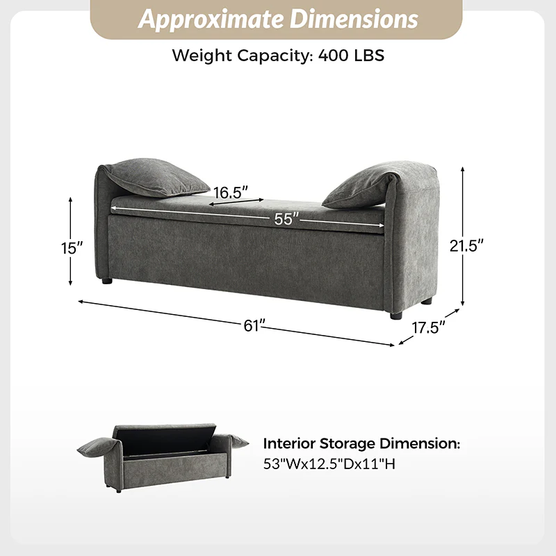 Gerardo Storage Bench with Elephant Ear-Shaped Pillows