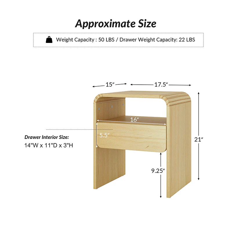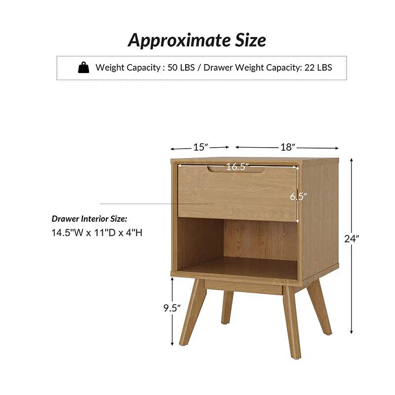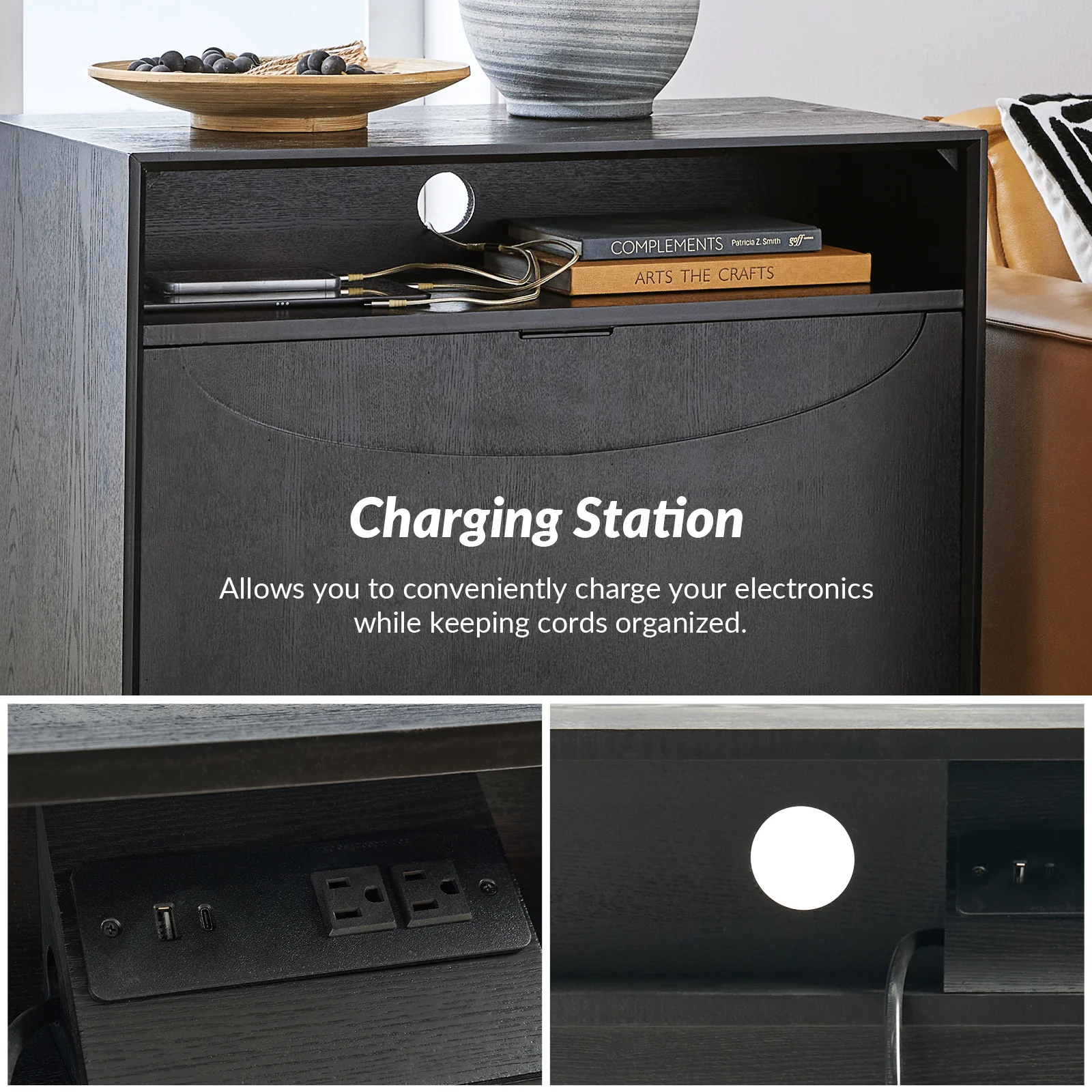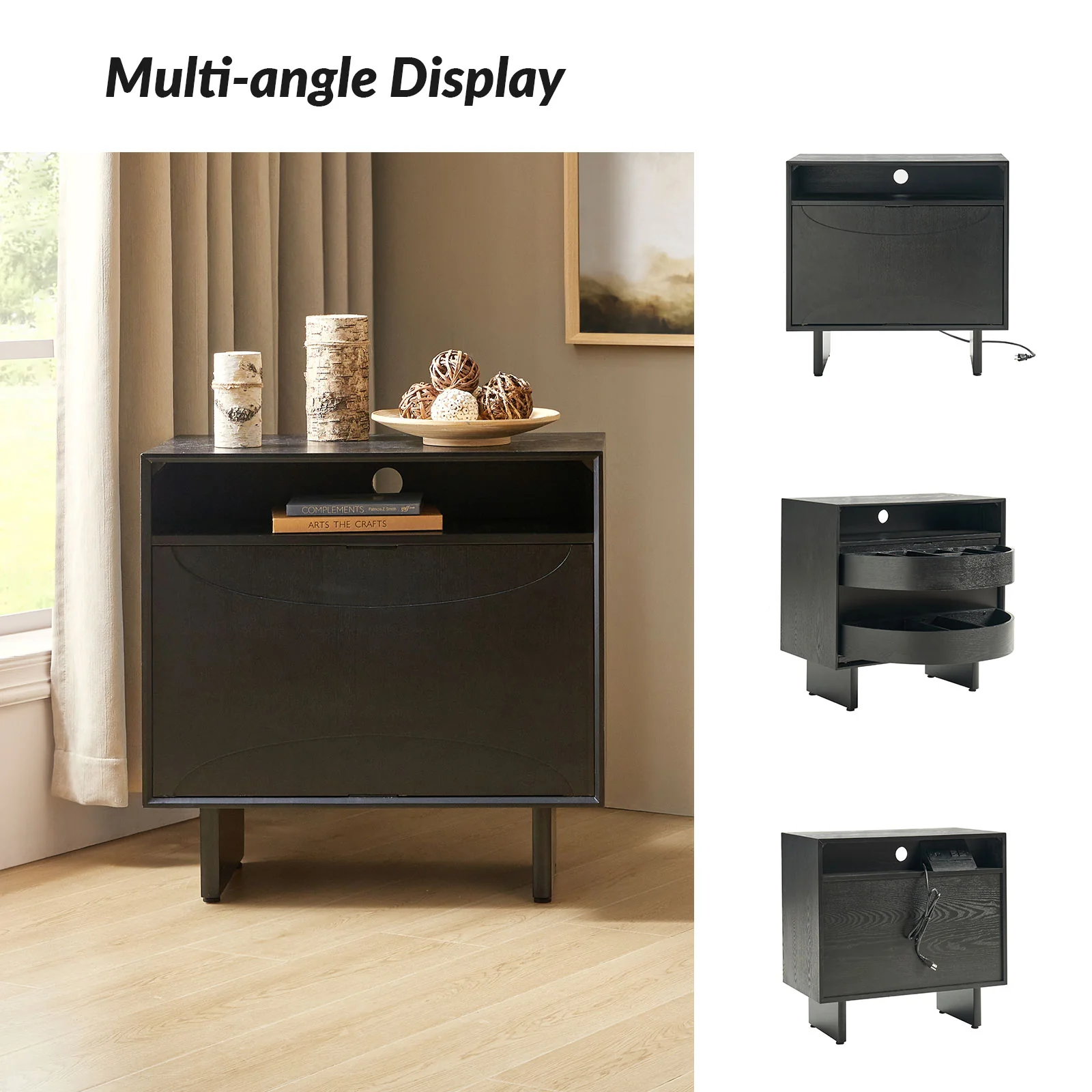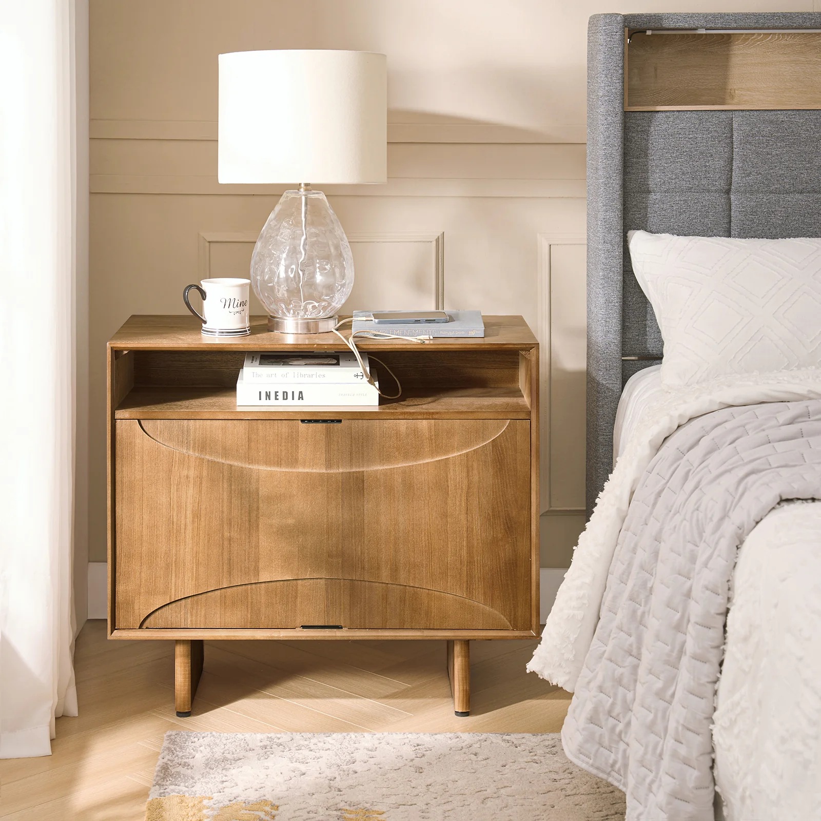 Dan 28" Tall Modern Style Nightstand with Built-In Outlets