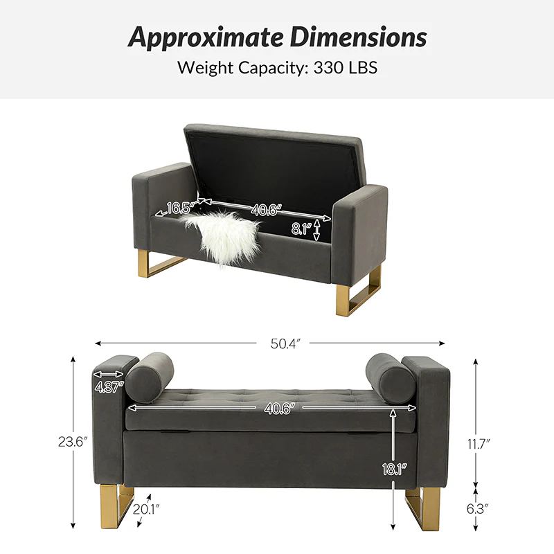 Sabina Modern Side-Opening Storage Upholstered Durable Bench