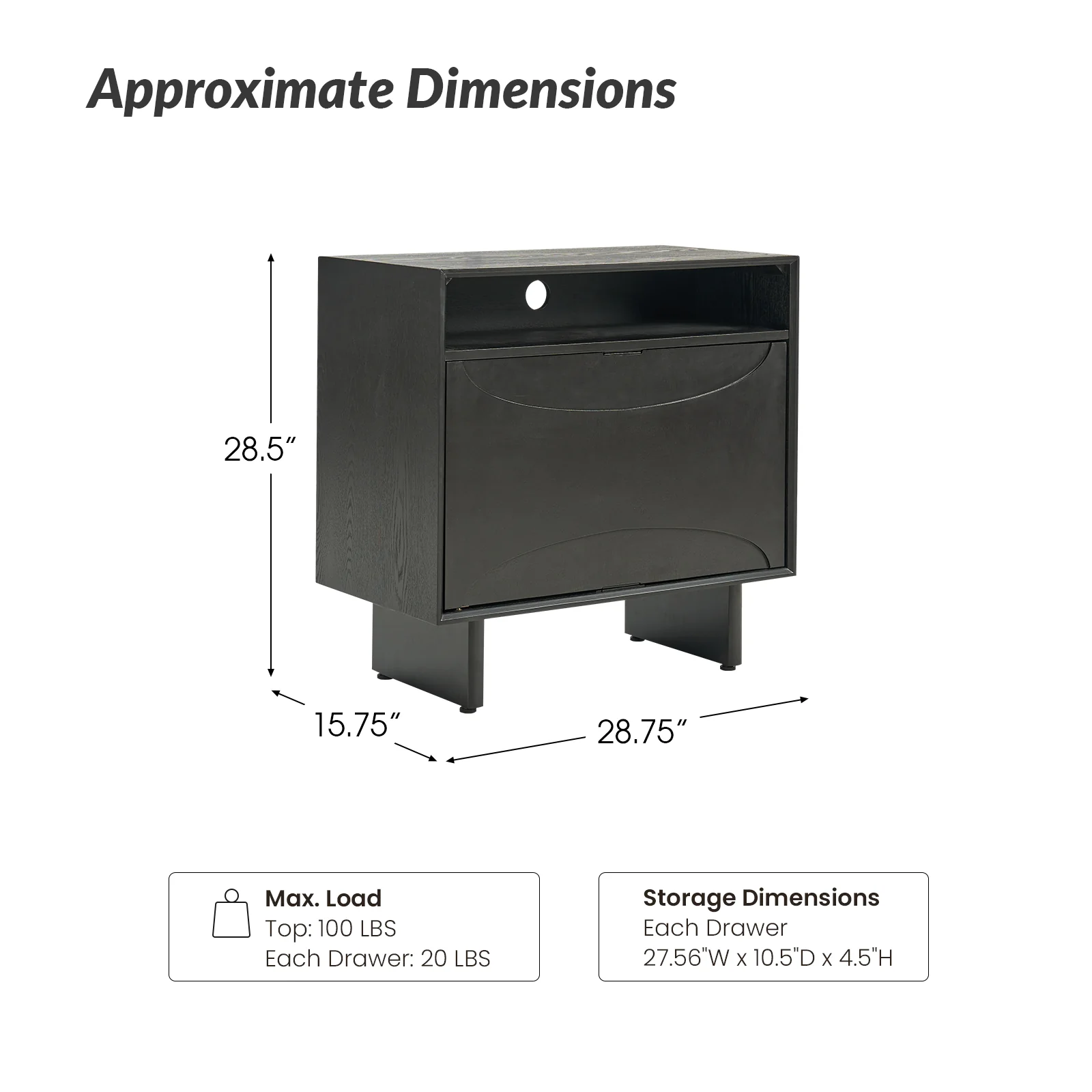 Siap 25" Tall 2-Drawer Nightstand with Built-in Outlets