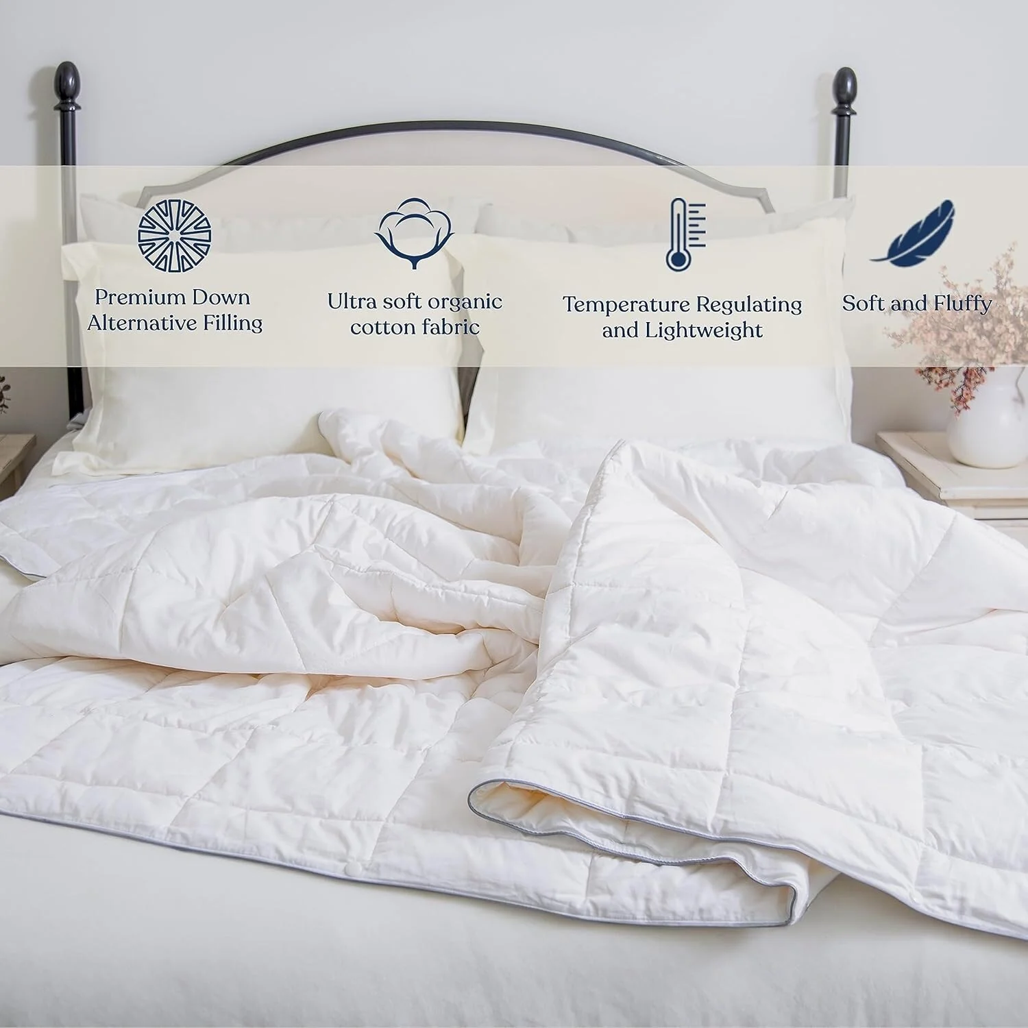 Lightweight 100% Organic Cotton Feather Down Comforter Summer Duvet Insert