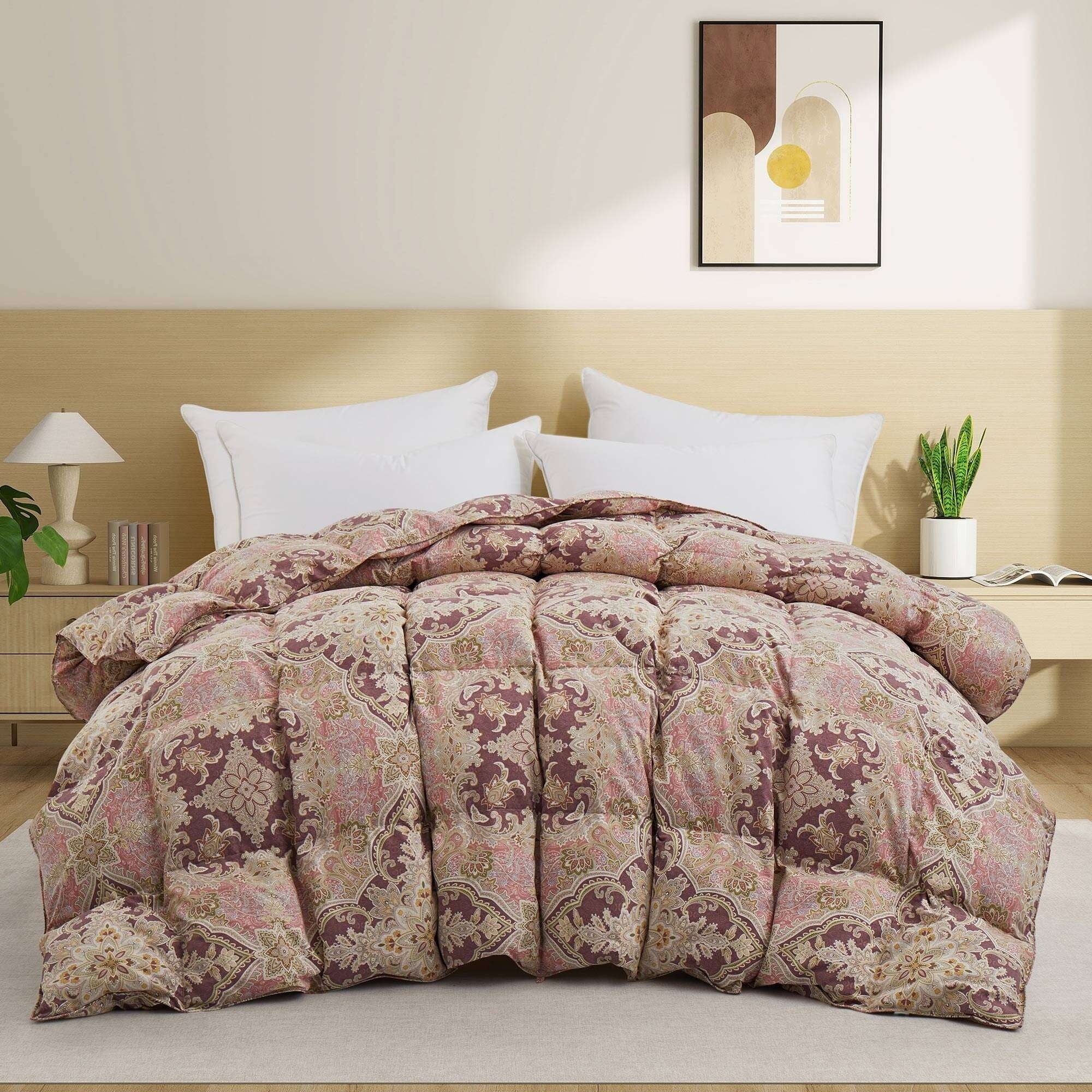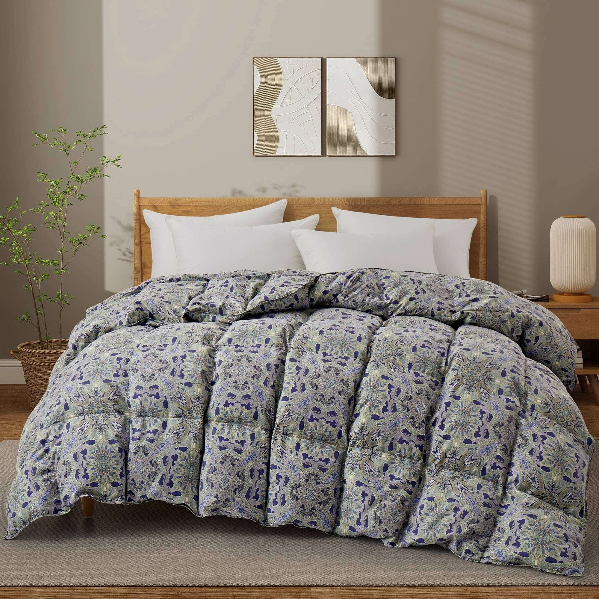 Lightweight Summer Flroal & Solid Printed Goose Feather Down Comforter Duvet Insert