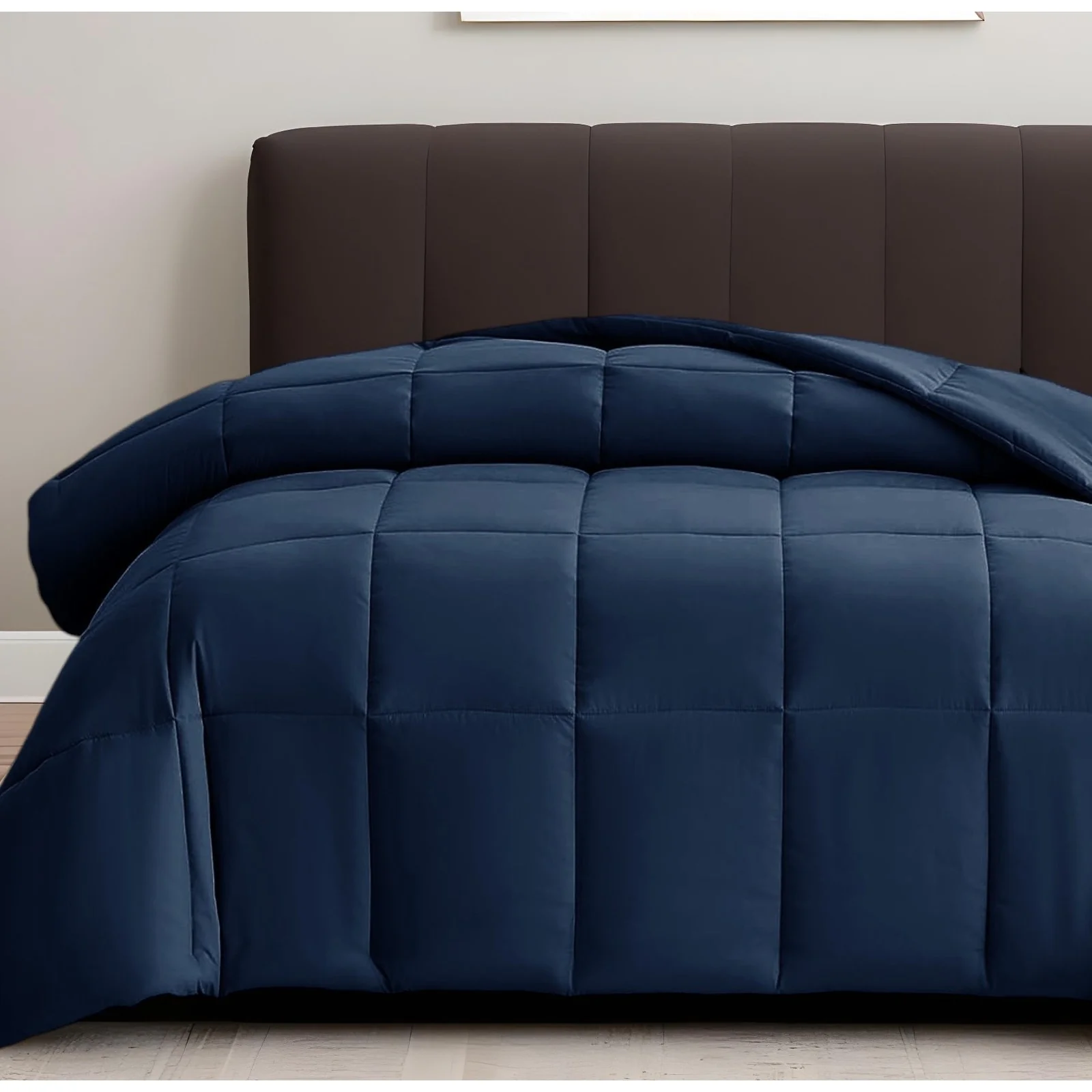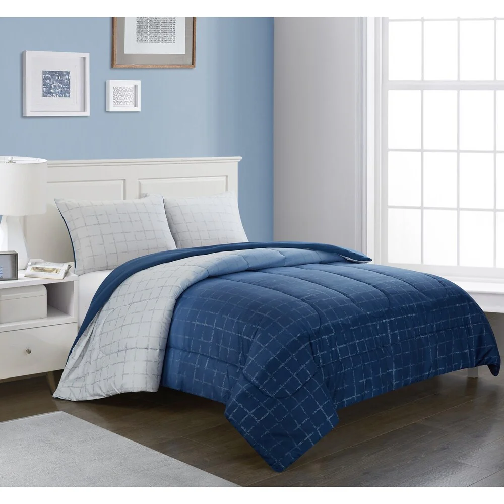 Navy Blue Twin Box Stitch Microfiber Down Alternative Comforter