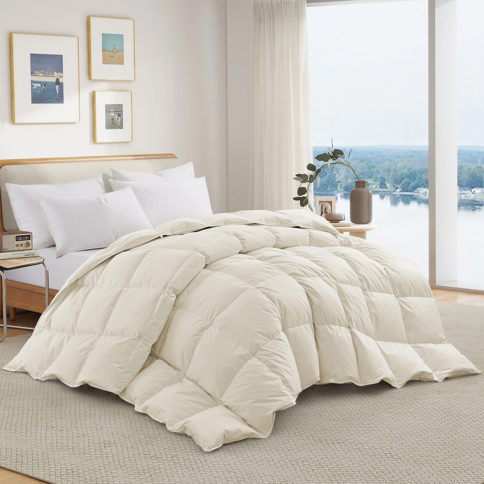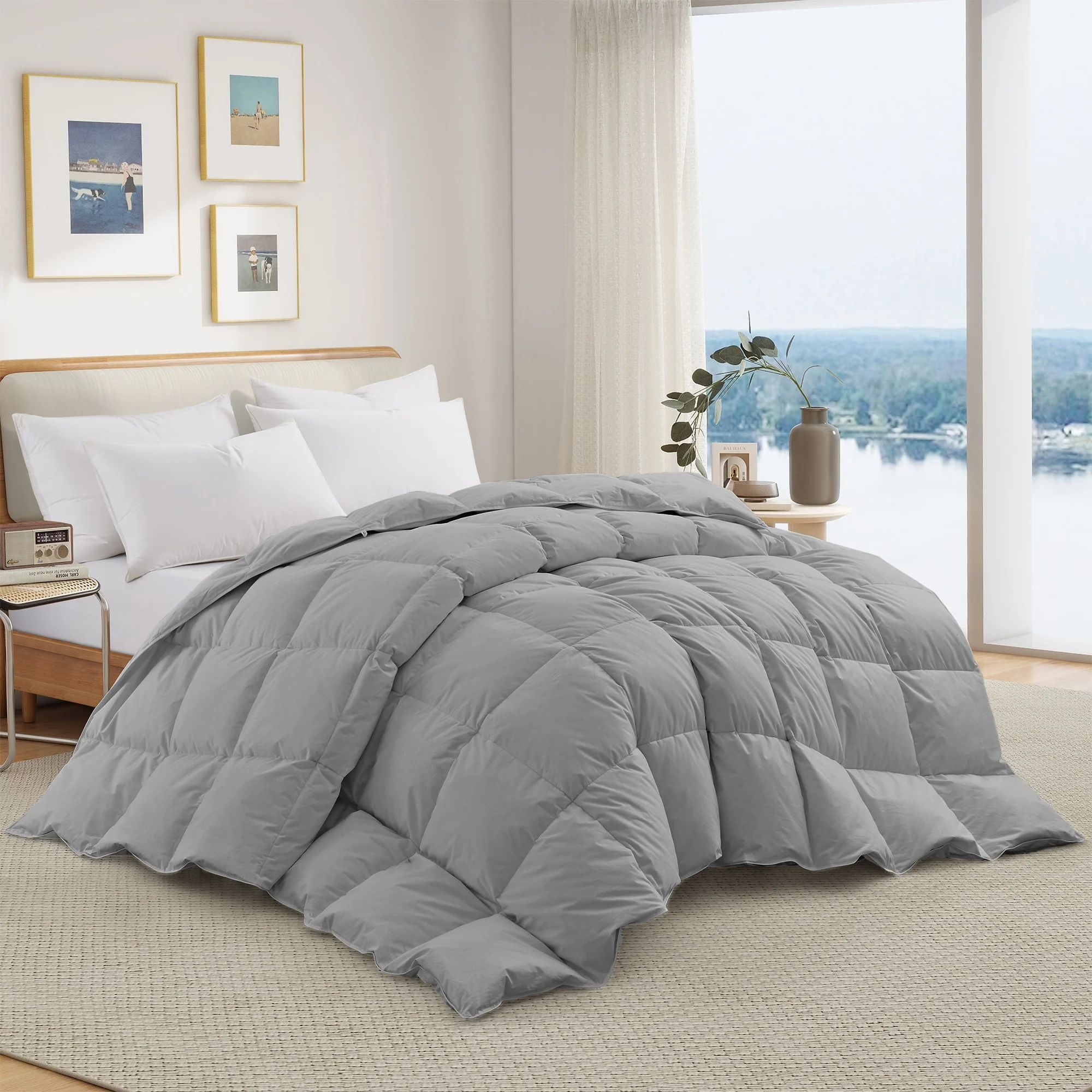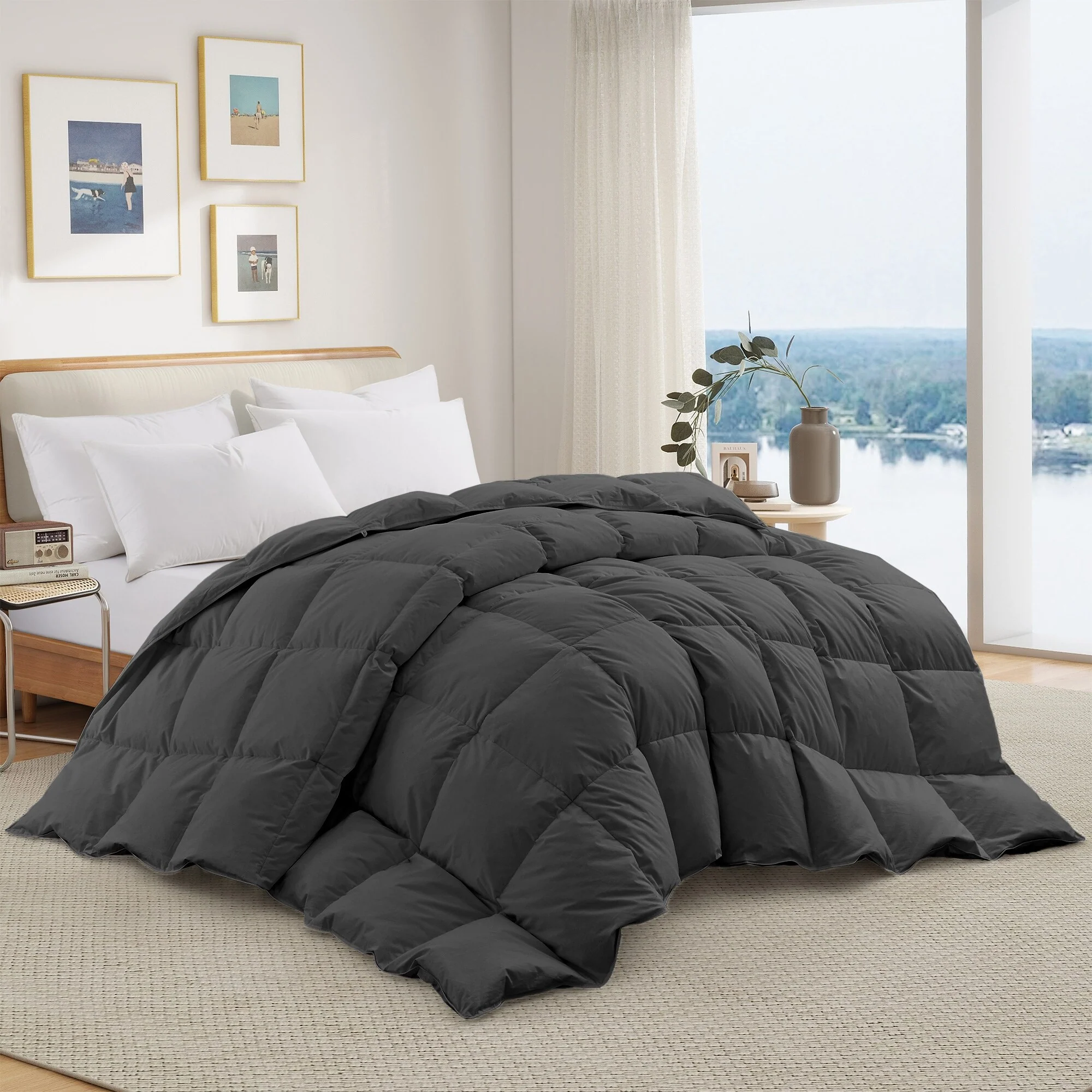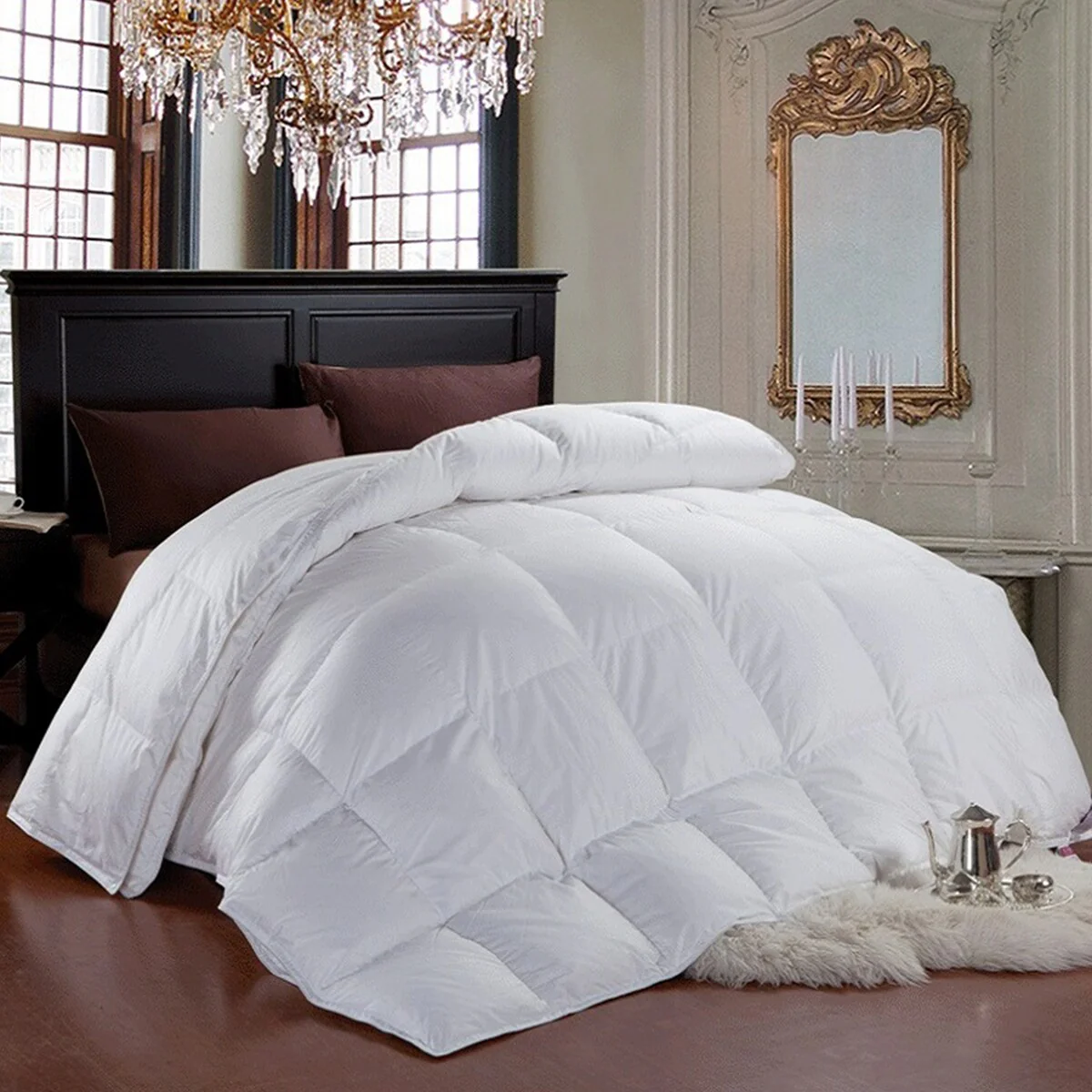 Year-round Light & Heavy Weight 100% Cotton Fluffy Goose Feather Down Comforter