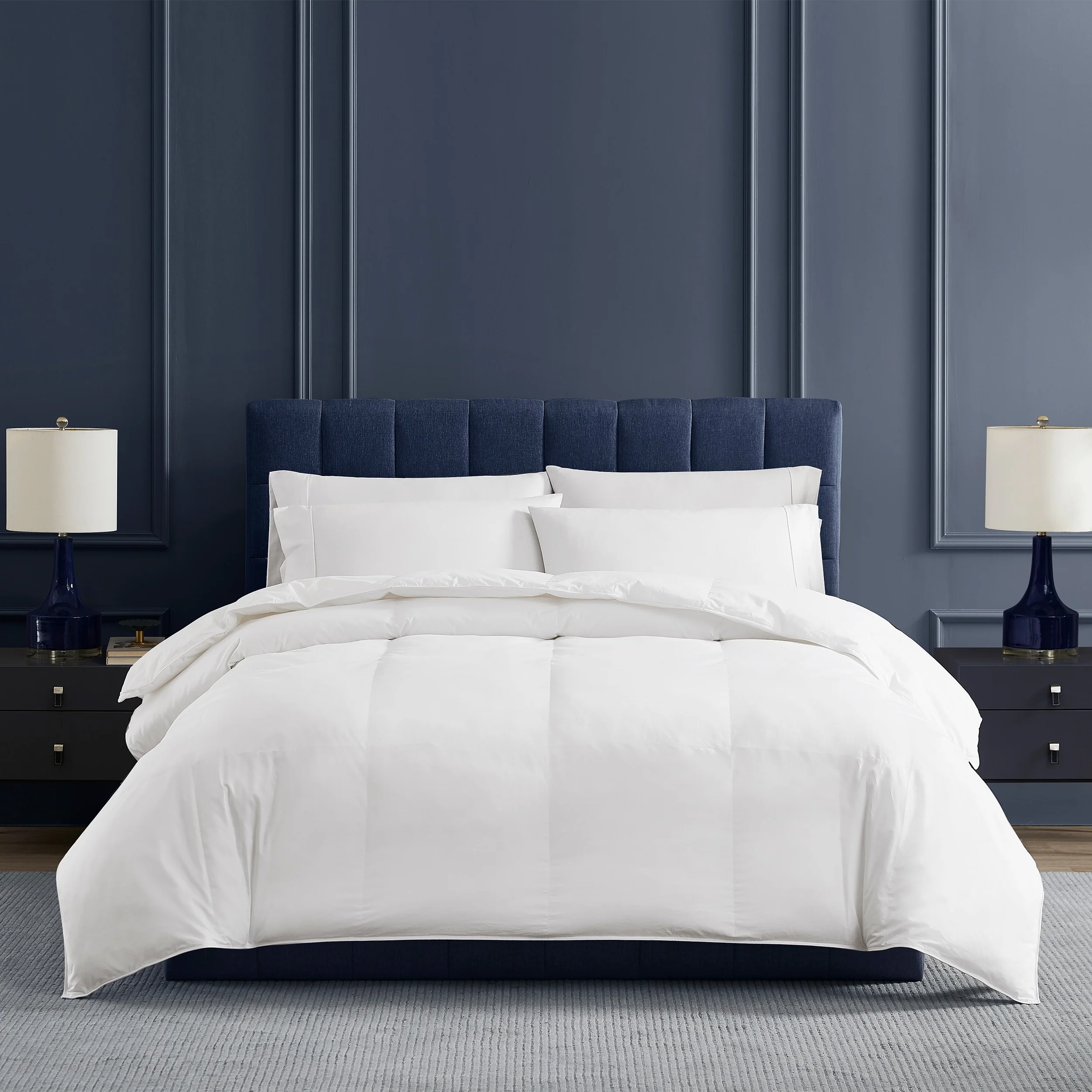 Navy Blue Queen Box Stitch Microfiber Down Alternative Comforter