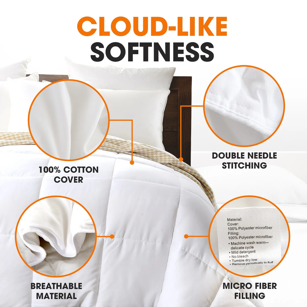 Super Soft White Comforter with Piping