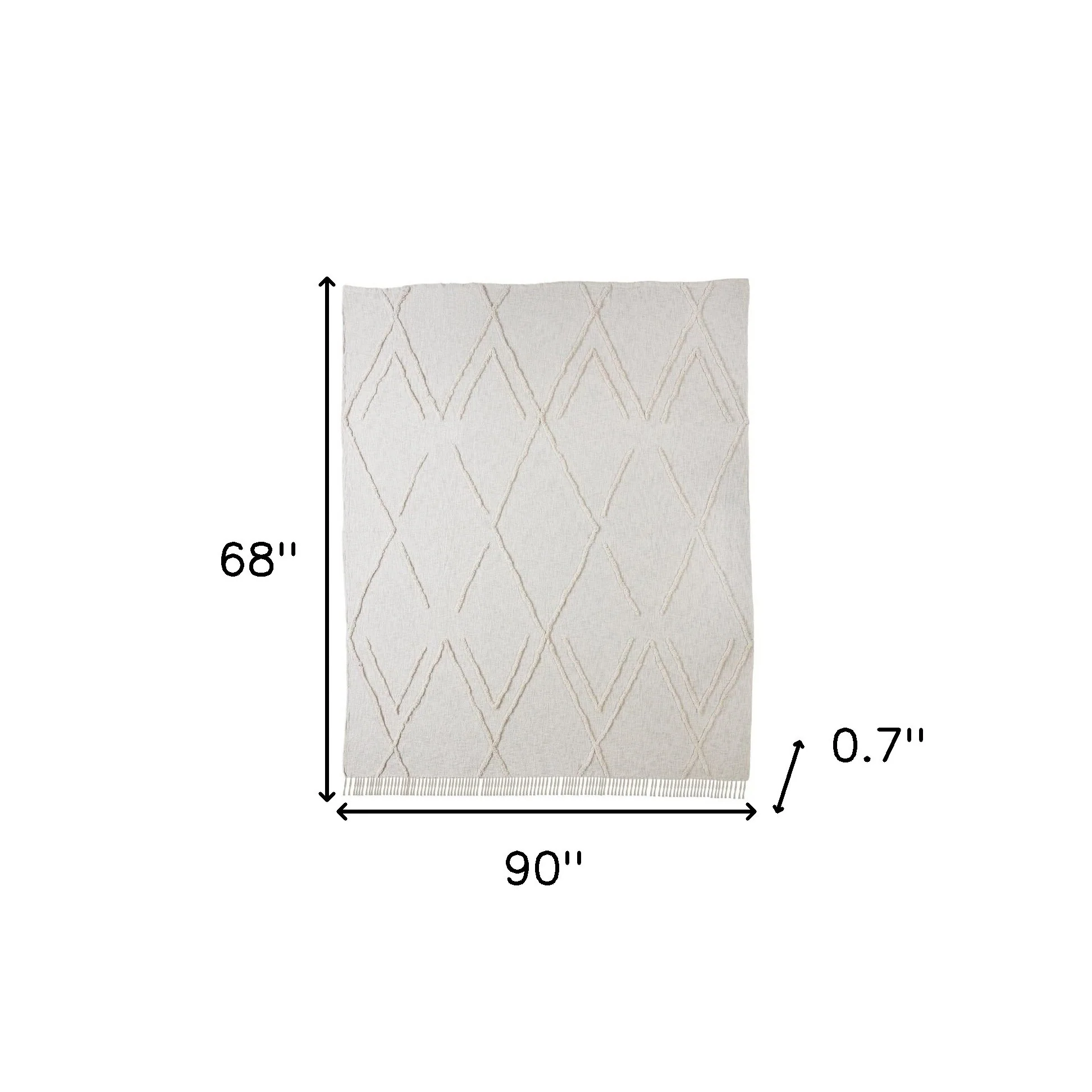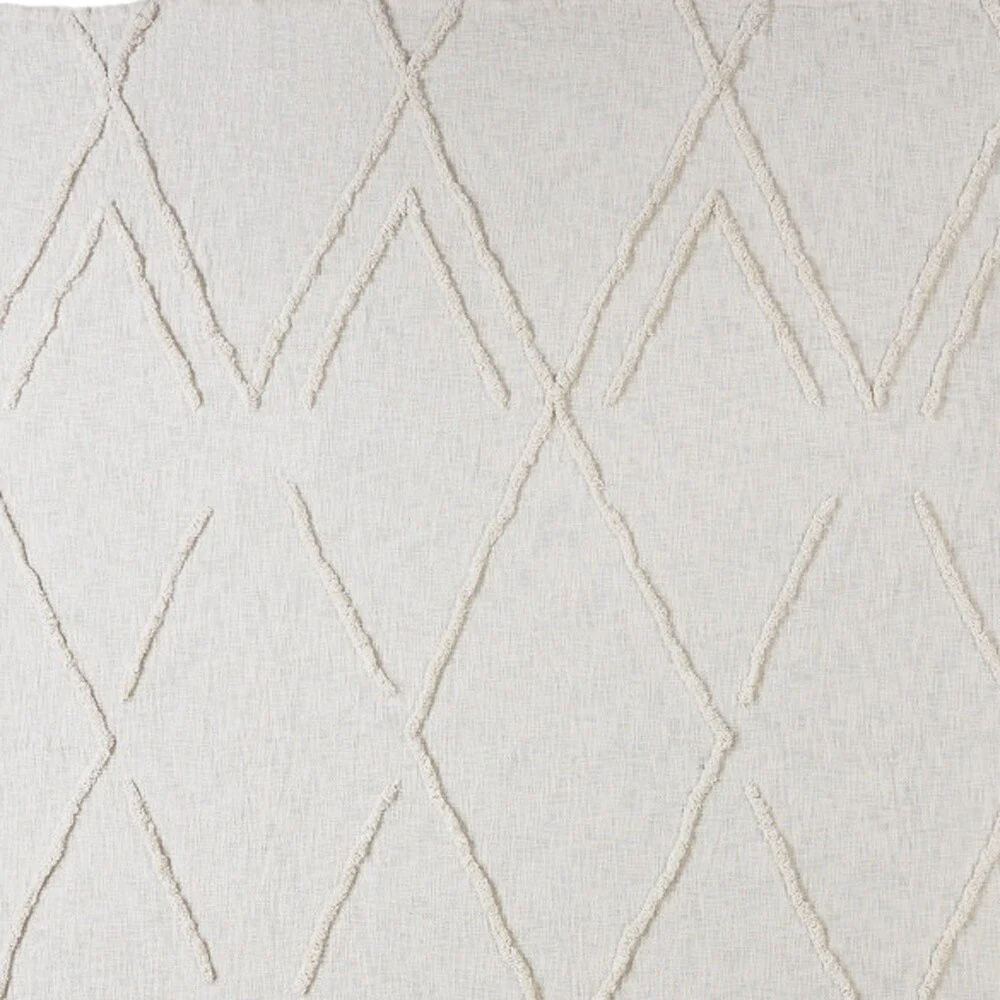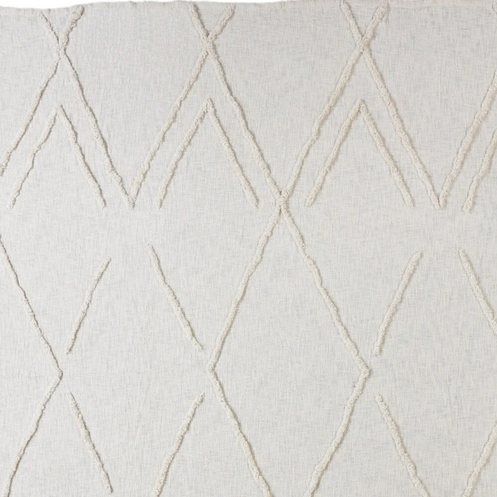 Ivory Geometric King Cotton Coverlet With Fringe