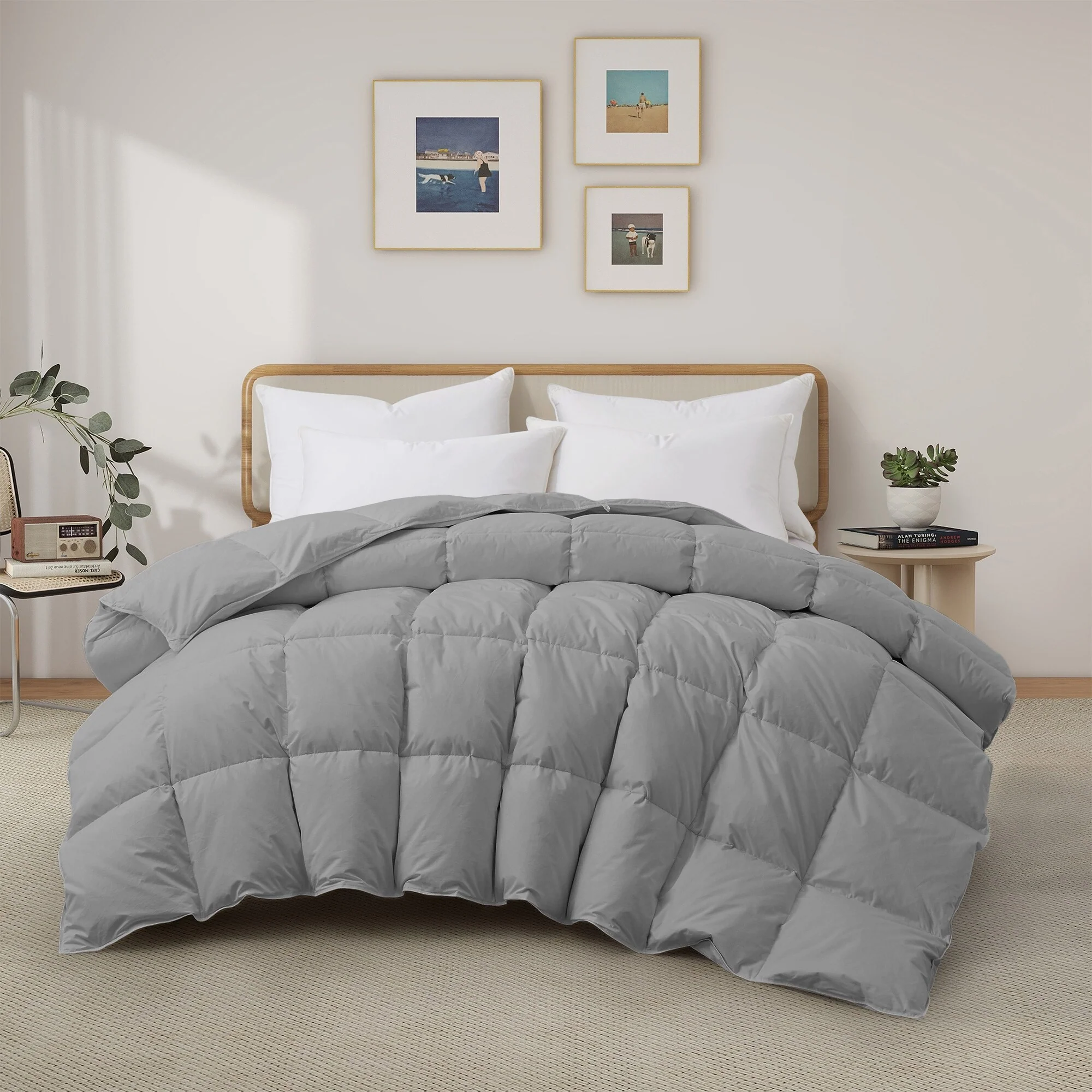 Gray King Box Stitch Microfiber Down Alternative Comforter