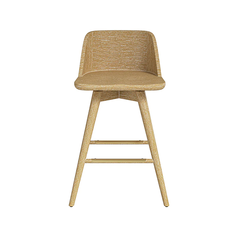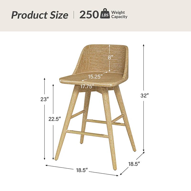 Presenting this mid-century modern wood swivel stool set of 2, a suitable addition to elevate your dining experience or kitchen bar. The swivel seat adds convenience and ease of movement, allowing you to pivot effortlessly while seated. The armless design provides a sleek silhouette, ideal for compact spaces or tucking neatly under counters. With a gentle curvature in the backrest, this stool set offers ergonomic support without compromising aesthetics. Whether you're enjoying a meal or entertaining guests, bar stools elevate both comfort and style in your home. Upgrade your kitchen island or dining area with this versatile and elegant wood swivel stool set.