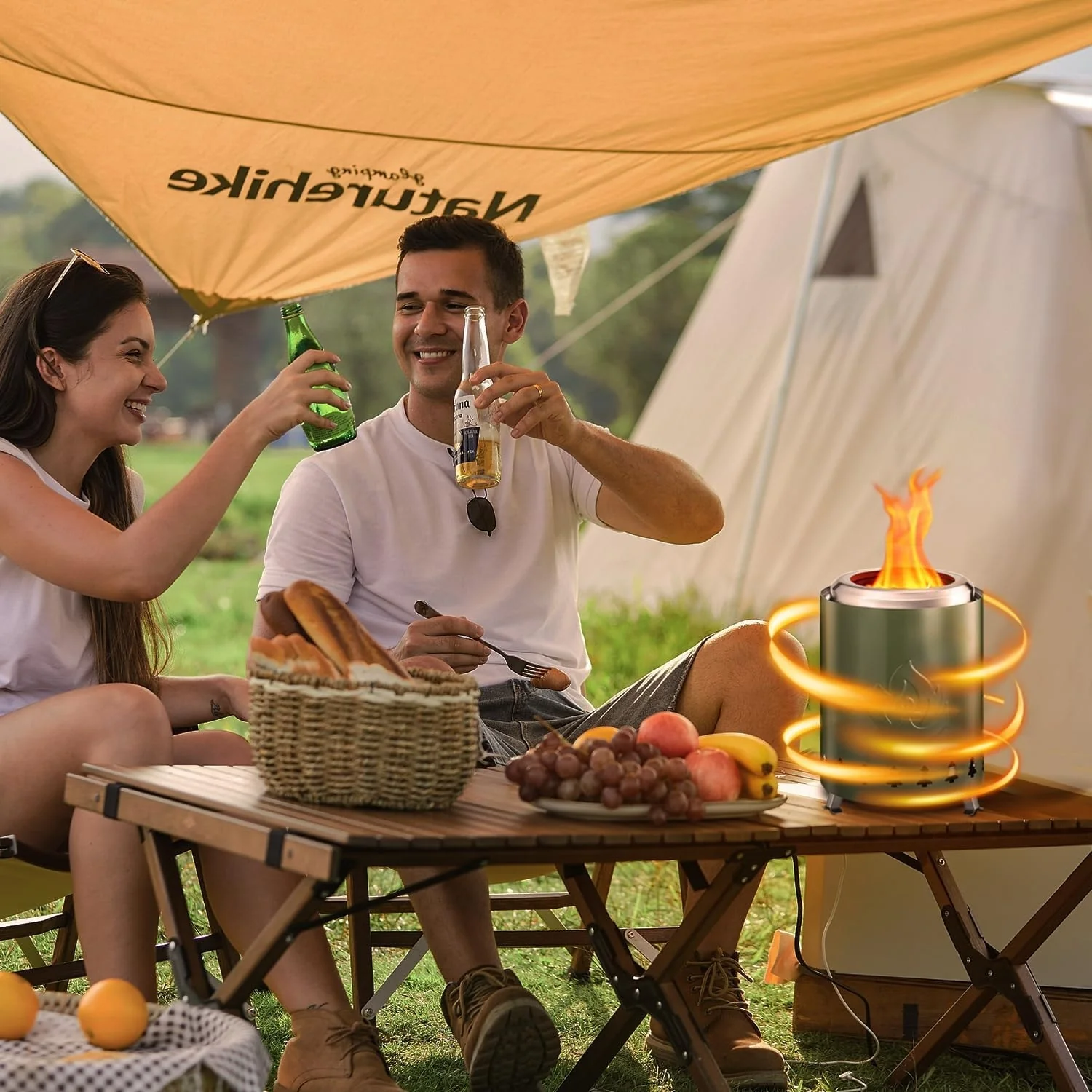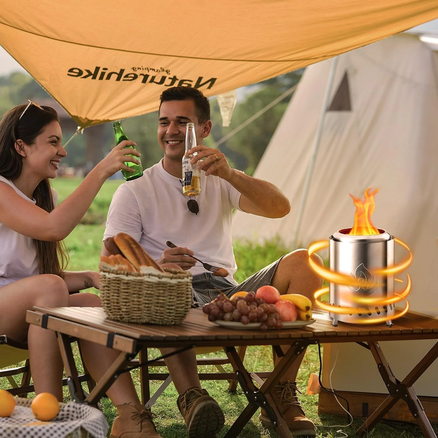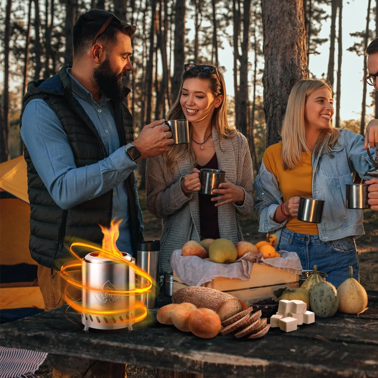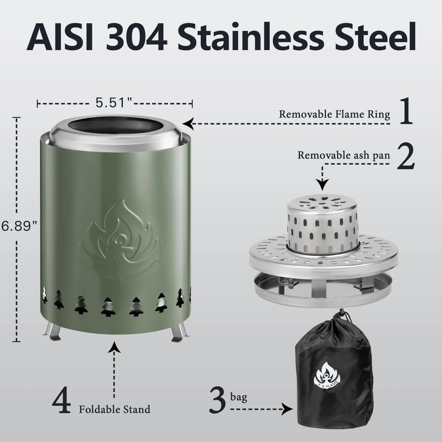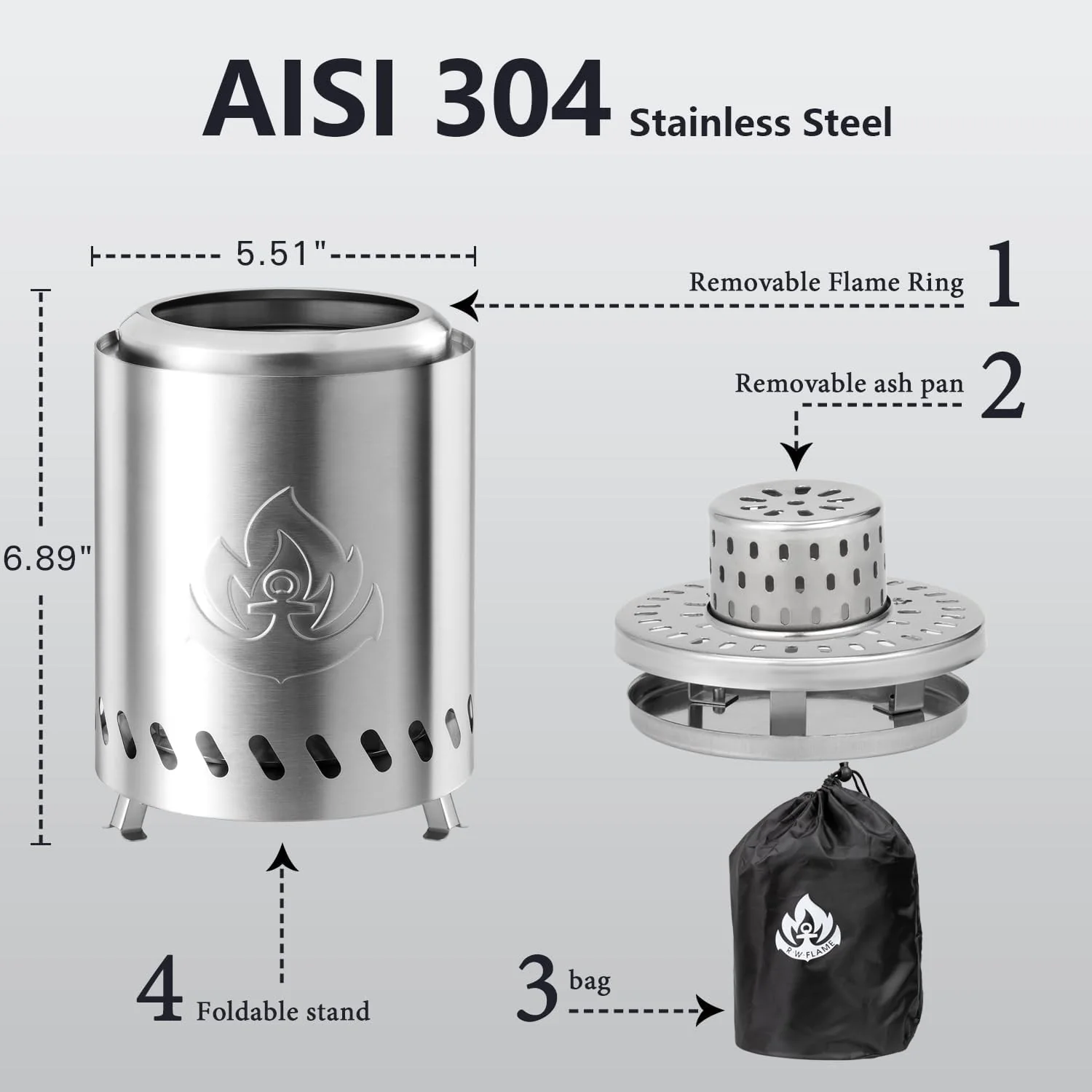 Tabletop Fire Pit 5.5"*6.9" with Stand, 304 Stainless Steel, Pellet or Firewood Fueled, Outdoor Low Smoke Mini Round Fire Pit