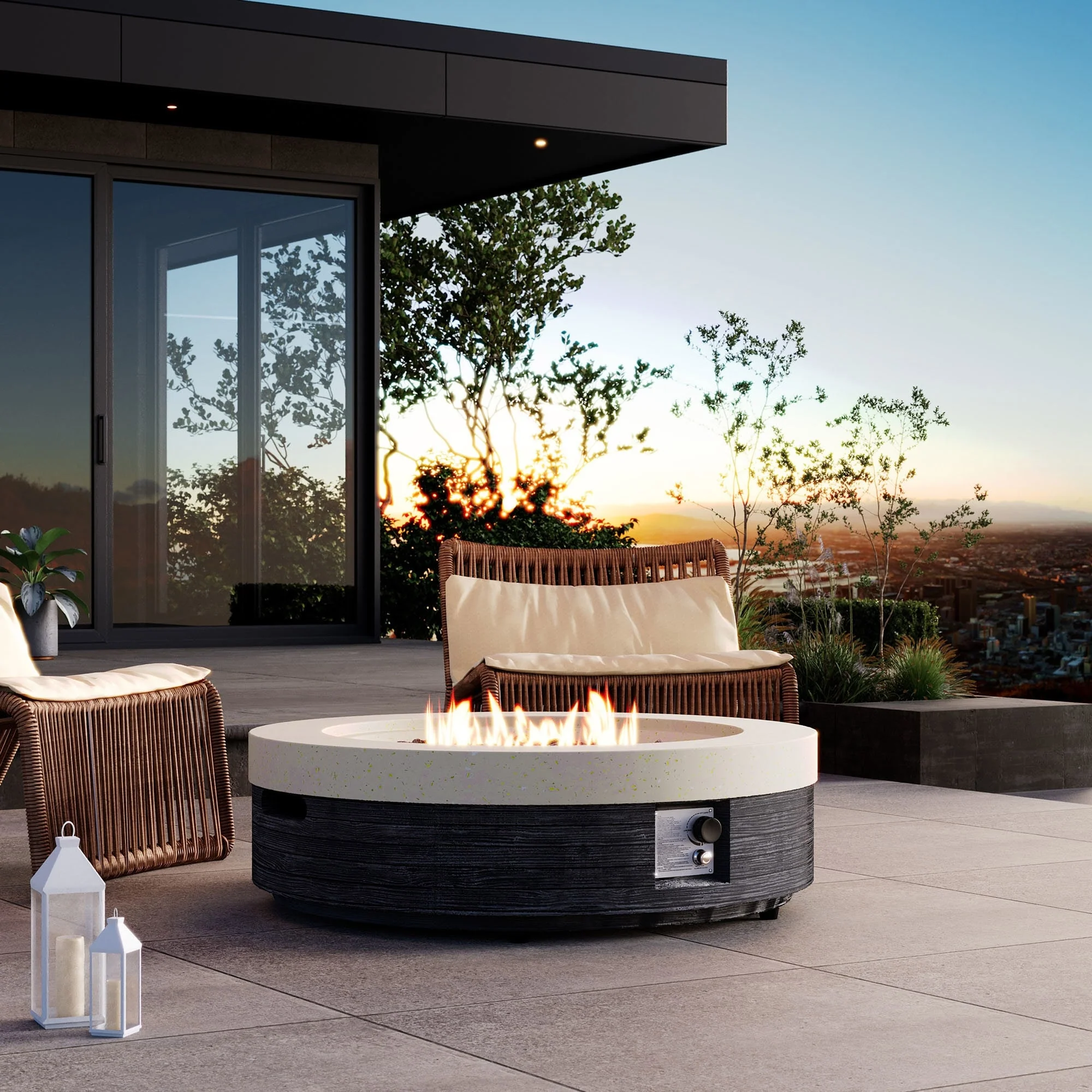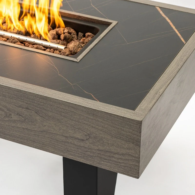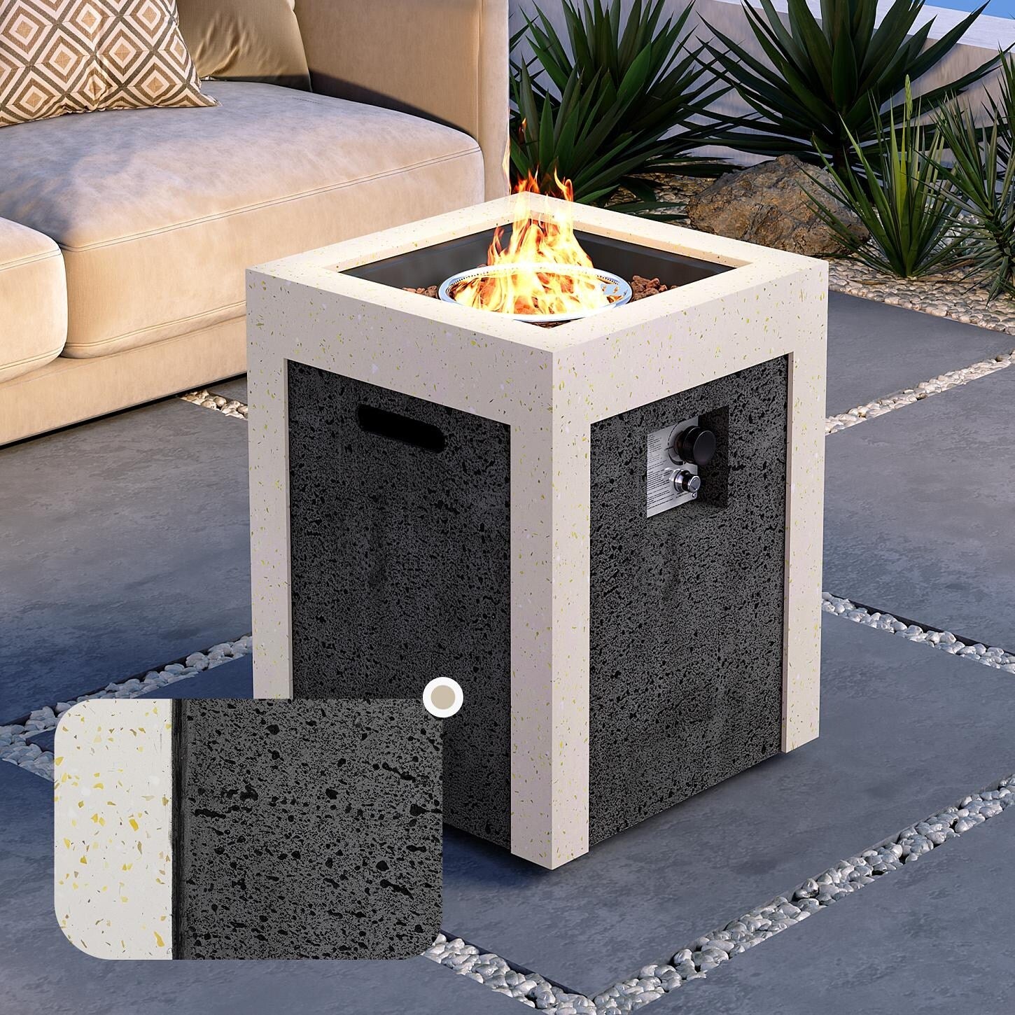COSIEST Outdoor Concrete Propane Fire Pit Table,Marble & Wood Style Design