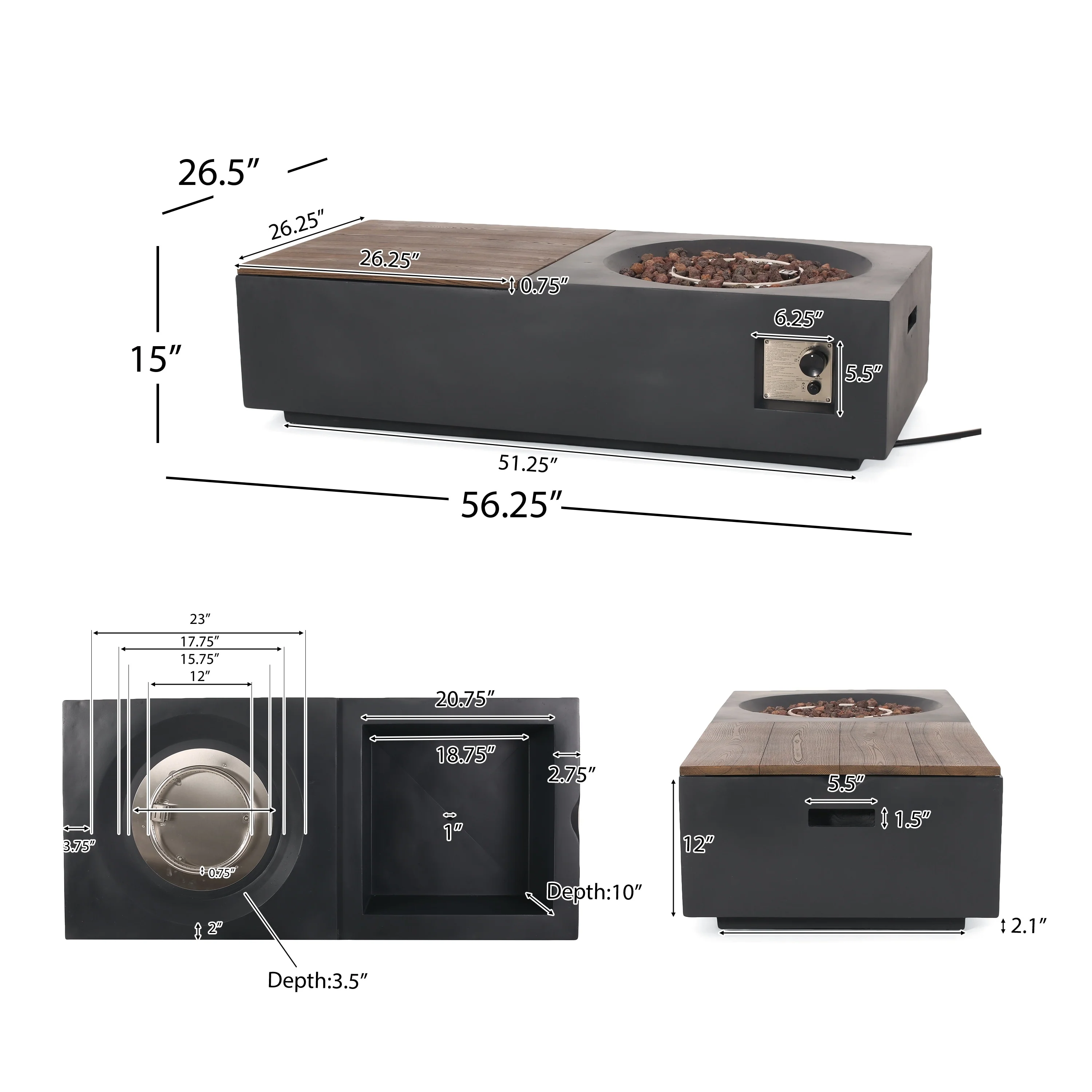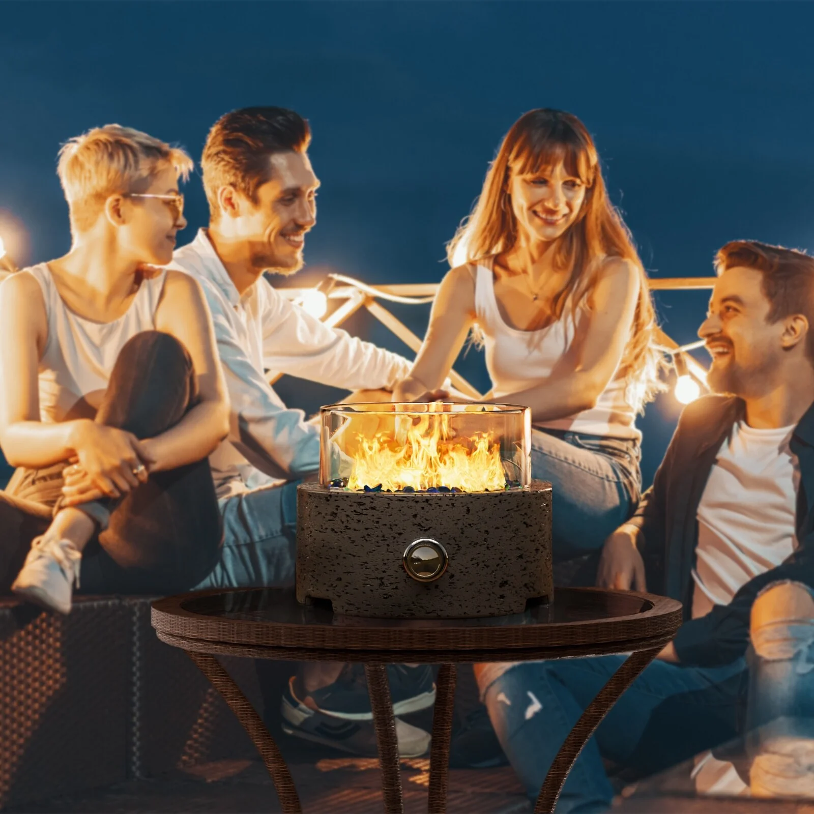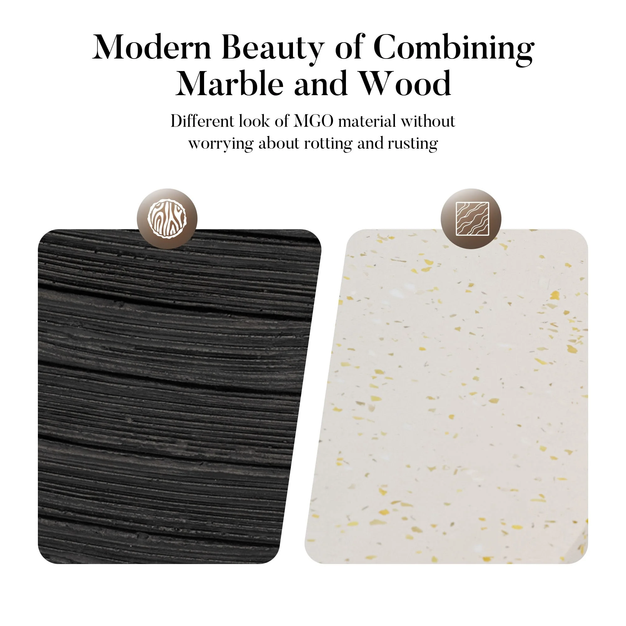 COSIEST Outdoor Concrete Propane Fire Pit Table,Marble & Wood Style Design