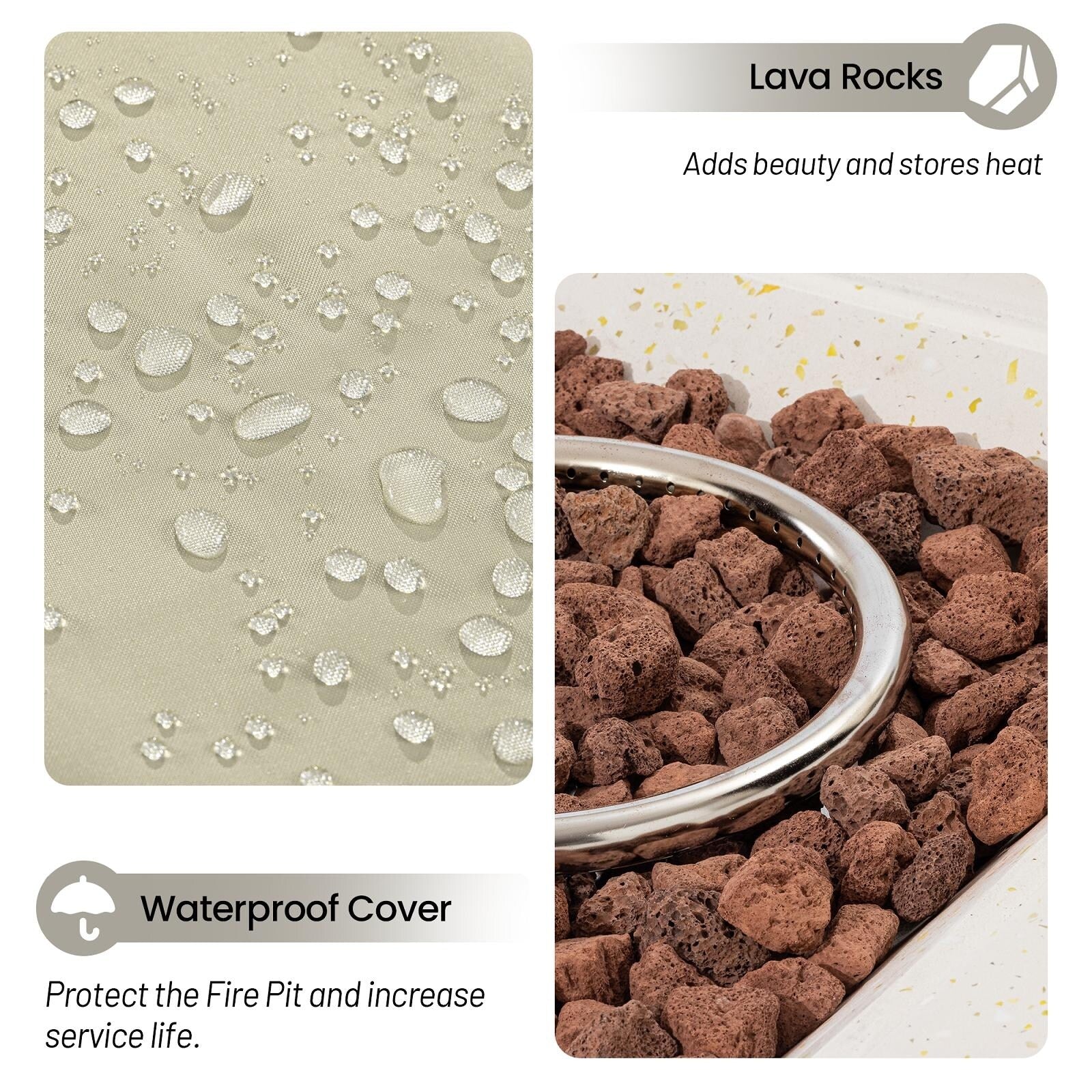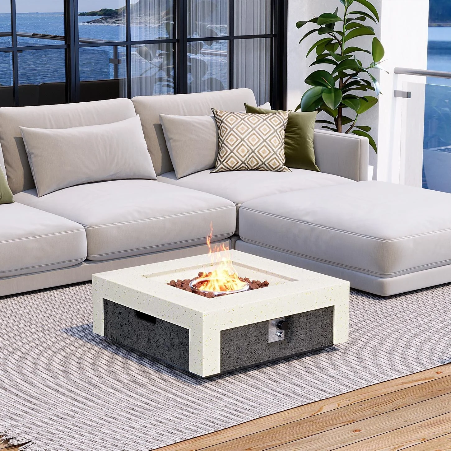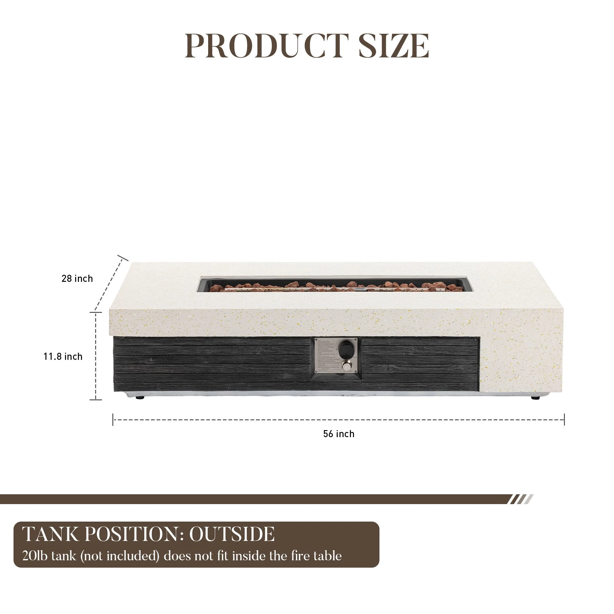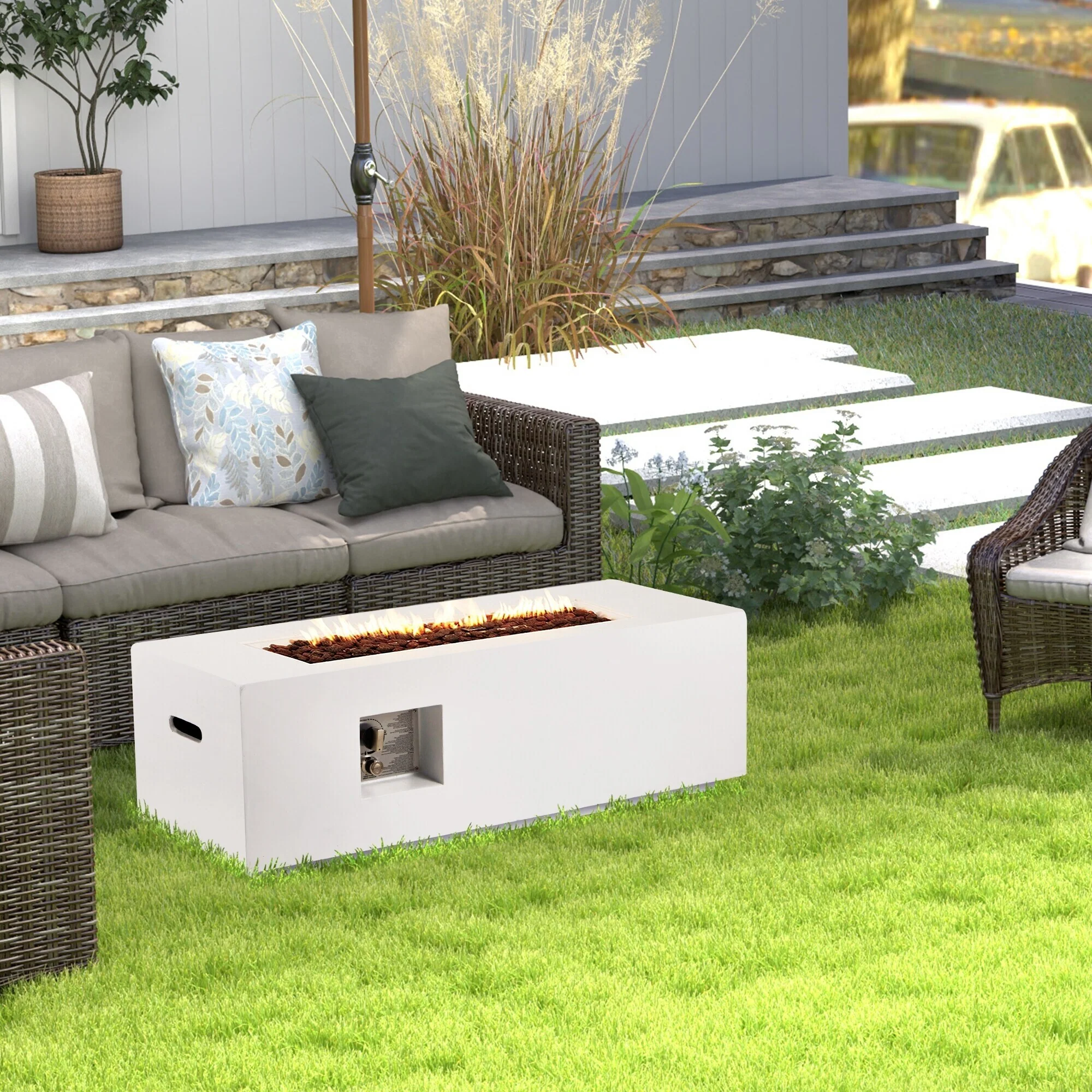 AVAWING 42" Rectangle Concrete Fire Pit Table