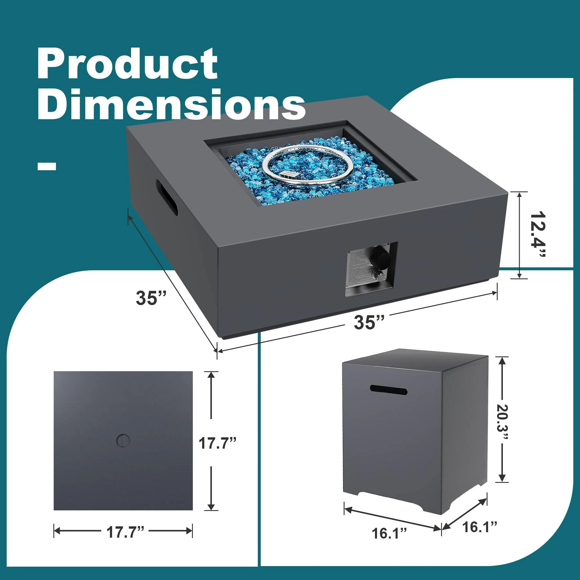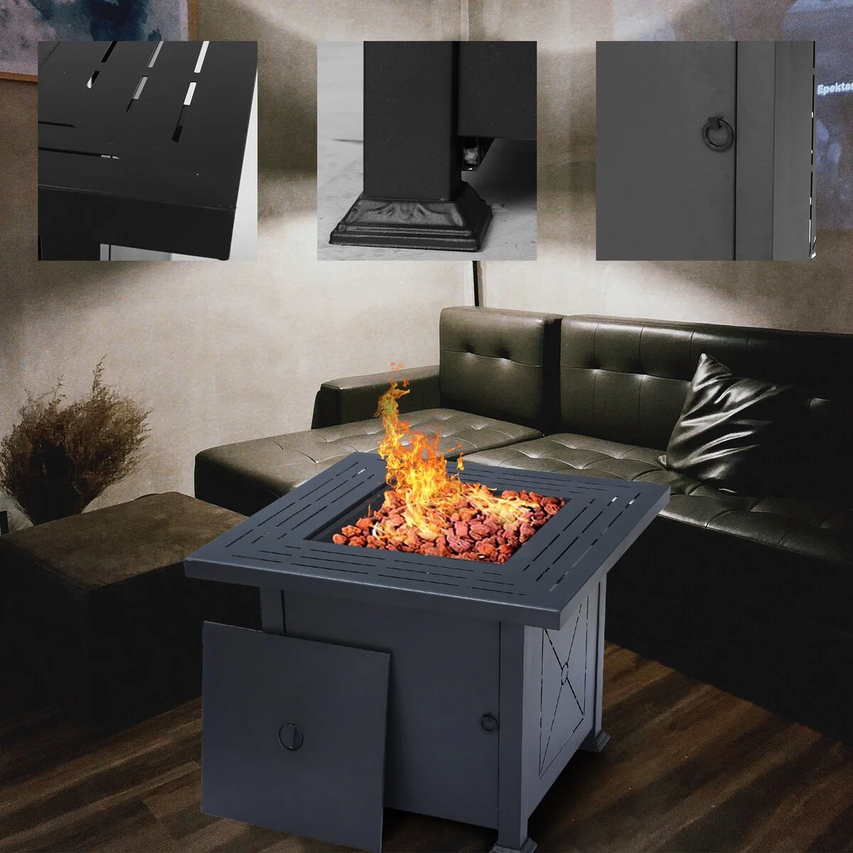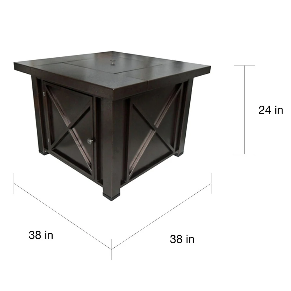 Patio Watcher 35" Square Iron Propane Fire Pit Table with Tank Holder?for Outside Garden