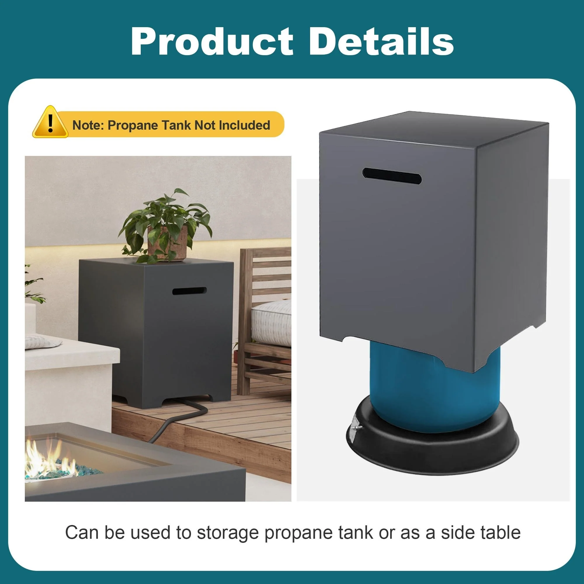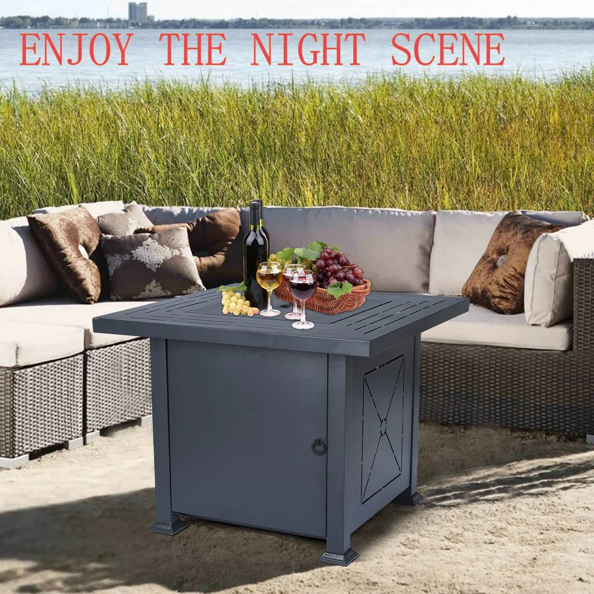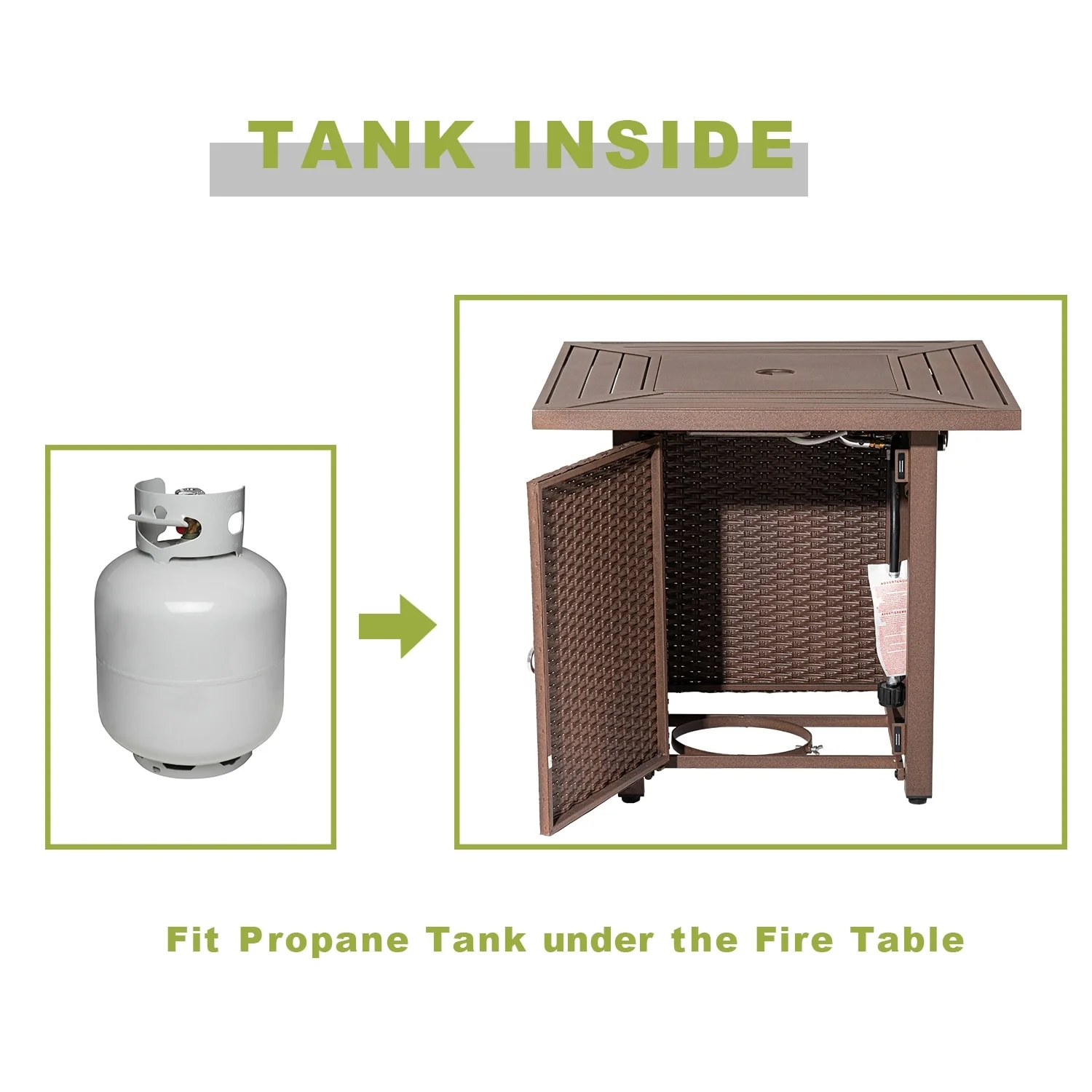 Patio Watcher 35" Square Iron Propane Fire Pit Table with Tank Holder?for Outside Garden