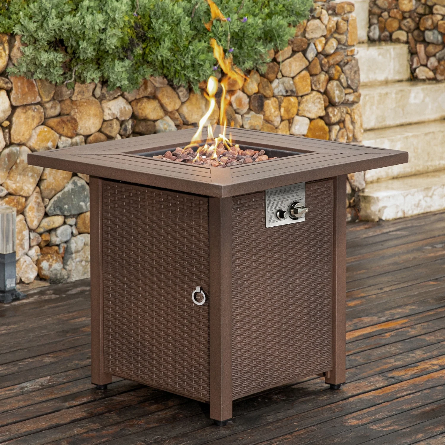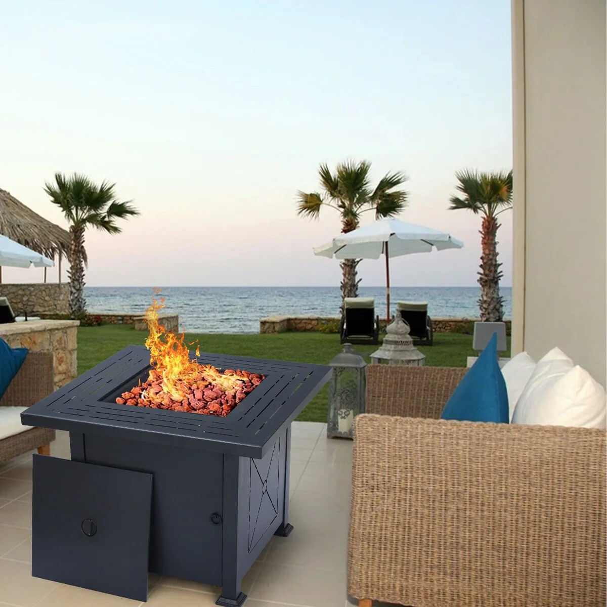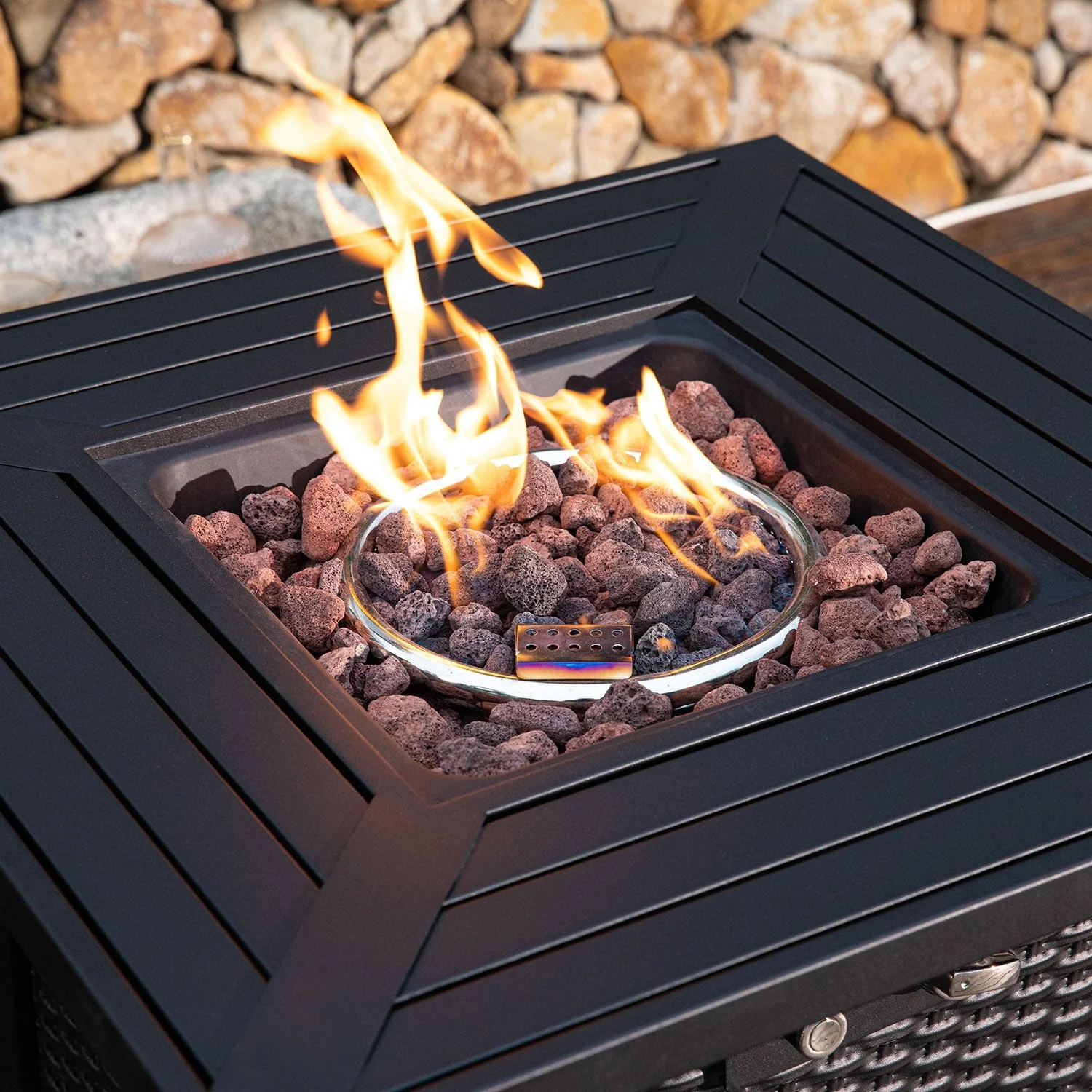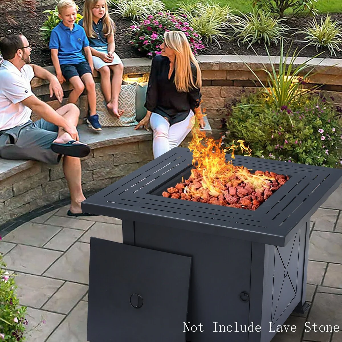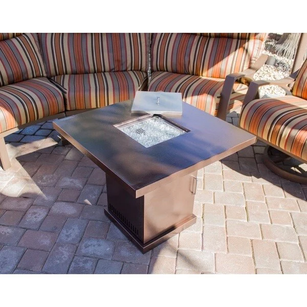 25-Inch Square Propane Fire Pit Table 40000 BTU W/ Lid Fire Glass