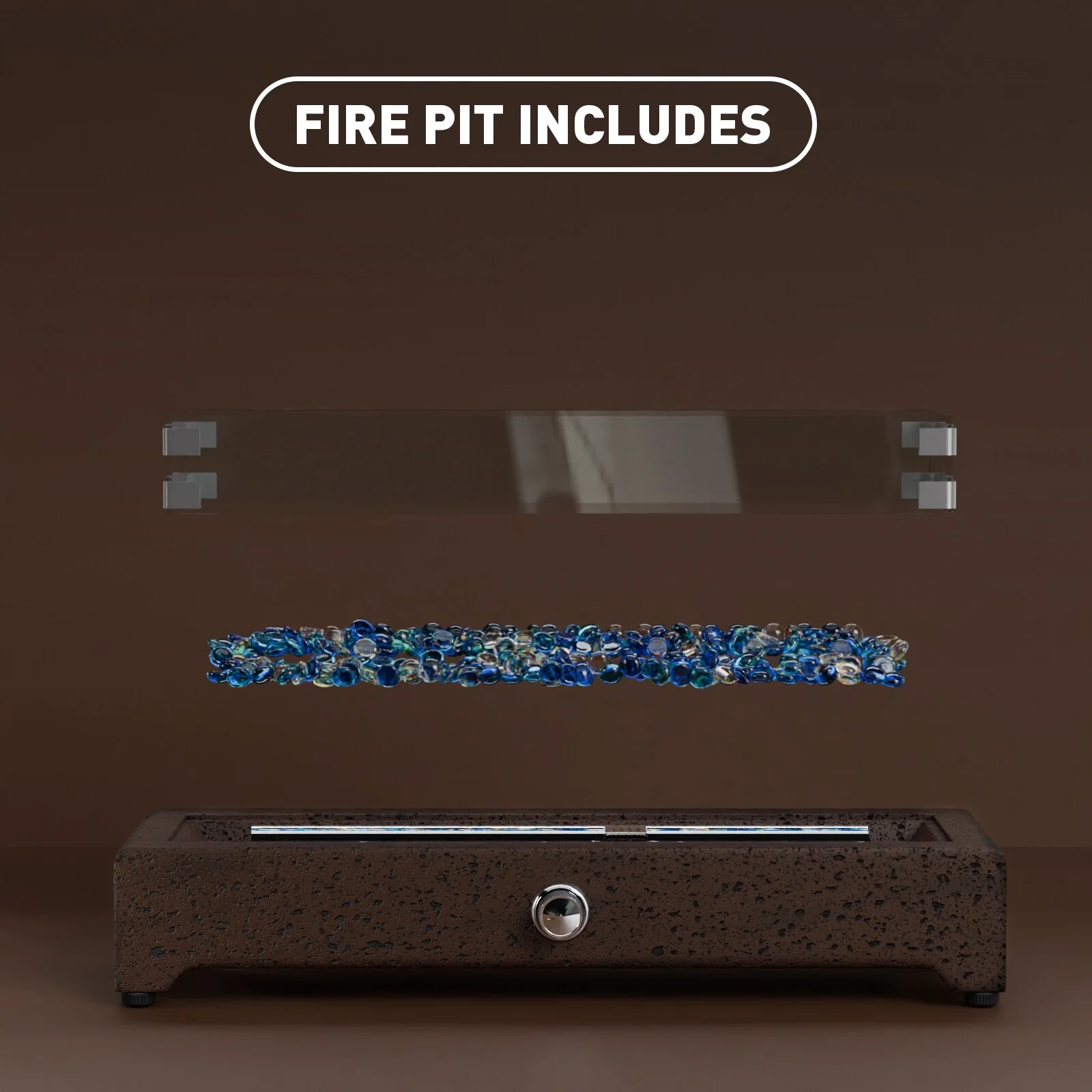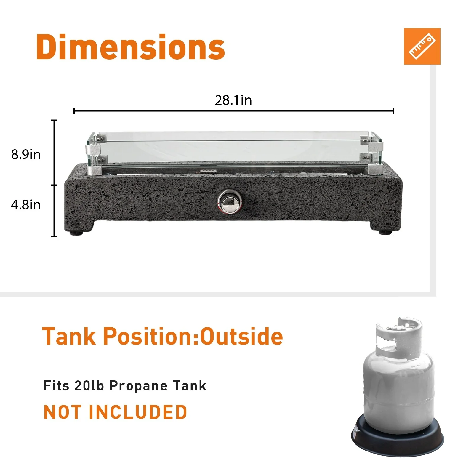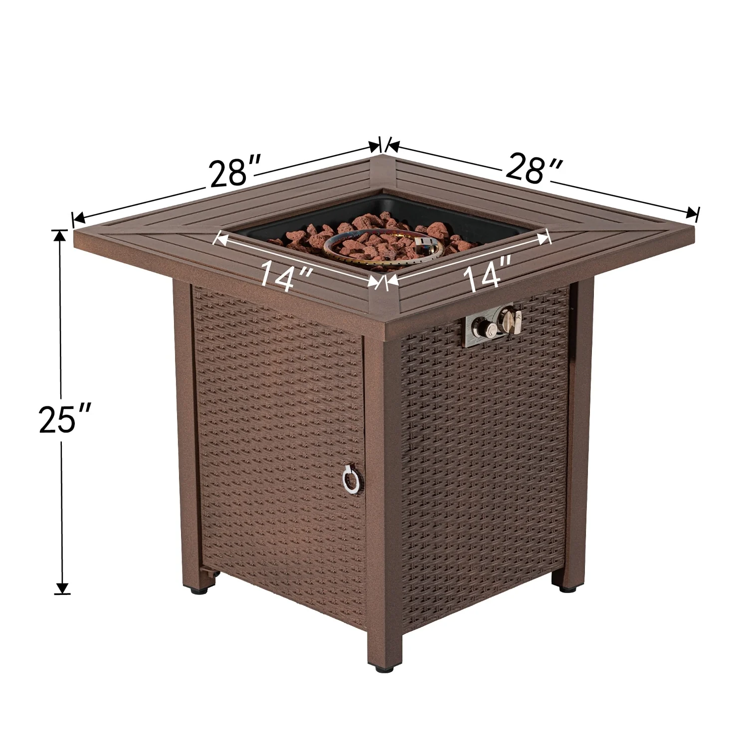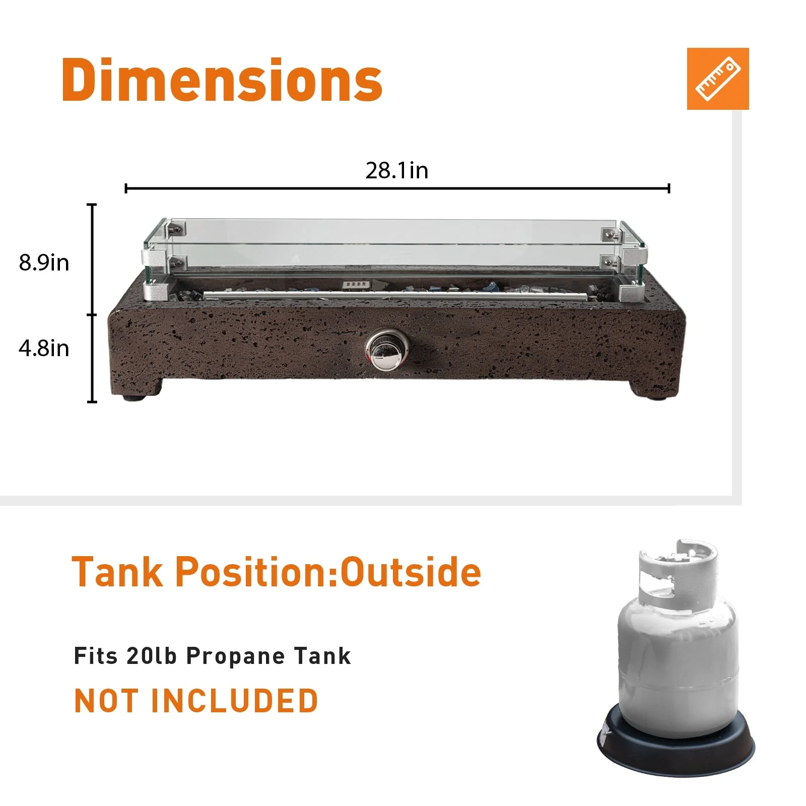 25-Inch Square Propane Fire Pit Table 40000 BTU W/ Lid Fire Glass
