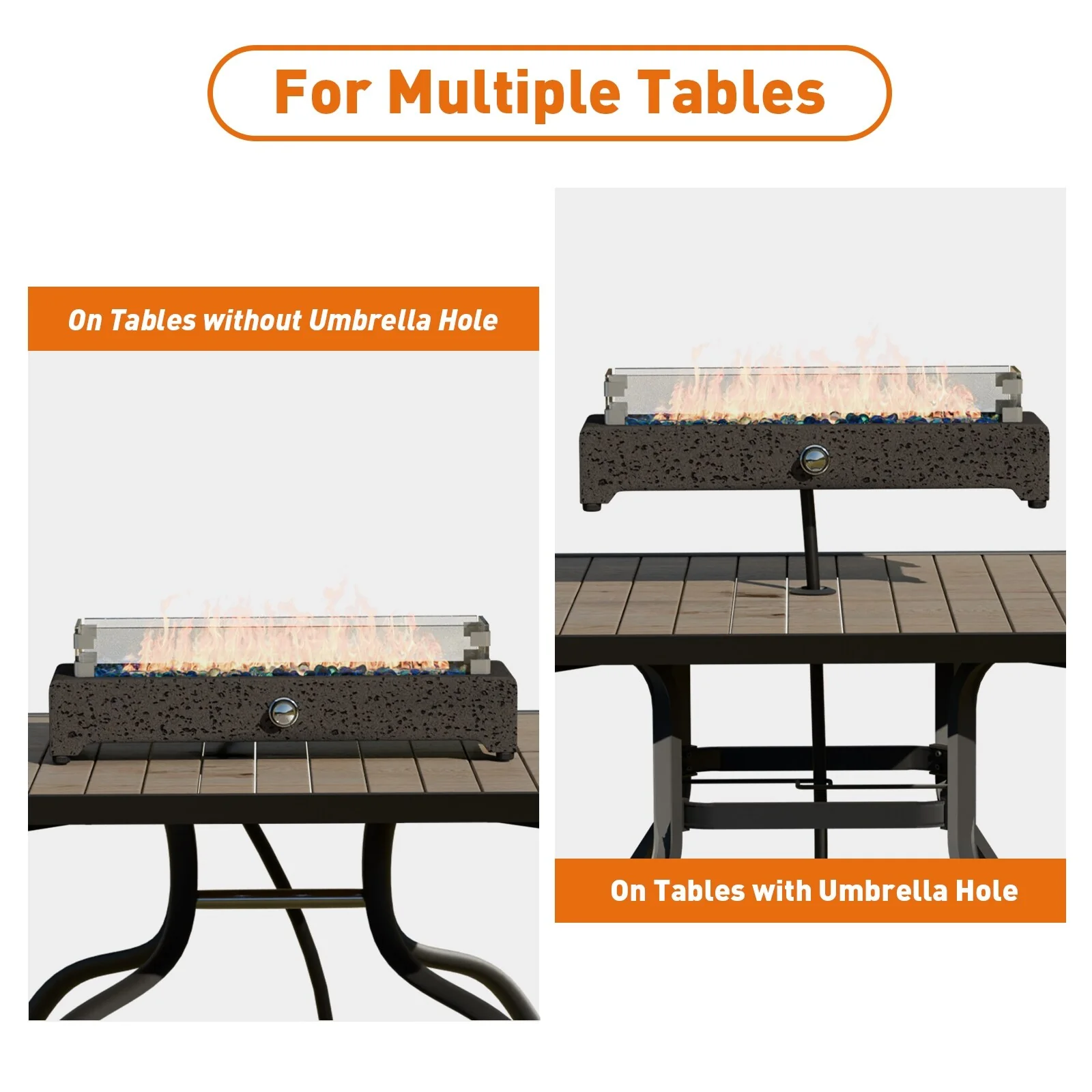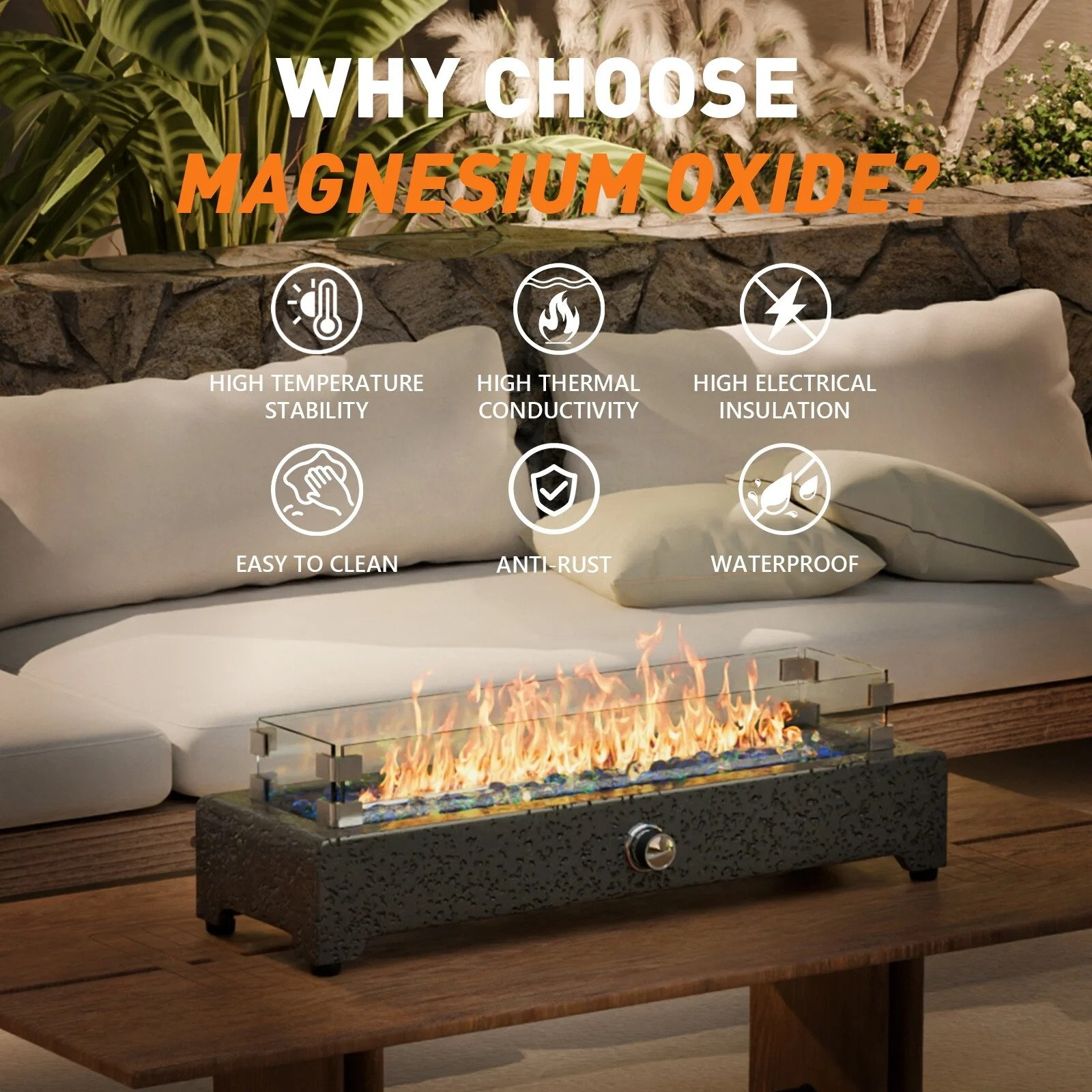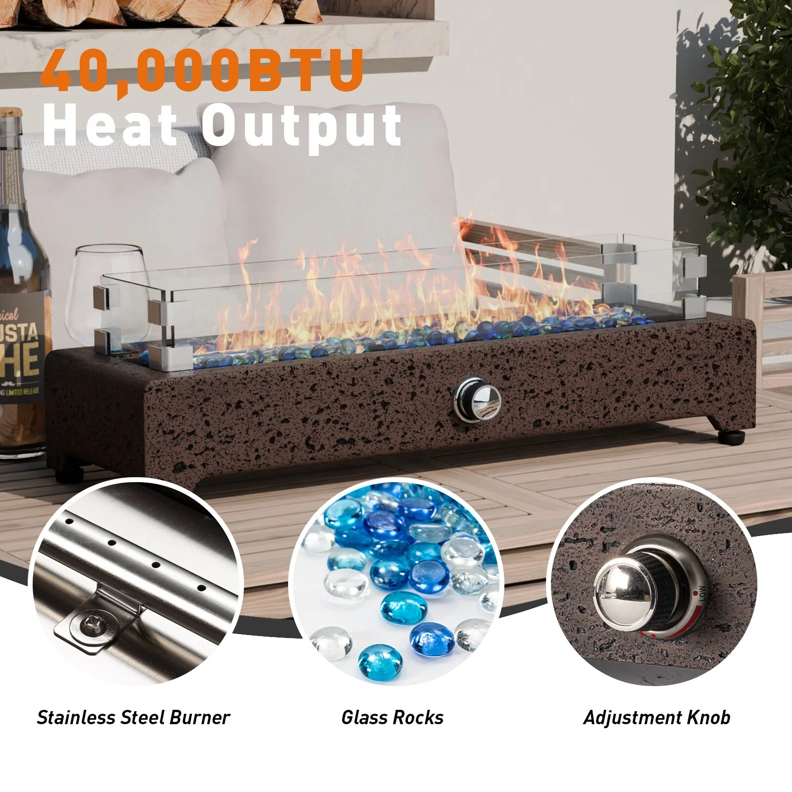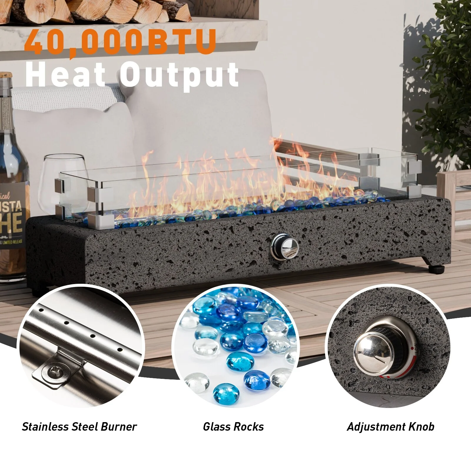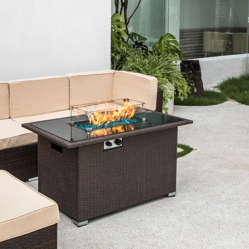 50,000 BTU Rectangle Fire Pit Table with Blue stone and Free Waterproof Cover